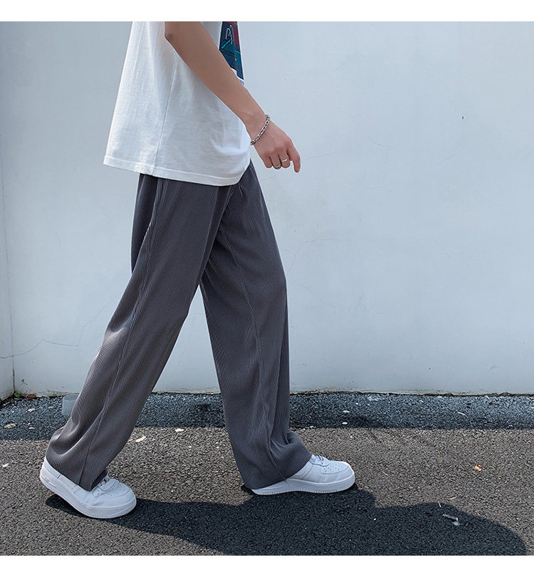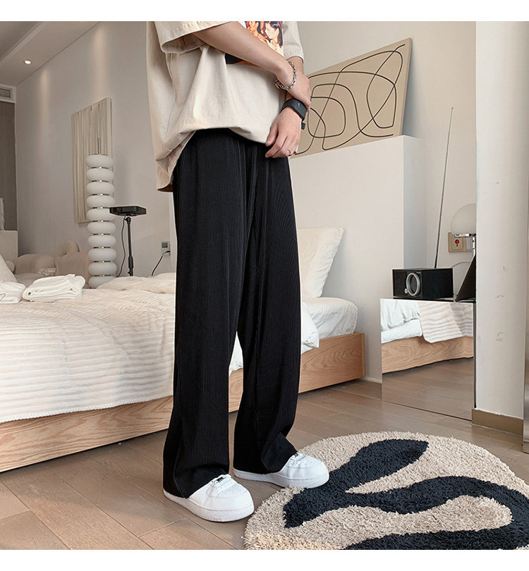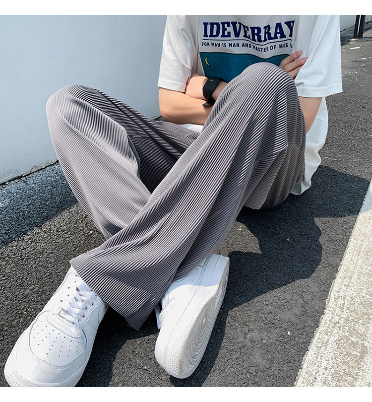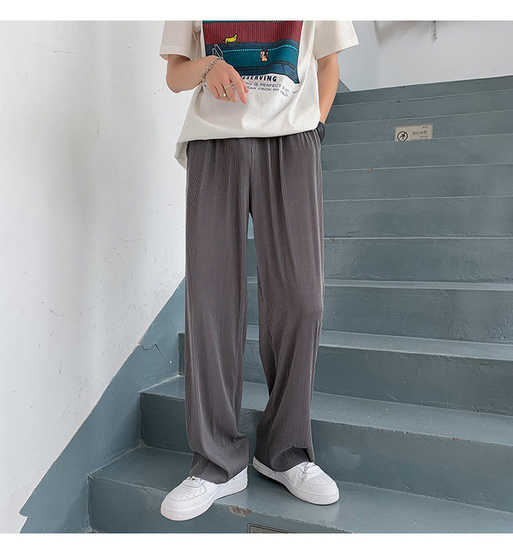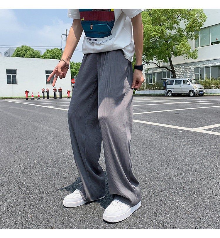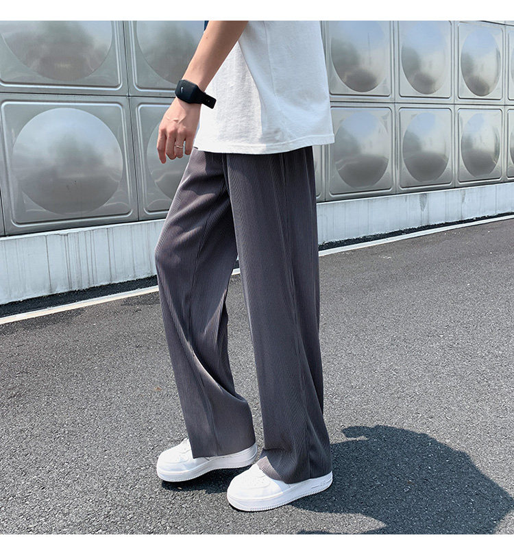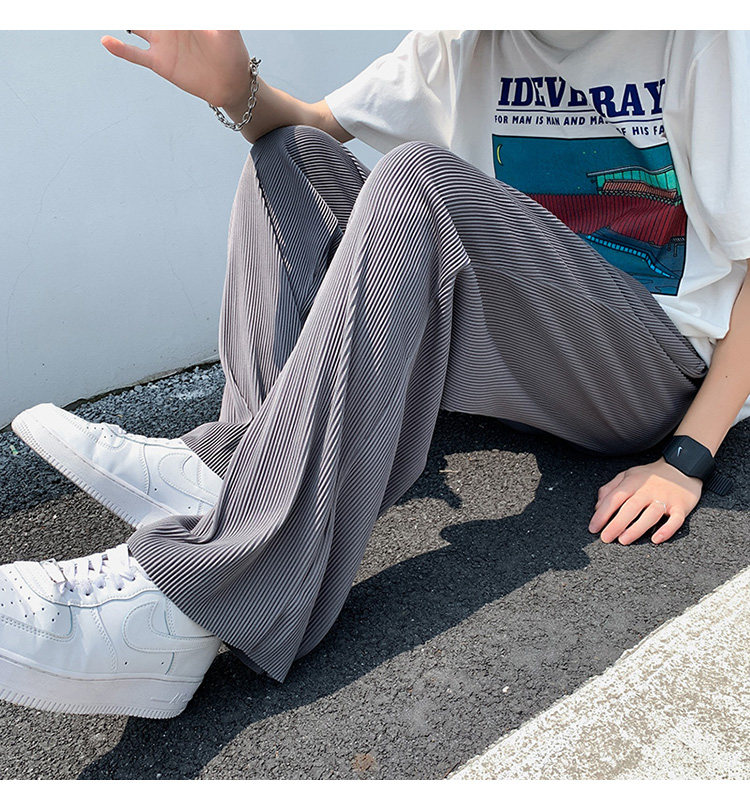 Pleated Striped Ice Silk Straight-Leg Pants for Men, Hip-Hop Drapey Plus-Size Summer Thin Wide-Leg Sports Trousers