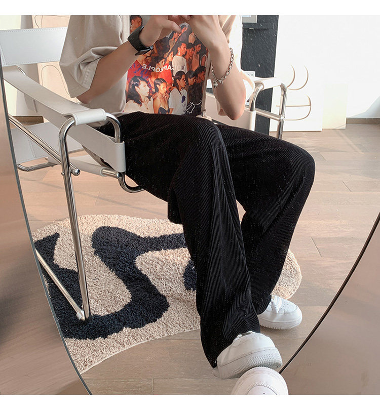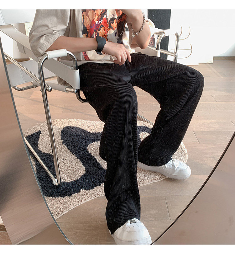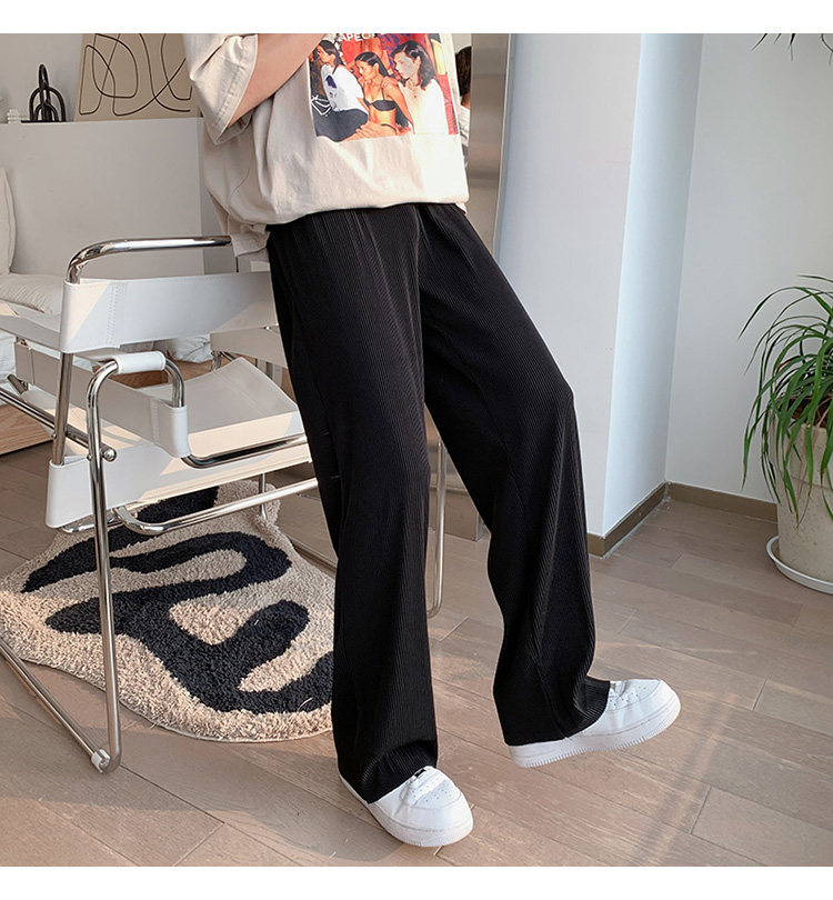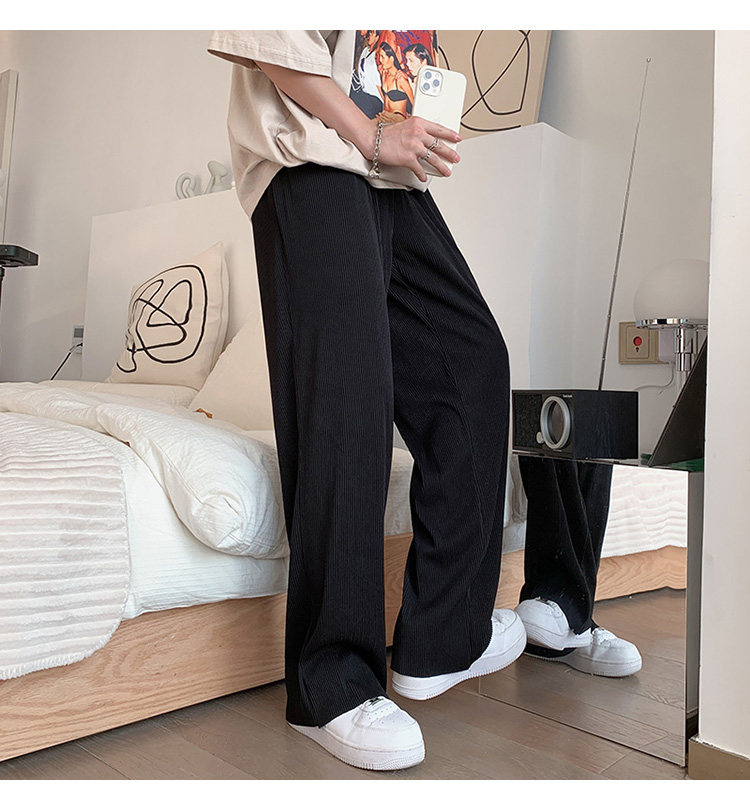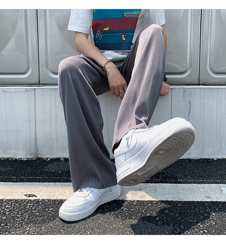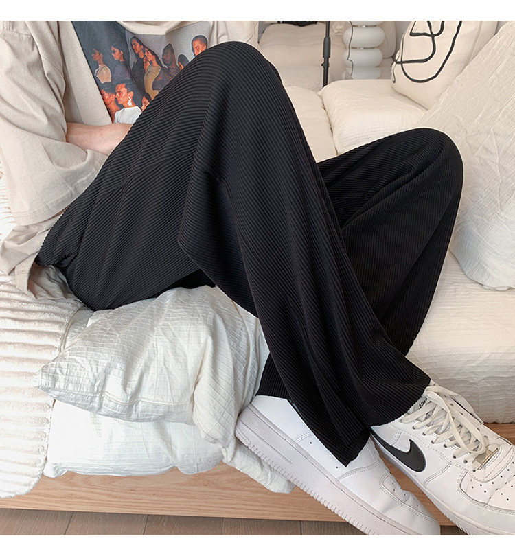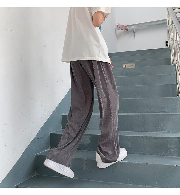Pleated Striped Ice Silk Straight-Leg Pants for Men, Hip-Hop Drapey Plus-Size Summer Thin Wide-Leg Sports Trousers