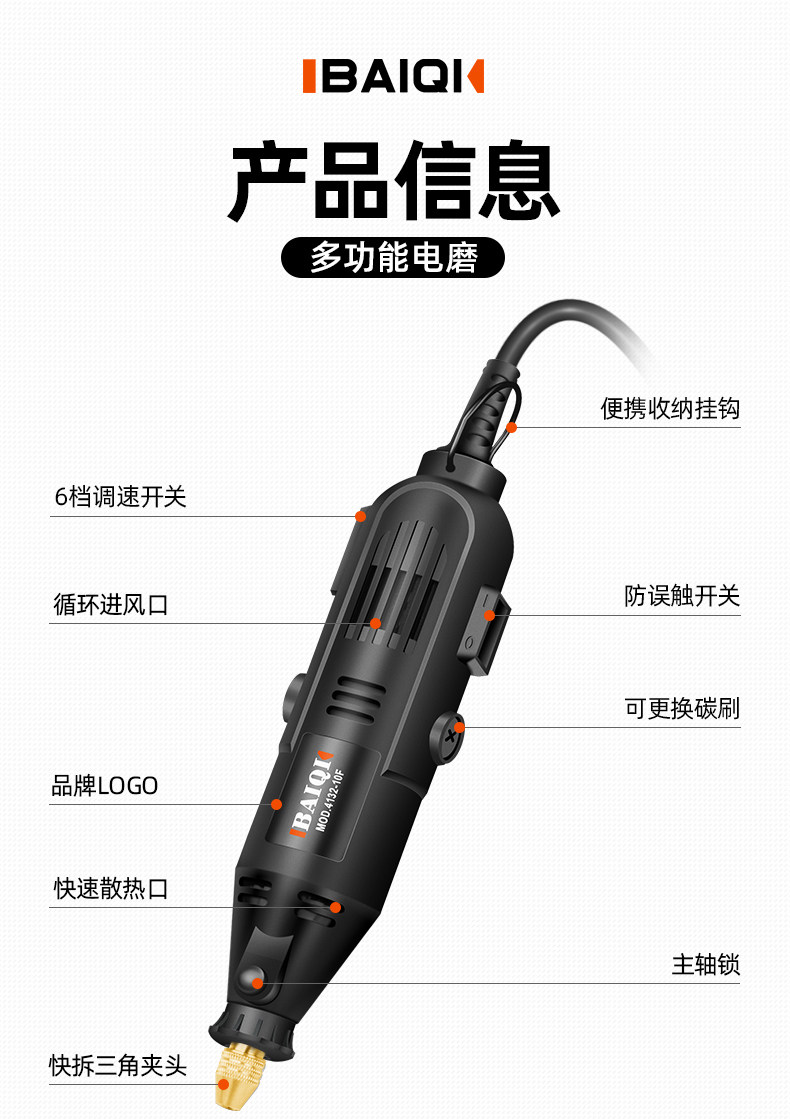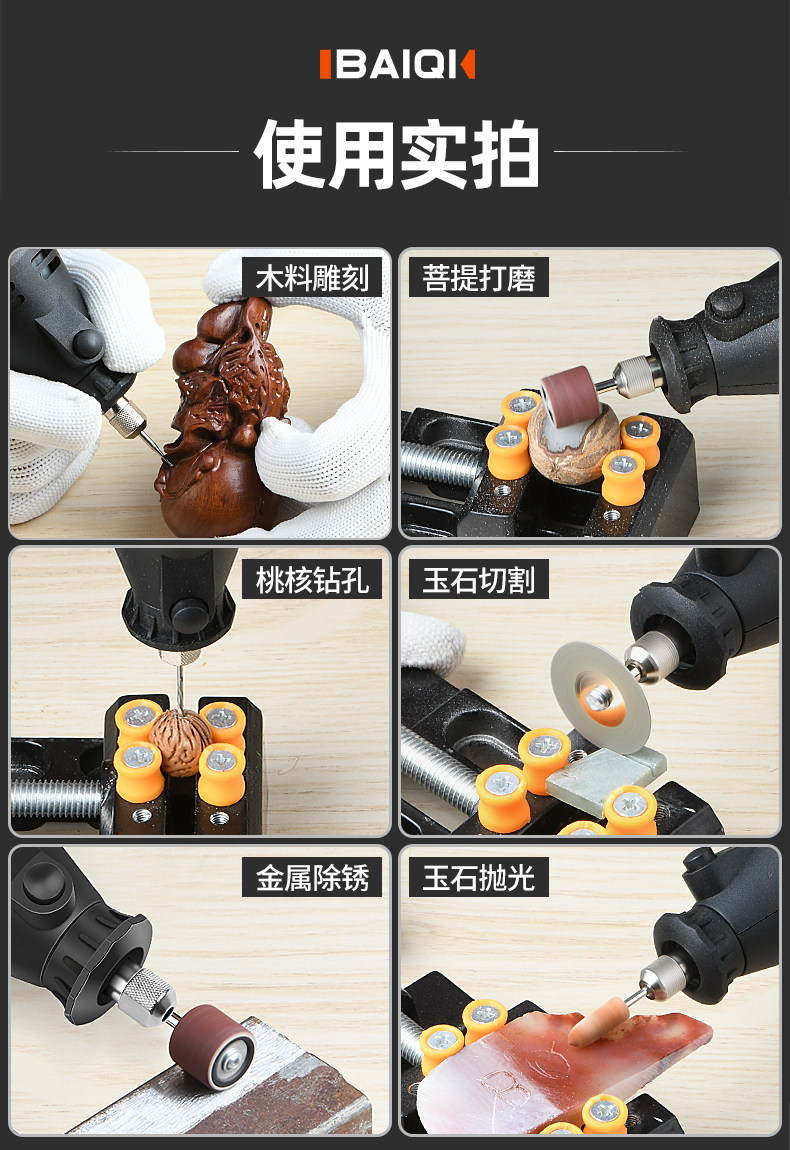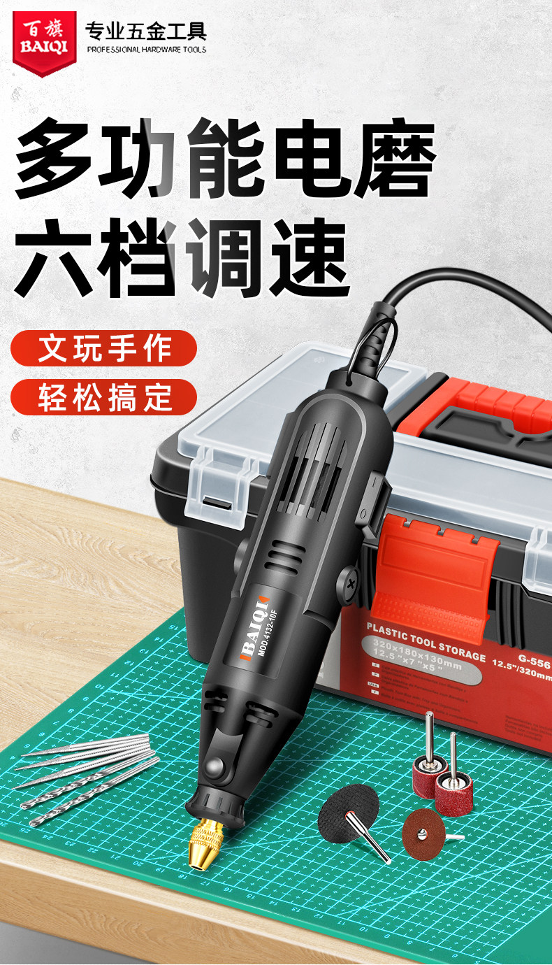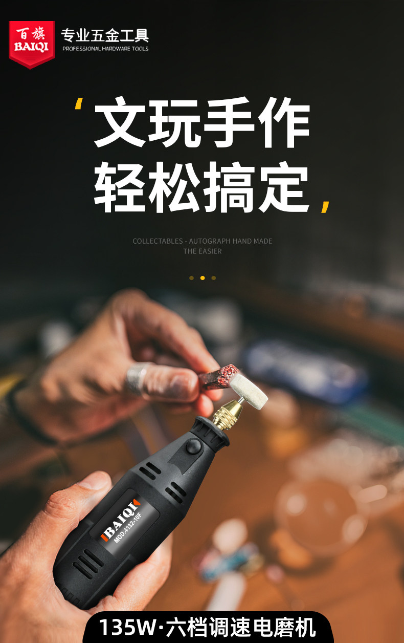 Baiqi Electric Grinder Small Handheld Grinding Electric Carving Tool Polishing Cutting Jade Handicraft Wood Carving Small Electric Drill