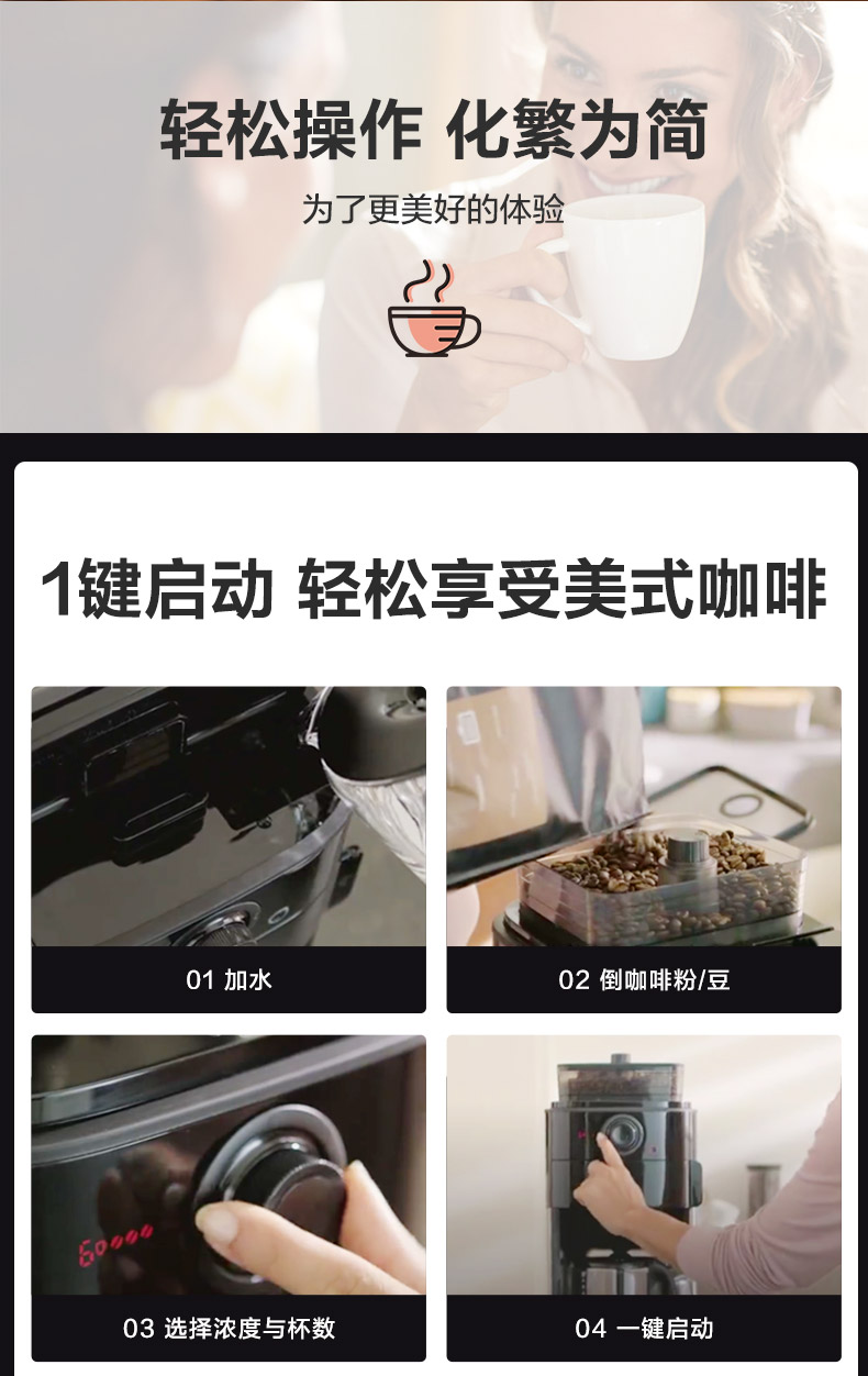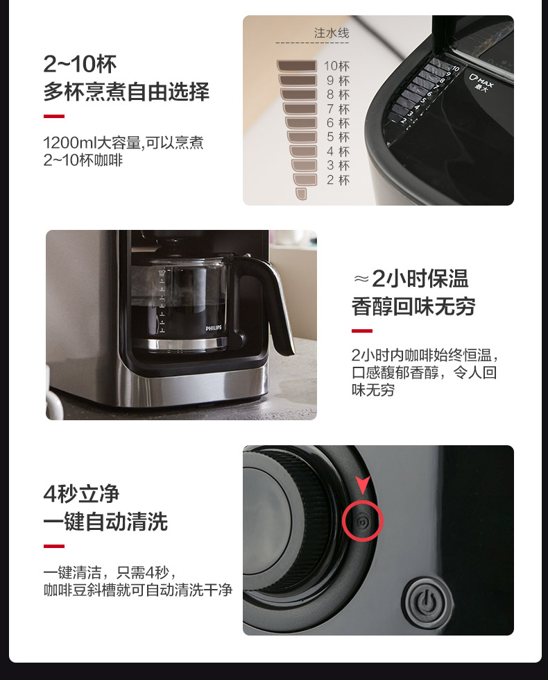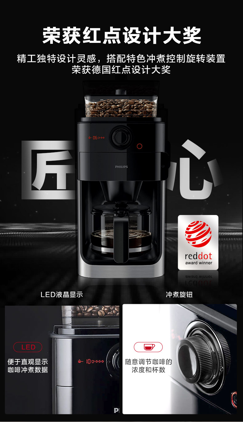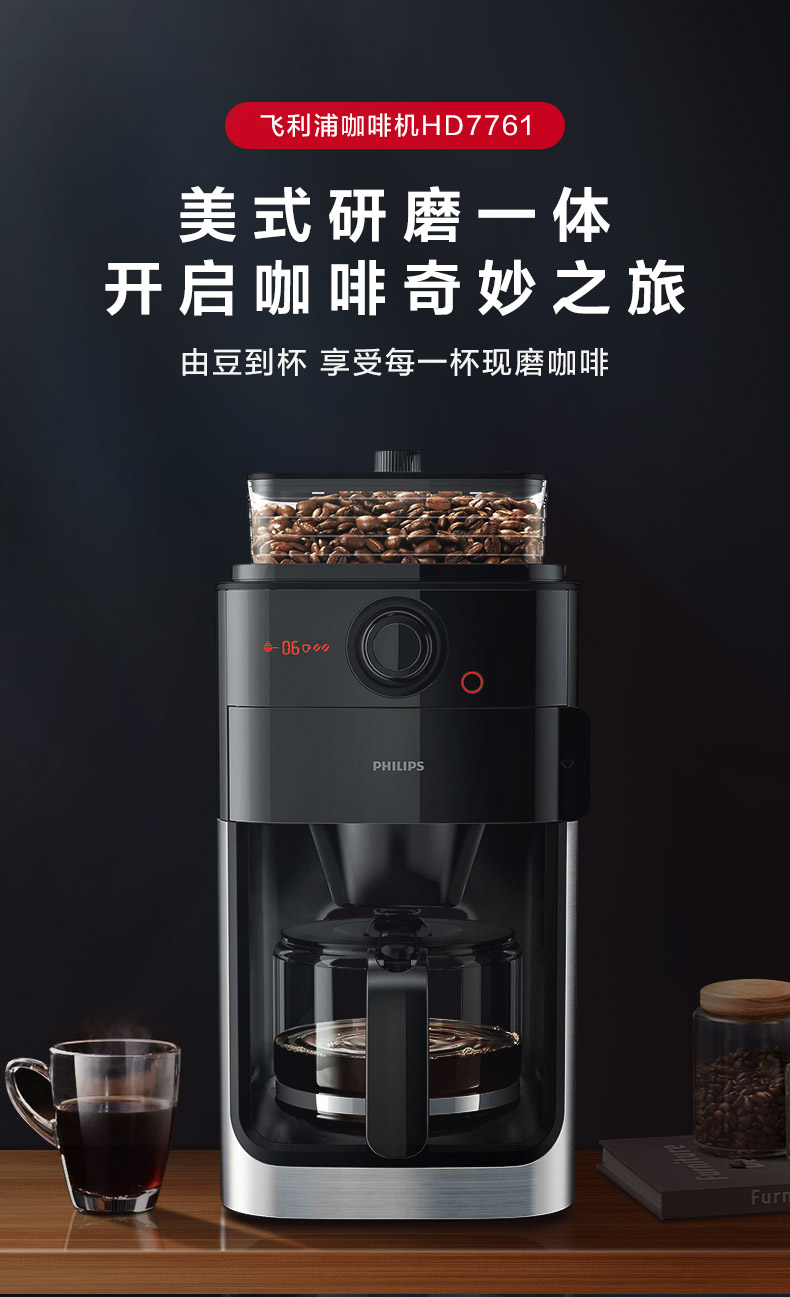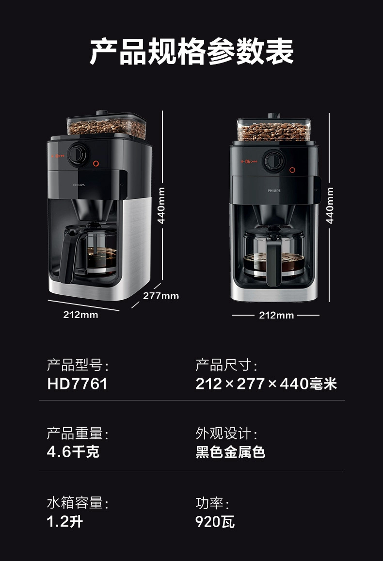 Philips American-Style Fully Automatic Coffee Machine Hd7761 Small Household Coffee Bean Grinding Integrated Commercial Model