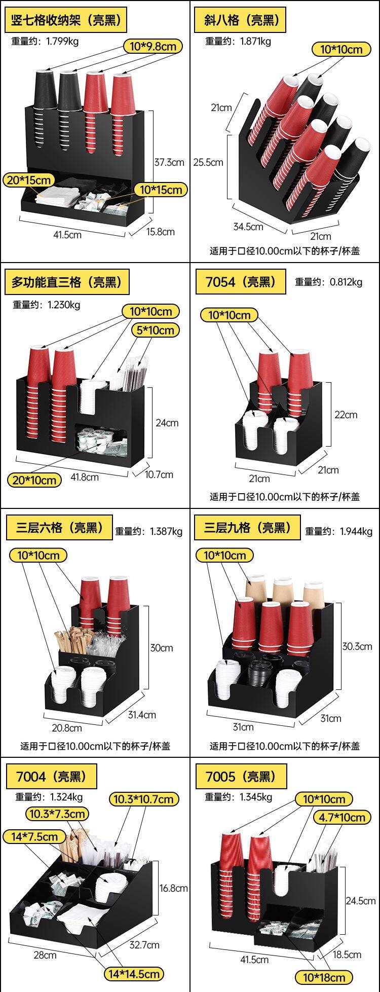 | Color Classification | Tissue Box (Glossy Black),Spoon Box (Glossy Black),Straw Box (Glossy Black),Tissue Box (Bright Black),Straw Storage Box (Glossy Black),Multifunctional Straw Storage Box (Glossy Black),Insulated Cup Set Box (Glossy Black),Bag Storage Box (Glossy Black),Straight One Grid (Glossy Black),Straight Two Grids (Glossy Black),Straight Three Grids (Glossy Black),Straight Four Grids (Glossy Black),Straight Five Grids (Glossy Black),Straight Six Grid (Glossy Black),Diagonal Three Grids (Glossy Black),Diagonal Four Grids (Glossy Black),Oblique Eight Grids (Glossy Black),Vertical Seven Grids (Glossy Black),Four Grids on the Second Floor (Glossy Black),Three Layers and Six Grids (Glossy Black),Three Layers and Nine Grids (Glossy Black),Multifunctional Straight Three Compartments (Glossy Black),7005 Storage Cup Holder (Glossy Black),New Two-In-One Cup Holder (Glossy Black),Rotating Cup Holder (Glossy Black),Grand Floor Cup Holder (Glossy Black),Comprehensive Cup Holder (Glossy Black),Royal Salute Cup Holder Black,7002 7004 Black,Straight Two-Compartment Cup Holder (Soup Bowl Holder Can Hold 12.5cm),Tian Grid Cup Holder |