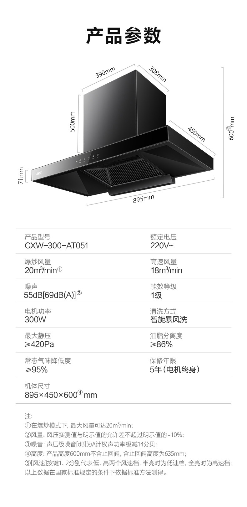 | Range Hood Air Pressure | 420Pa. |