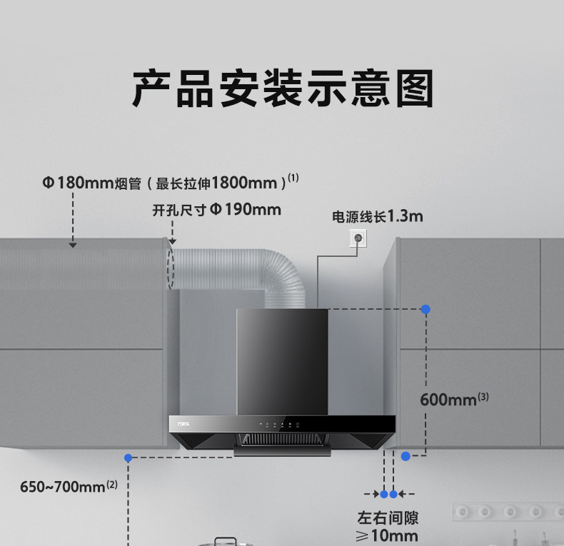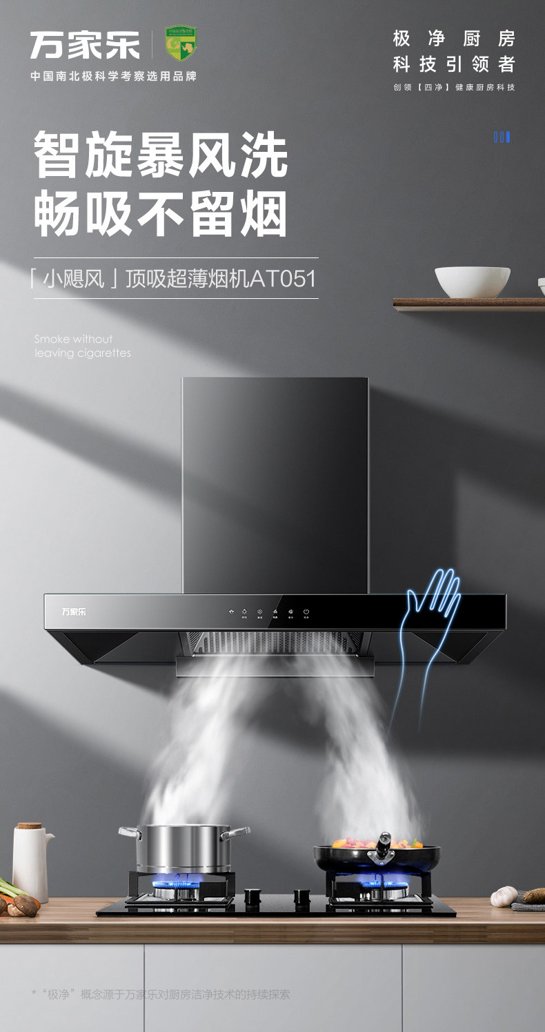 Midea Wave Control European-Style Ceiling-Mounted Range Hood for Home Kitchen with Strong Suction, Kitchen Flagship Store At051