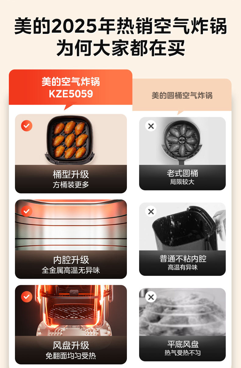 Midea Air Fryer, Large-Capacity Electric Fryer for Home Use, Smart New Model, Microwave Oven, Hualing No-Turning Electric Oven