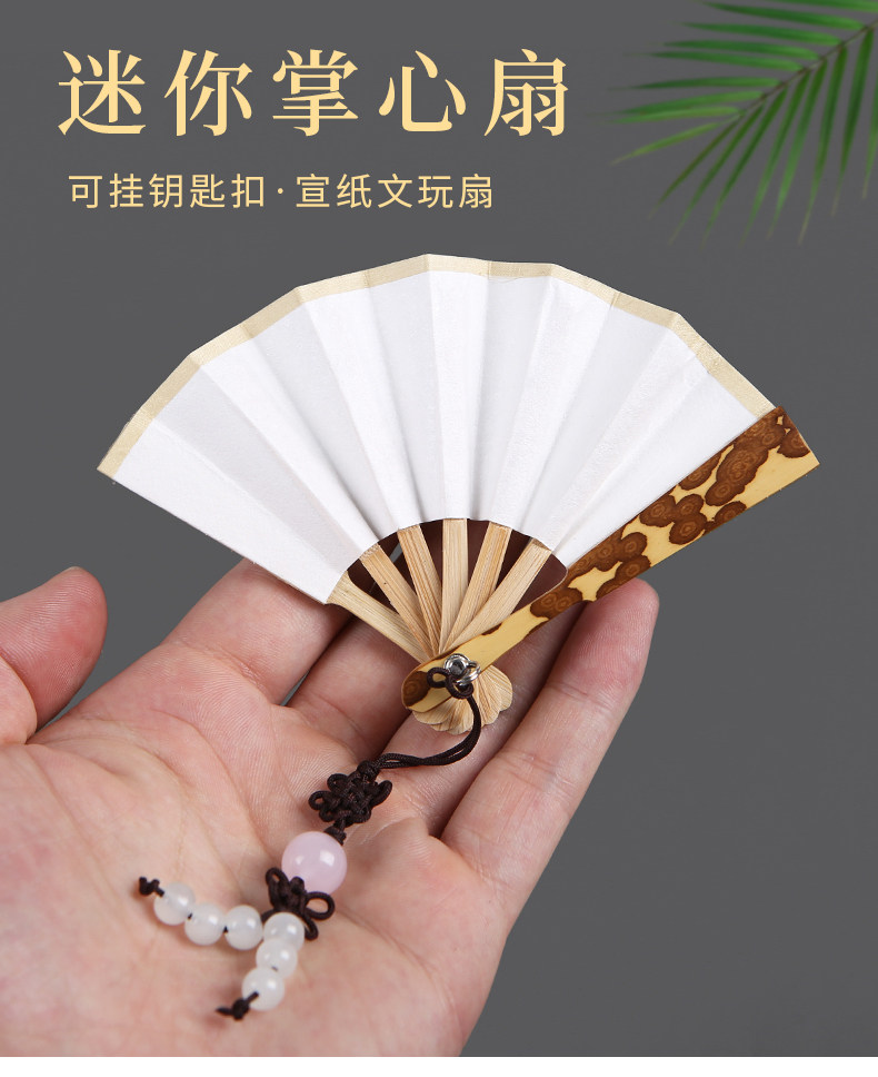 Mini Palm Fan 2.5inch Chinese Style Keychain Decorative Fan Pendant Plum Blossom Bamboo Pocket Fan 8cm Fan