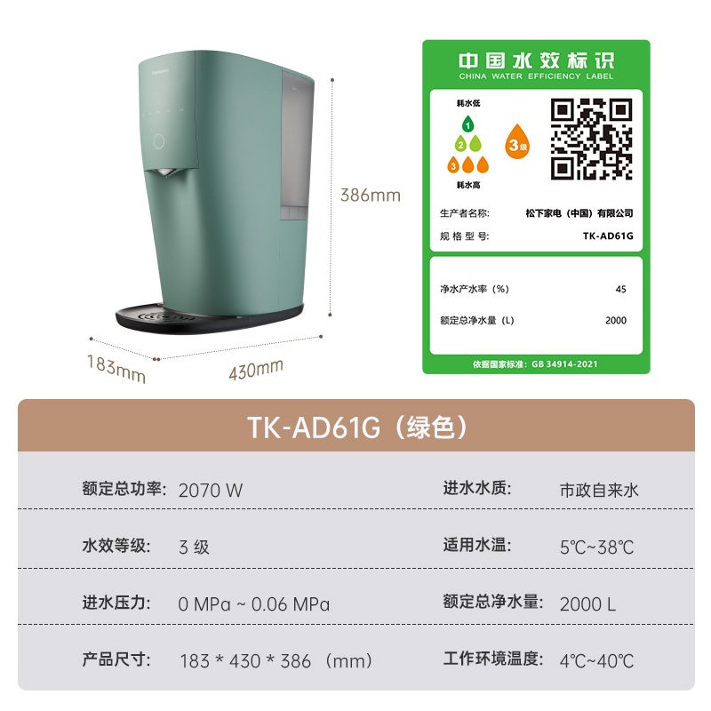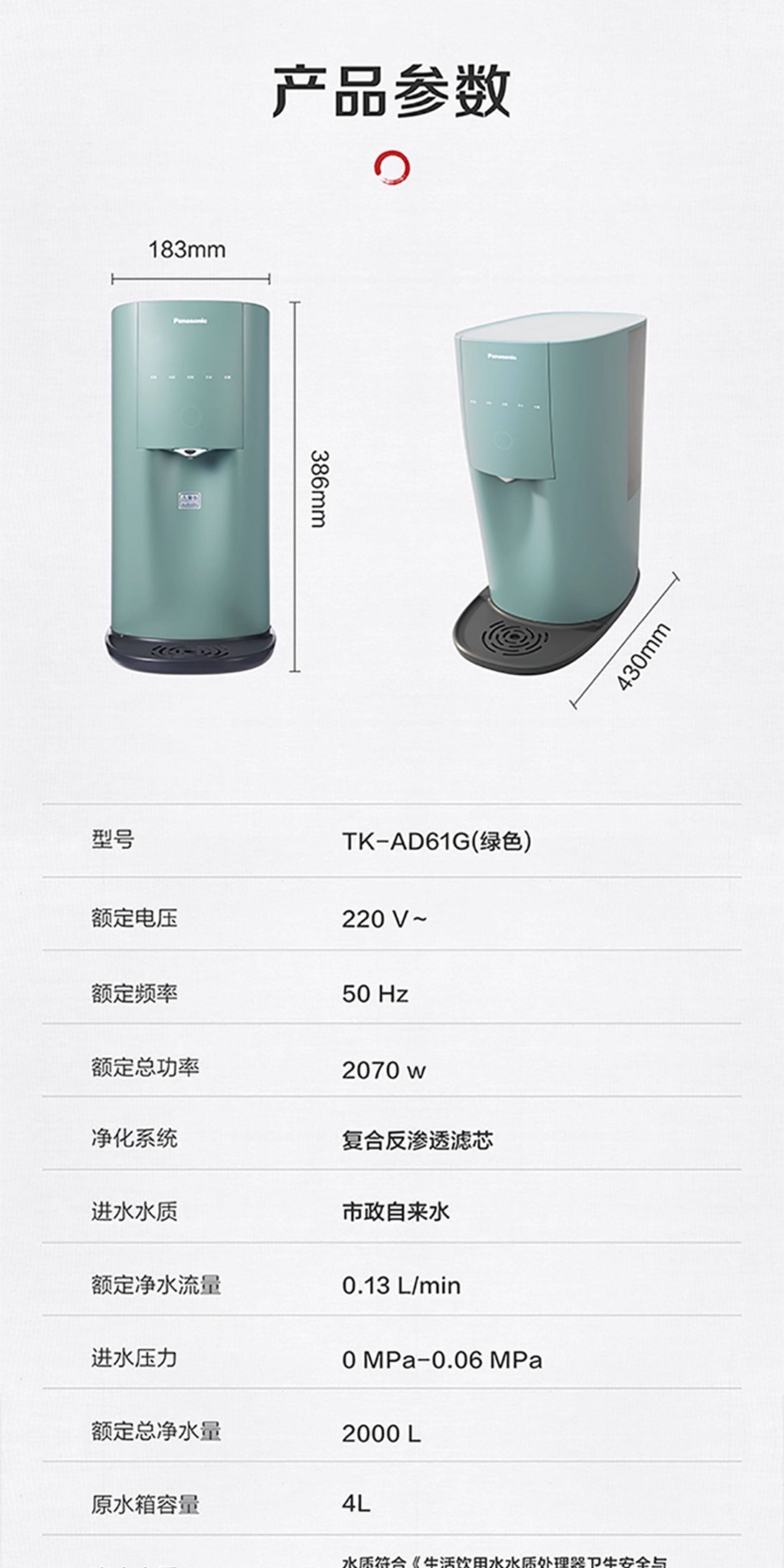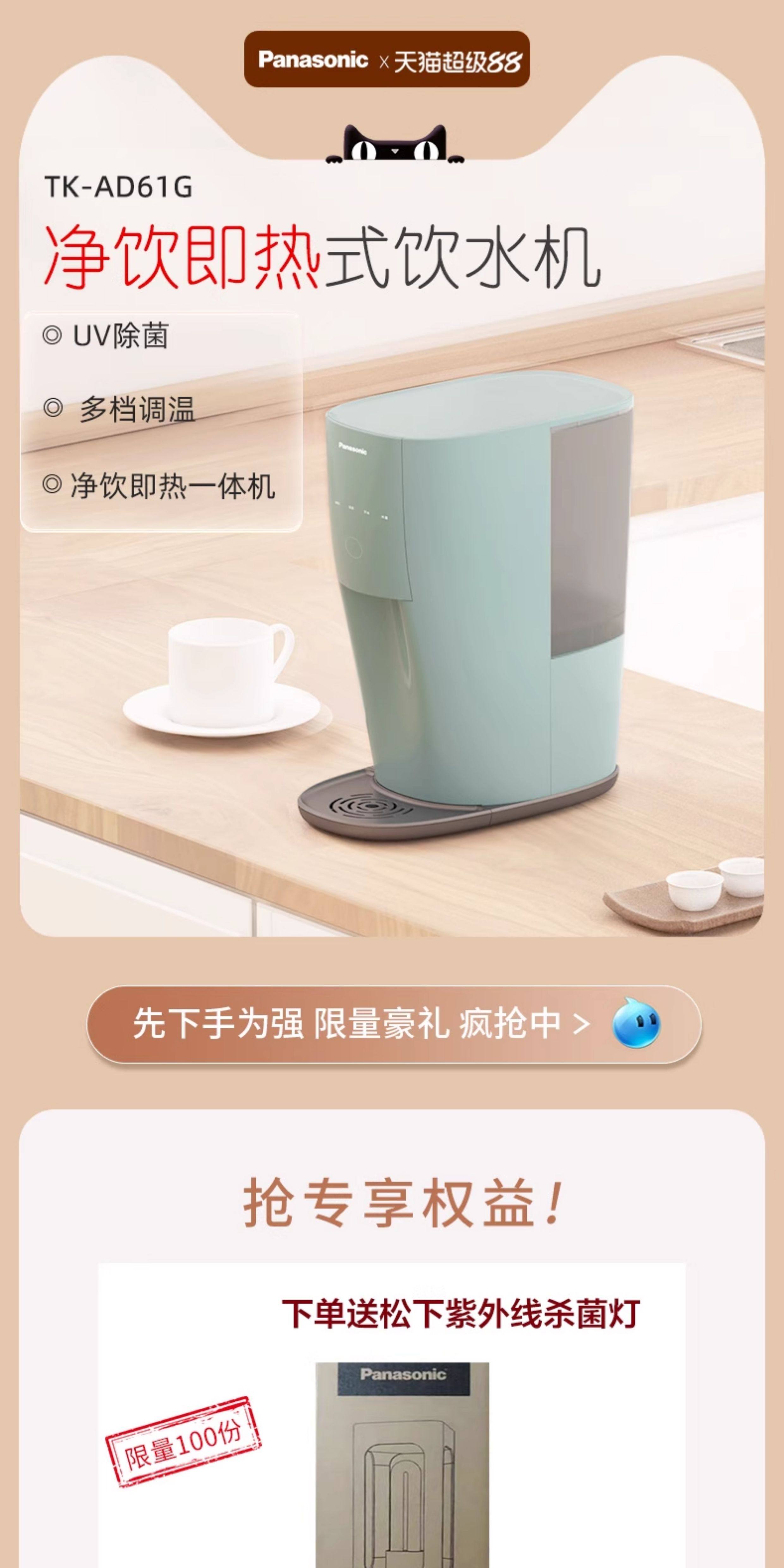 Panasonic Water Purifier Tk-Ad61G Reverse Osmosis Household Instant Hot Water Dispenser Tap Water Direct Drinking Filtration All-In-One Machine