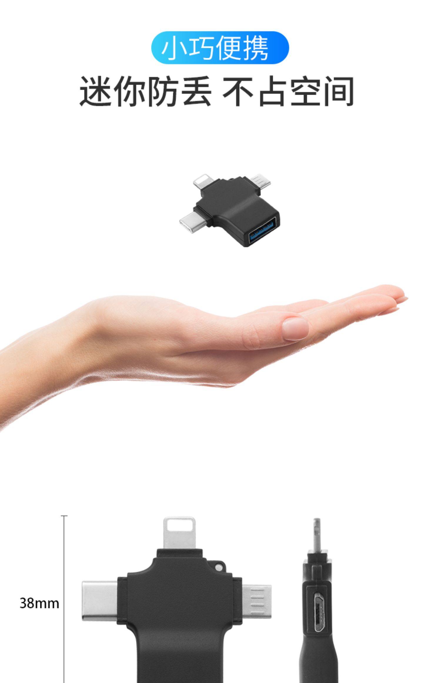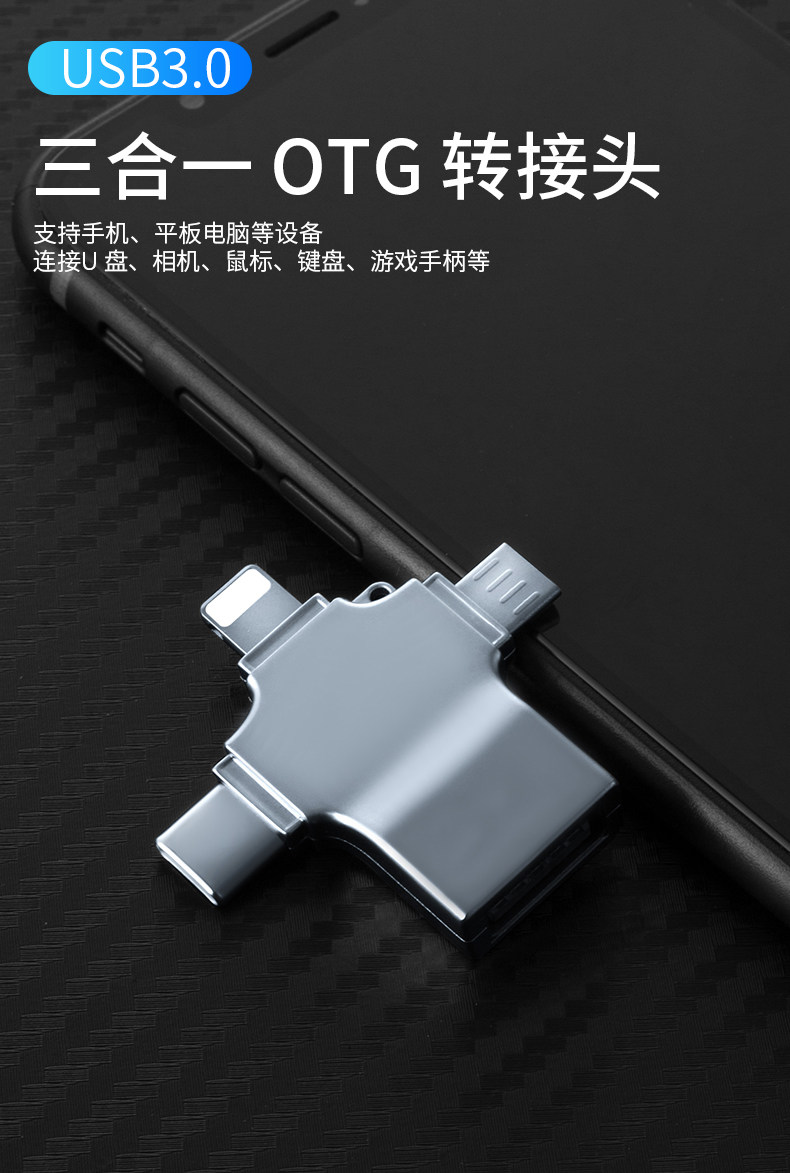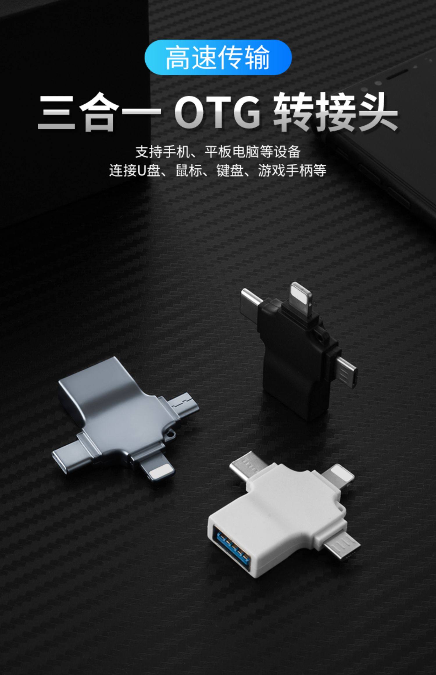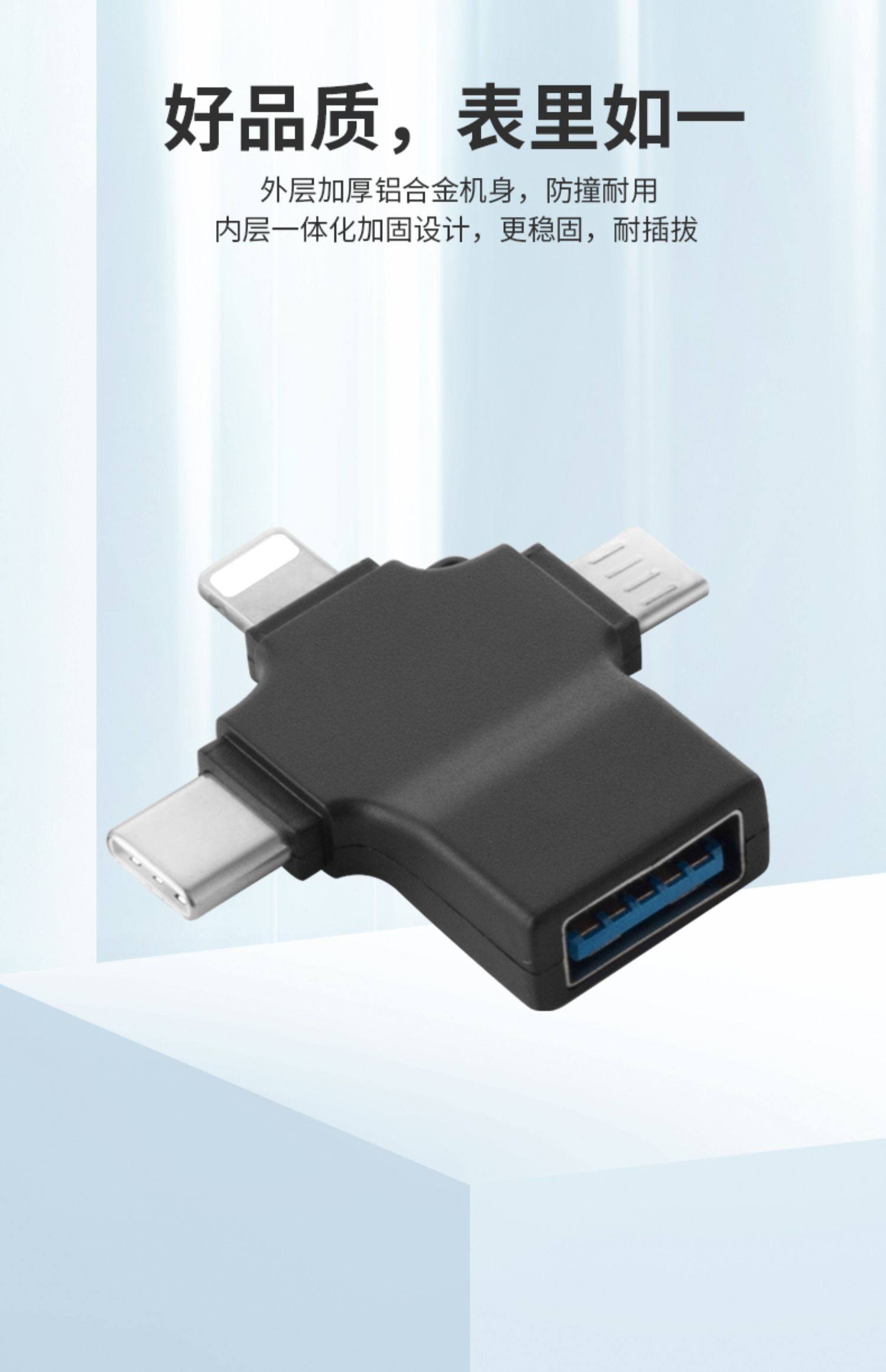 Otg Adapter Three-In-One Mobile Phone USB Converter Data Cable Multi-Functional Universal Two-In-One Tpc Connection Download USB Flash Drive Usb3.0 Suitable for Apple Huawei Android Type-C Interface Universal