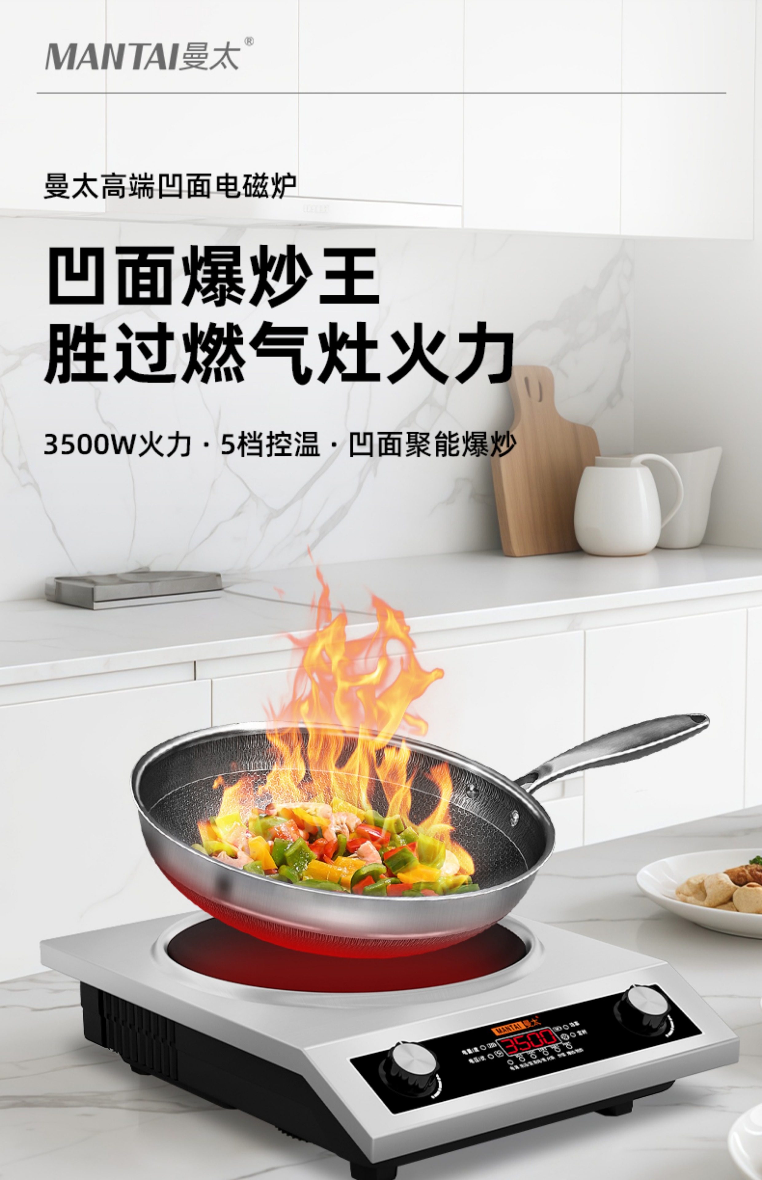 Mantai Commercial Concave Induction Cooker for Home Use, 3500W High-Power Strong Fire Stove for Stir-Frying, Concave Induction Cooker Set