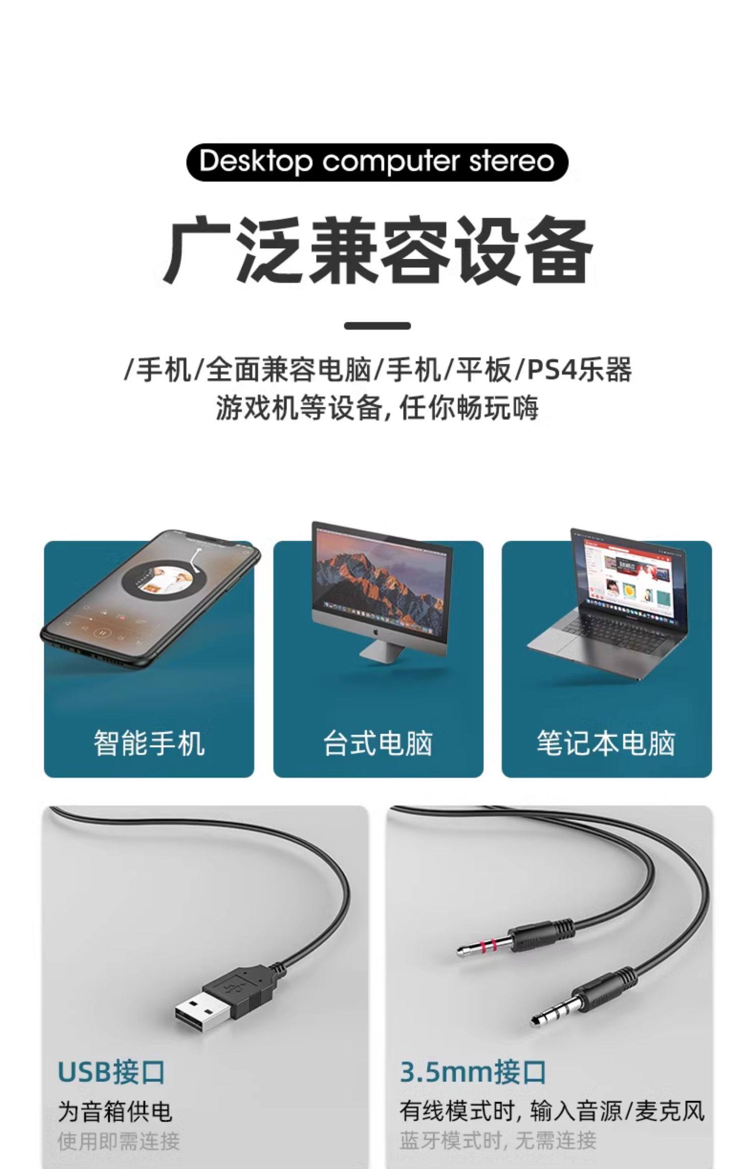 Computer Speakers Desktop Home Use Small Speakers Integrated Speaker USB with Microphone Long Strip Bluetooth Wired