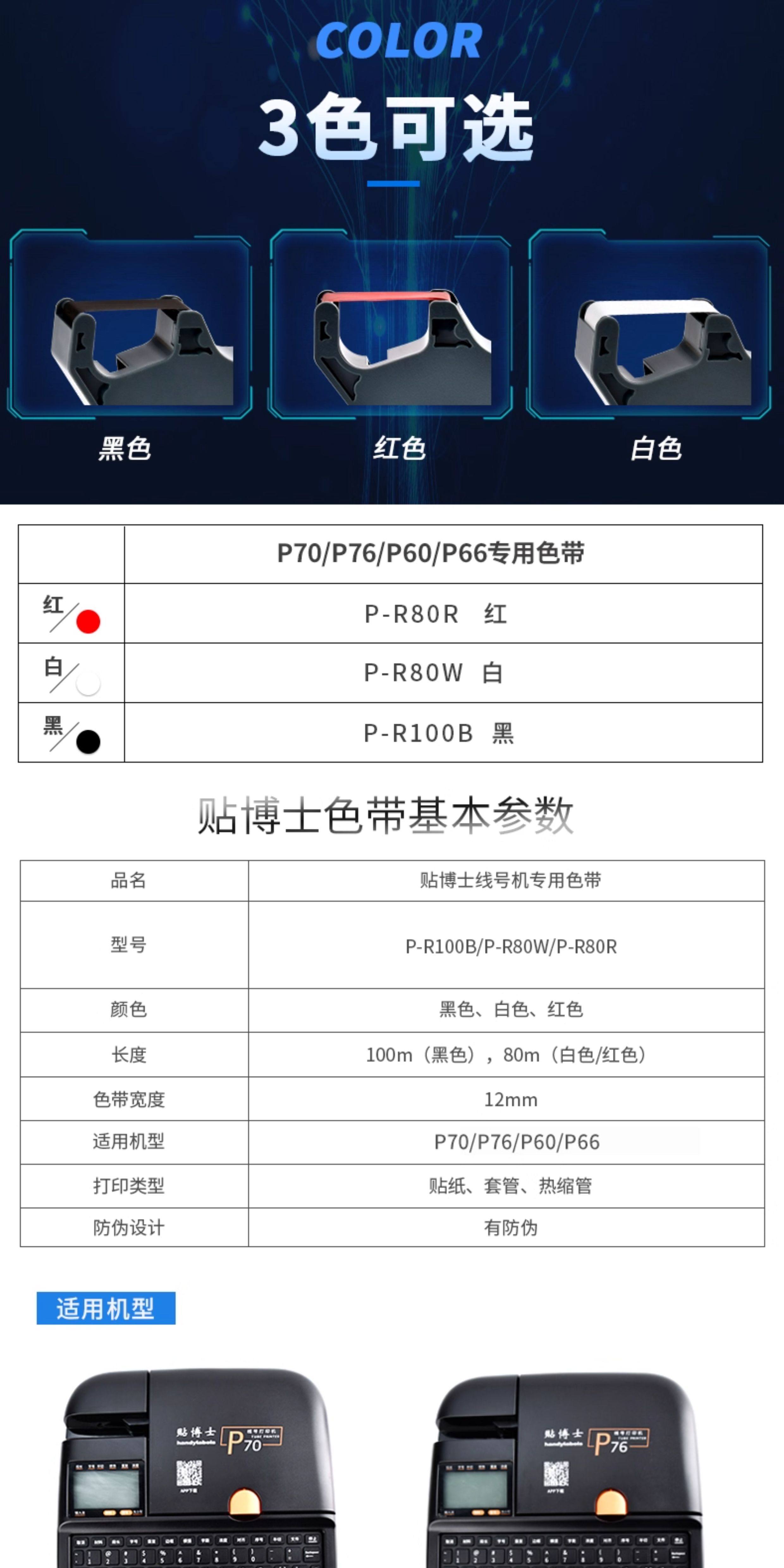 | Color Classification | P60/P66/P70/76 Black with P-100B[100m],P60/P66/P70/76 Red with P-80R[80m],P60/P66/P70/76 White with P-80W[80m],Portable Boxed Heat Shrink Tube Φ4.8*3m |