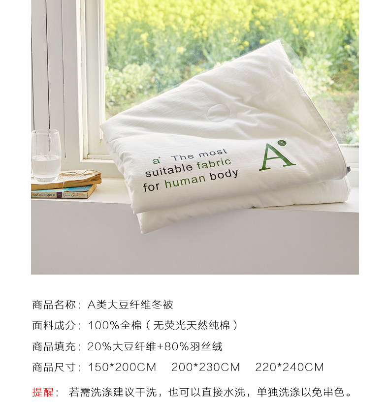 | Size | 150x200cm[Class a Soy Fiber Thickened Winter Quilt]5.3.5kg,200X230cm[Class a Soy Fiber Thickened Winter Quilt]8.0.5kg,220x240cm[Class a Soy Fiber Thickened Winter Quilt]9.2.5kg,150x200cm[Class a Soy Fiber Winter Quilt]5.1.0kg,200X230cm[Class a Soy Fiber Winter Quilt]7.0.5kg,220x240cm[Class a Soy Fiber Winter Quilt]7.3.5kg,150x200cm[Class a Soy Fiber Spring and Autumn Quilt]3.3kg,200X230cm[Class a Soy Fiber Spring and Autumn Quilt]5.0.5kg,220x240cm[Class a Soy Fiber Spring and Autumn Quilt]5.4.5kg,150x200cm[Class a Soy Fiber Summer Quilt]2.0kg,200X230cm[Class a Soy Fiber Summer Quilt]3.0kg,220x240cm[Class a Soy Fiber Summer Quilt]3.1.5kg |