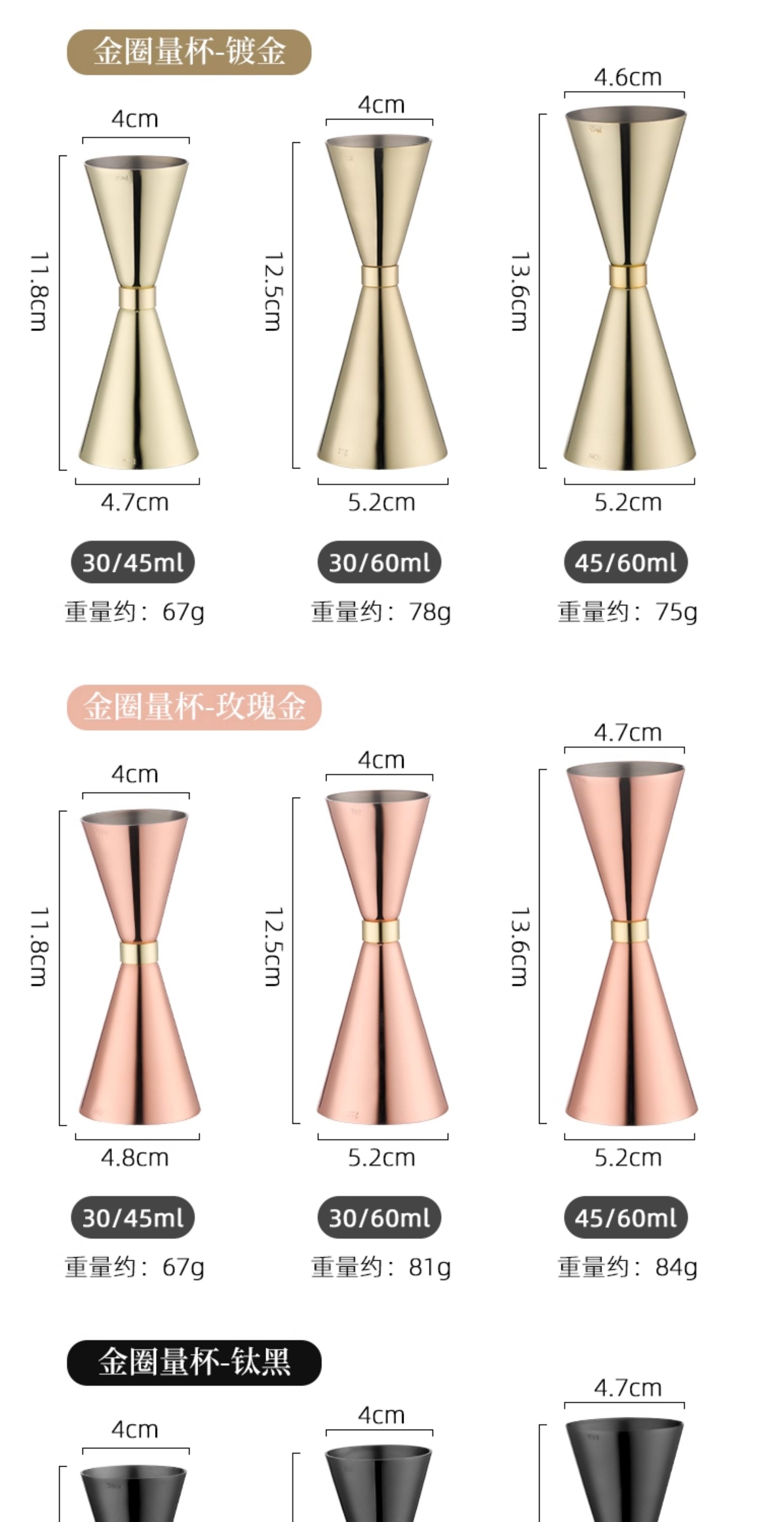 | Color Classification | Gold Circle Measuring Cup[30/45ml]Silver Plated,Gold Circle Measuring Cup[30/60ml]Silver Plated,Gold Circle Measuring Cup[45/60ml]Silver Plated,Gold Circle Measuring Cup[30/45ml]Gold Plated,Gold Circle Measuring Cup[30/60ml]Gold Plated,Gold Circle Measuring Cup[45/60ml]Gold Plated,Gold Circle Measuring Cup[30/45ml]Rose Gold,Gold Circle Measuring Cup[30/60ml]Rose Gold,Gold Circle Measuring Cup[45/60ml]Rose Gold,Light Gold Ring Measuring Cup[30/45ml]Titanium Black,Gold Circle Measuring Cup[30/60ml]Titanium Black,Gold Circle Measuring Cup[45/60ml]Titanium Black |