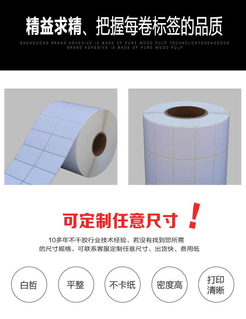 Shengdong Coated Barcode Paper Self-Adhesive Label Printing Paper 100X80*70*60*50*40*30*20*10 32X19 Barcode Printing Paper Label Paper Coated Paper Colorful Self-Adhesive Stickers
