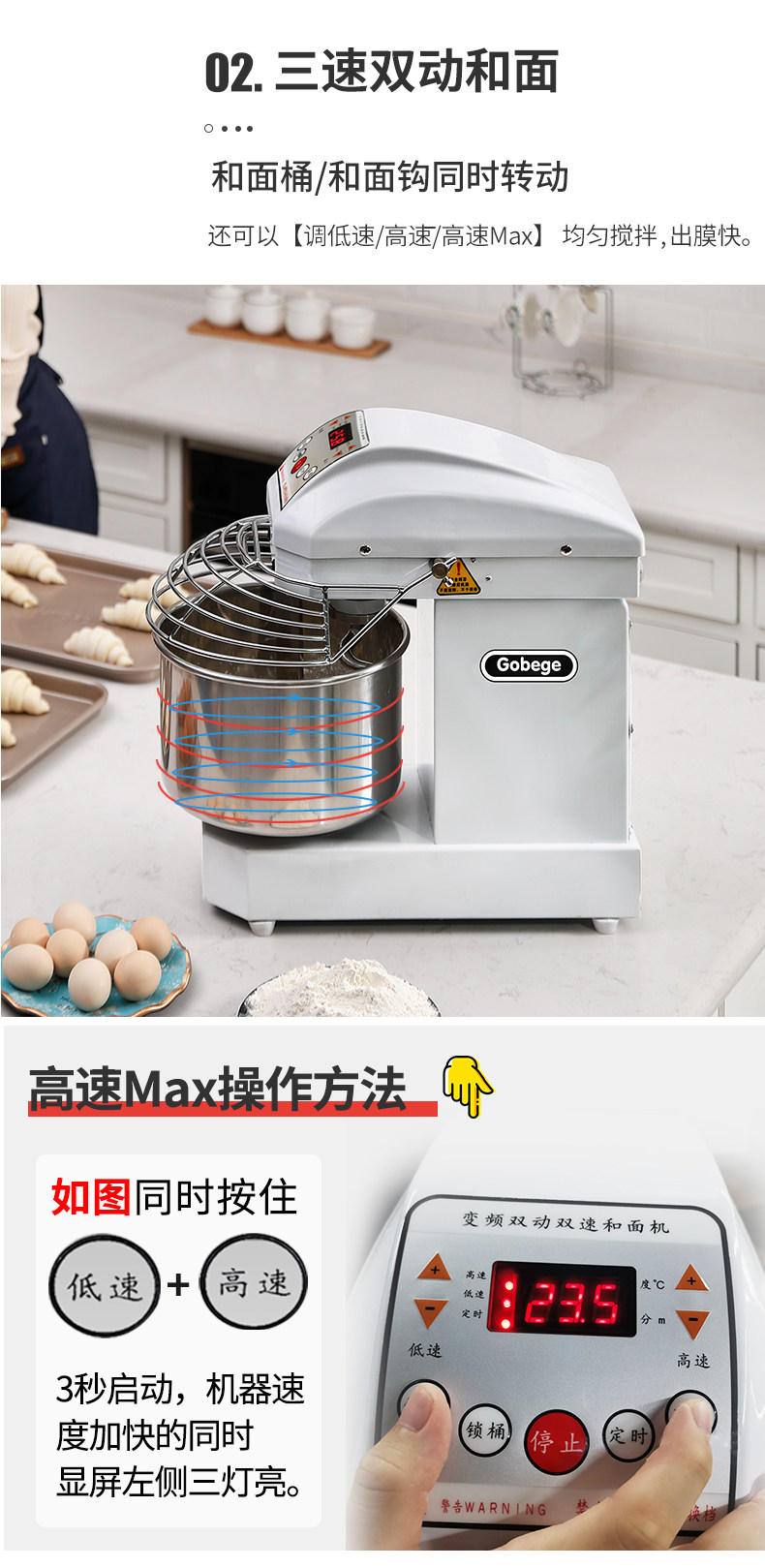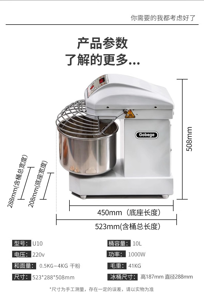 Ukoeo U10 Three-Speed Double-Action Dough Mixer Blender Fully Automatic Dough Mixer Chef Cooking Machine