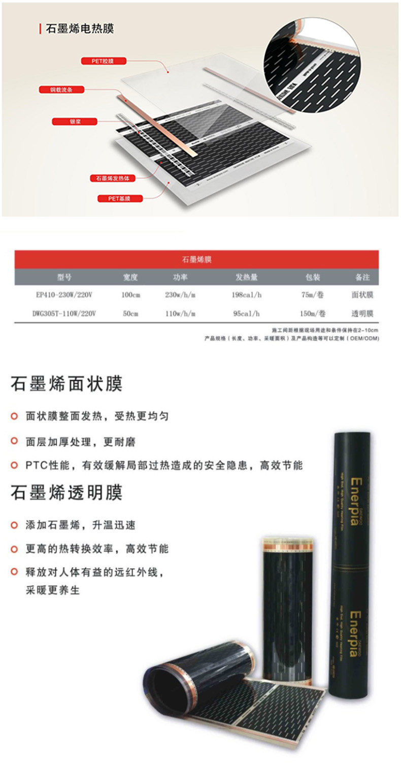 Graphene Electric Floor Heating Home Complete Set of Equipment Imported from South Korea Heating Cable Electric Heating Film Yoga Studio Floor Heating System
