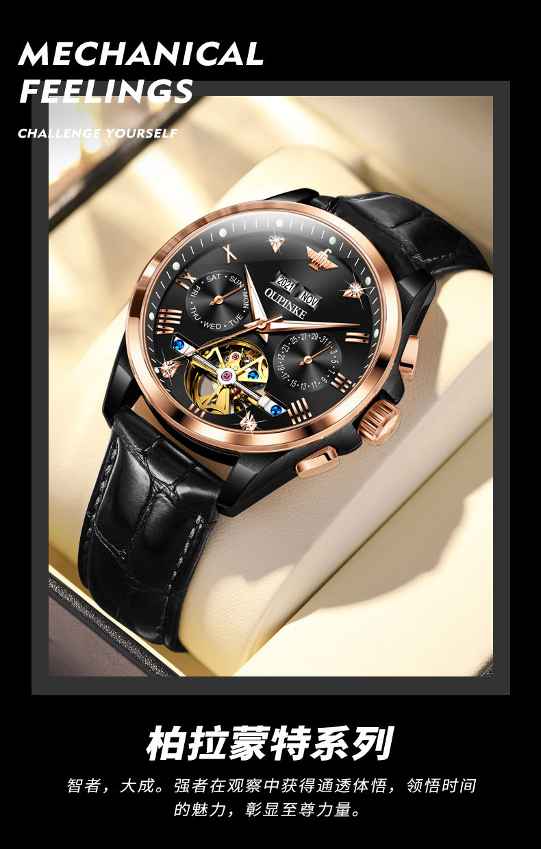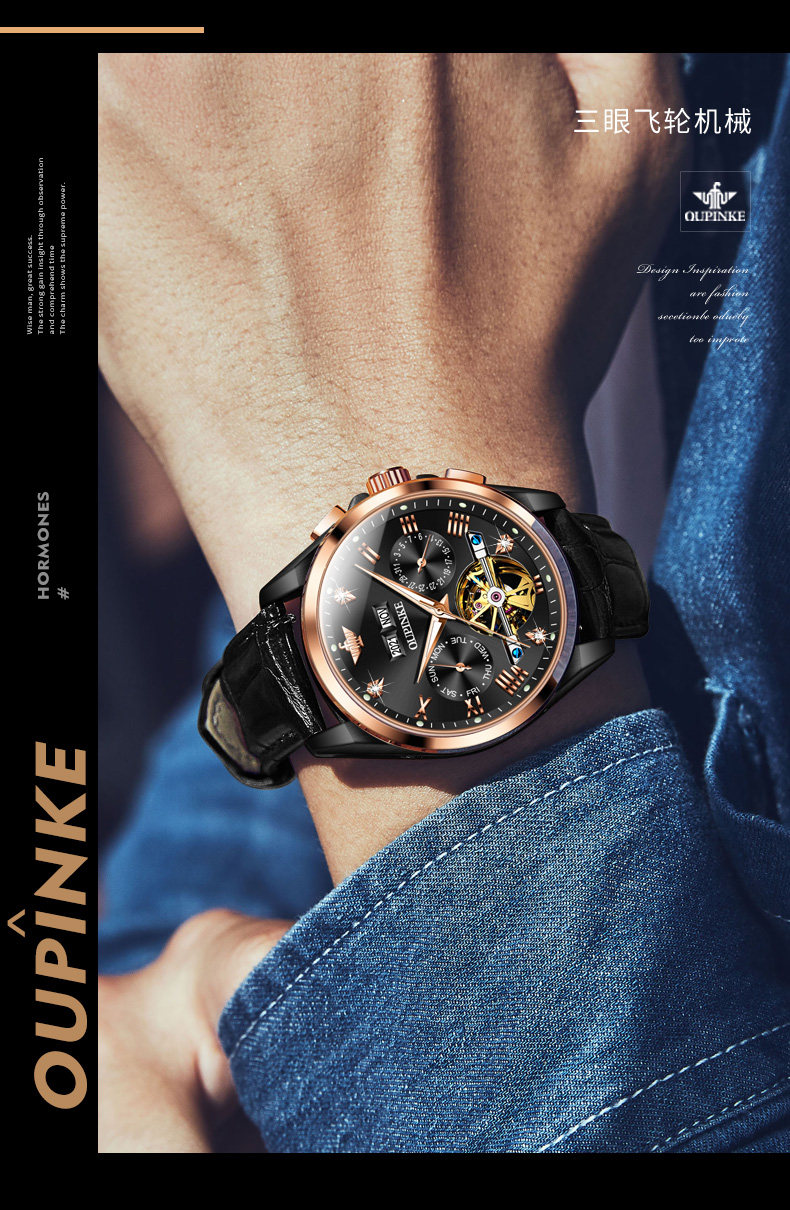 2026 New Swiss Oupinke Brand Men's Watch Genuine Mechanical Watch Fully Automatic Leather Strap Men's Model