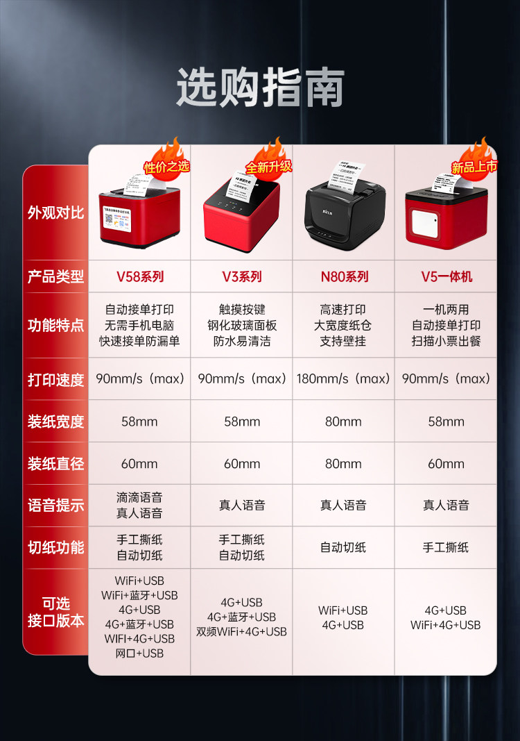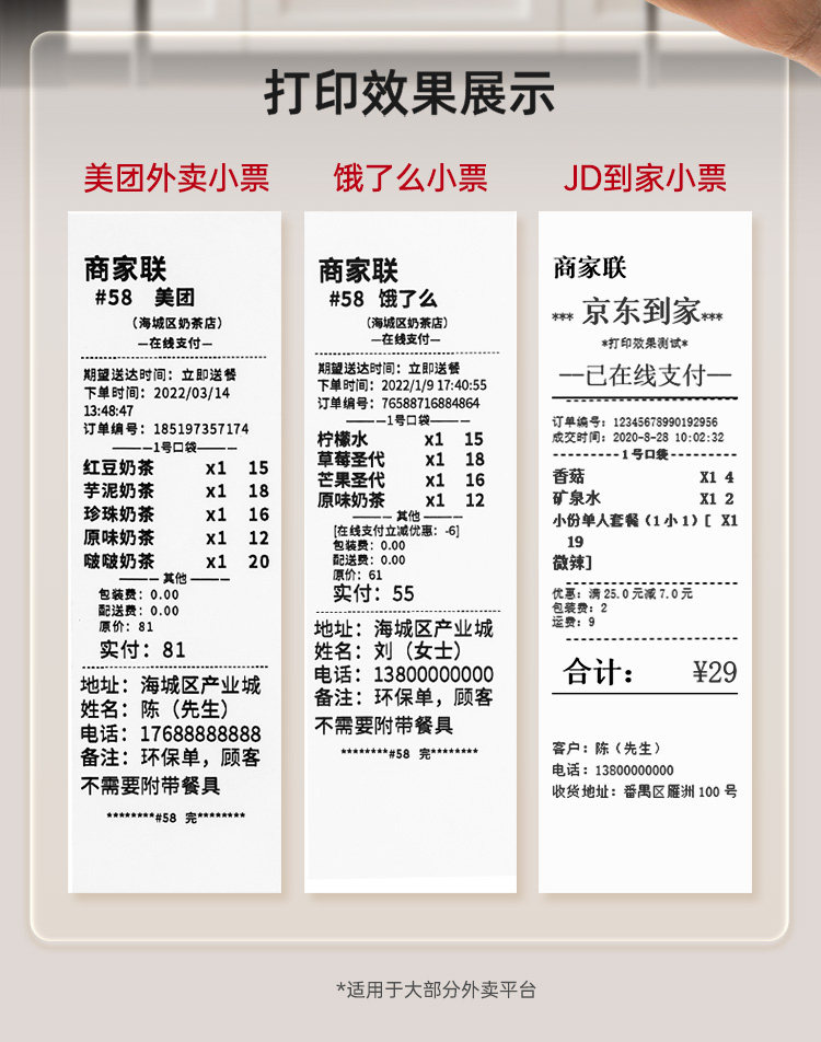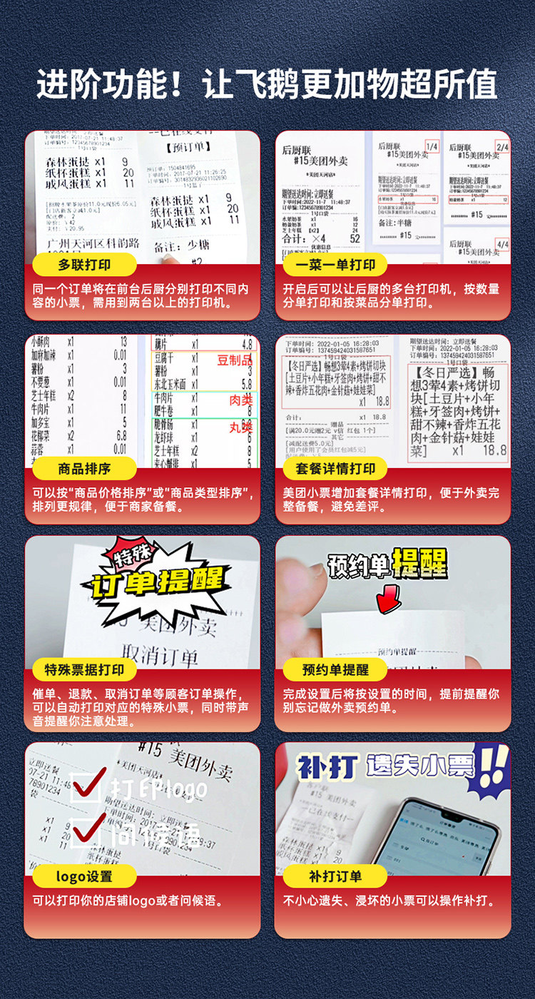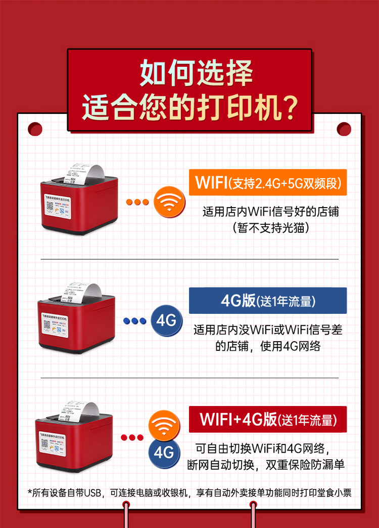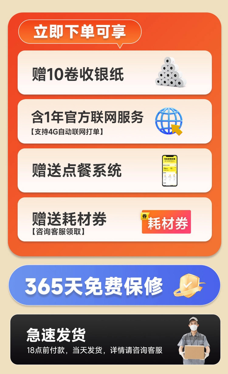 | Color Classification | ✅[30-Day Price Guarantee + Refund if You Buy More Expensive + Free Shipping Insurance],✅[Free 10 Rolls of Paper + Scan Code to Order Food Software],✅[1-on-1 Technical Guidance + Video Tutorial + Package Teaching],✅[One Machine with Multiple Uses] Meituan/Ele.Me/Jd.Com/Douyin/Taobao Flash Sale/Maltfield/Meituan Flash Sale/Dianping/Meituan Earn Money/Mini Program,— the Following Is the Wifi Version (Suitable for Customers with Wifi) —,❤️(Special Offer) 4G+Usb [Didi Voice + Hand-Tearable Paper],❤️(Hot-Selling Model) Dual-Band Wifi+Usb [Real Voice + Hand-Tearing],Wifi+Usb [Didi Voice + Hand Tearing],Dual-Band Wifi+Usb [Real Voice + Automatic Paper Cutting],Dual-Band Wifi+Bluetooth+Usb [Real Voice+Hand-Tearing],Dual-Band Wifi+Bluetooth+Usb [Real Voice+Automatic Paper Cutting],Order-Taking and Meal Delivery All-In-One Machine [4G+Usb] Real Voice + Manual Paper Tearing,Jd.Com/Hour Delivery/Douyin Recommended [Dual-Band Wifi+Usb] Real Voice + Hand-Tearing Paper,— the Following Is the 4g Version (Suitable for Customers Without Wifi)—,4G+Usb [Real Voice + Hand Tearing],4G+Usb [Real Voice + Automatic Paper Cutting],4G+Bluetooth+Usb [Real Voice+Hand-Made Tearing],4G+Bluetooth+Usb [Real Voice+Automatic Paper Cutting],4G+Dual-Band Wifi+Usb [Real Voice+Hand-Torn Paper],4G+Dual-Band Wifi+Usb [Real Voice+Automatic Paper Cutting],Order-Taking and Meal Delivery All-In-One Machine [4G+Wifi+Usb] Real Voice + Manual Paper Tearing,Ethernet Port + USB [Live Voice + Hand-Torn Paper],Network Port + USB [Real Voice + Automatic Paper Cutting],— the Following Prints 80mm Large Width Receipts —,(80mm Width) Wifi+Usb [Real Voice + Automatic Paper Cutting],(80mm Width) 4G+Usb [Real Voice + Automatic Paper Cutting],— the Following Is the Feige Cloud Label Machine —,Cloud Label Machine [Wifi+Usb] Comes with 4 Rolls of Label Paper,Cloud Label Maker [Full Netcom 4g + USB] - Includes 4 Rolls of Label Paper |