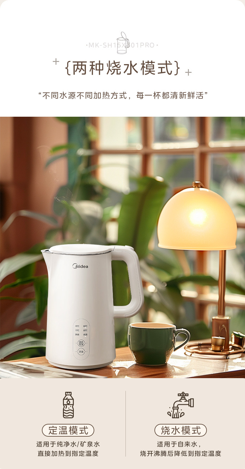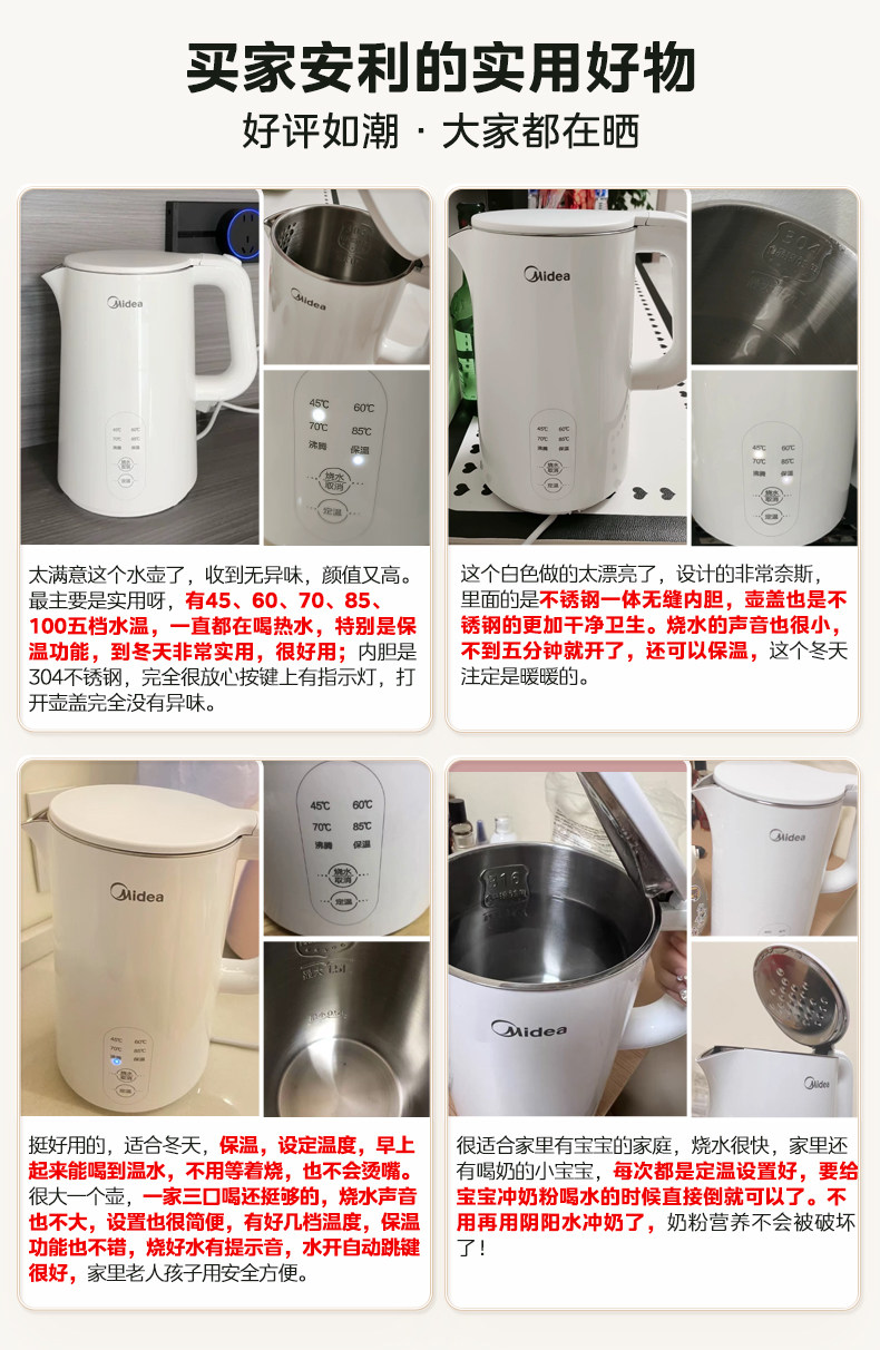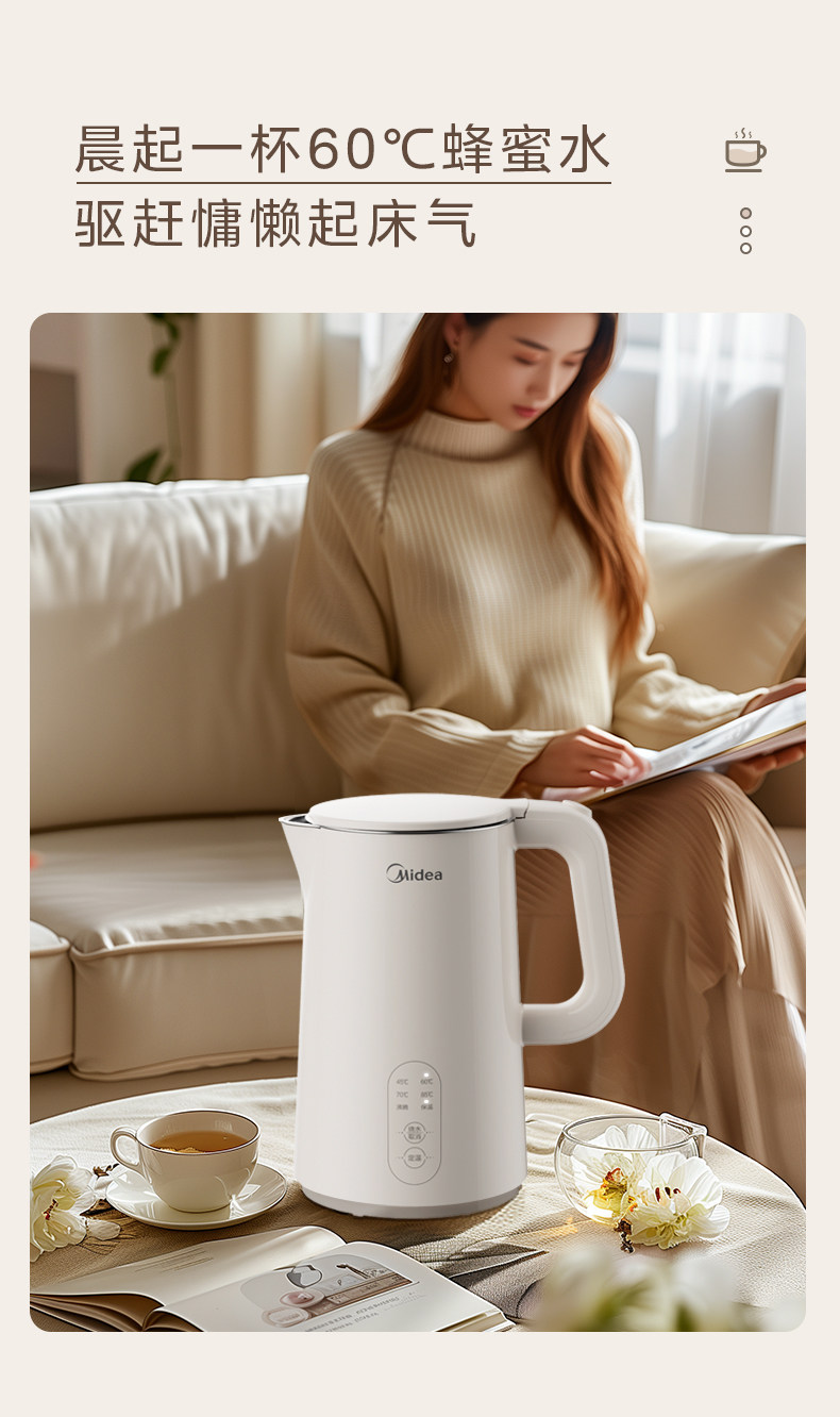 Midea Constant Temperature Electric Kettle for Home Use, Smart Kettle for Making Tea, Integrated Heating and Insulation, Fully Automatic Stainless Steel Kettle