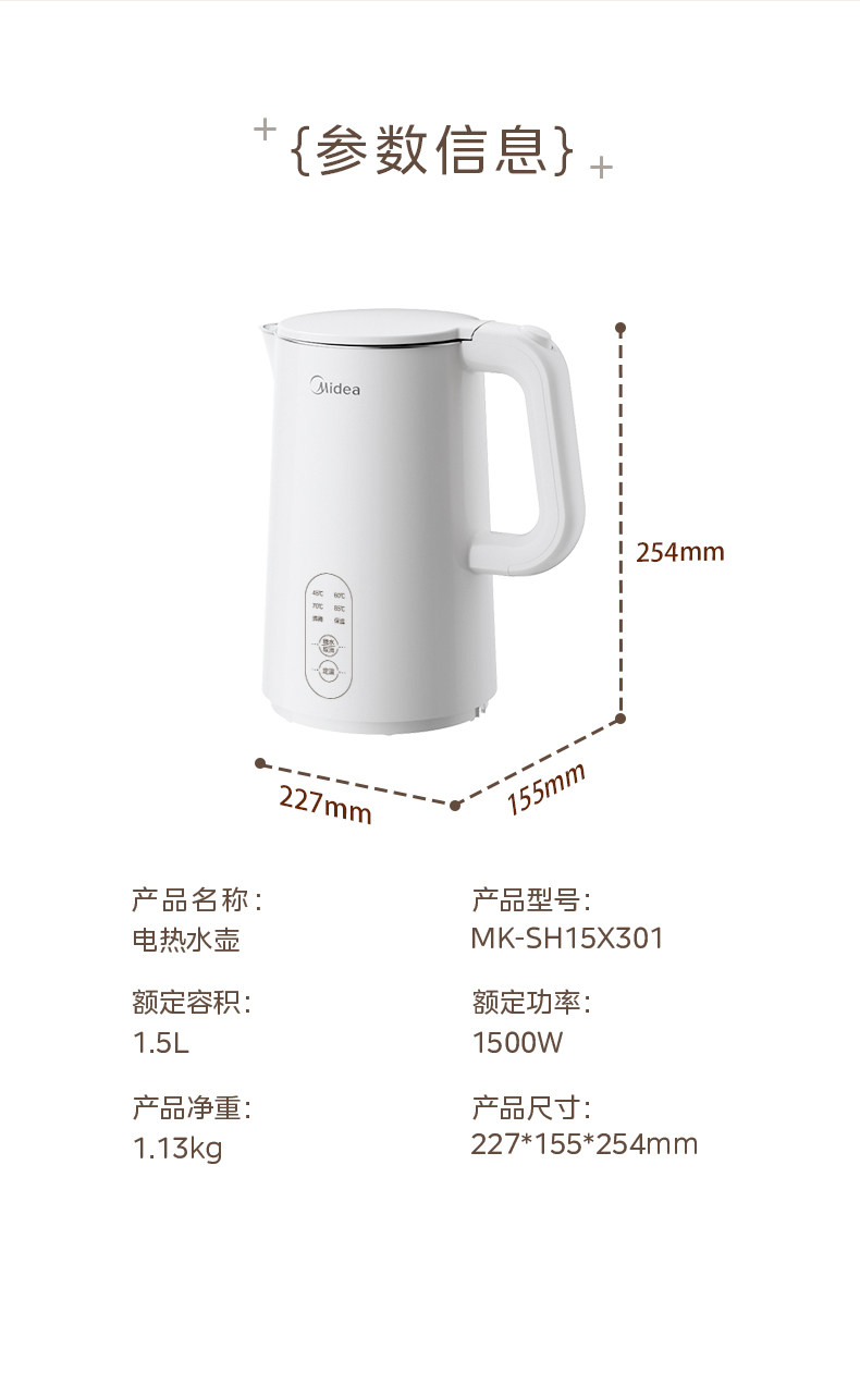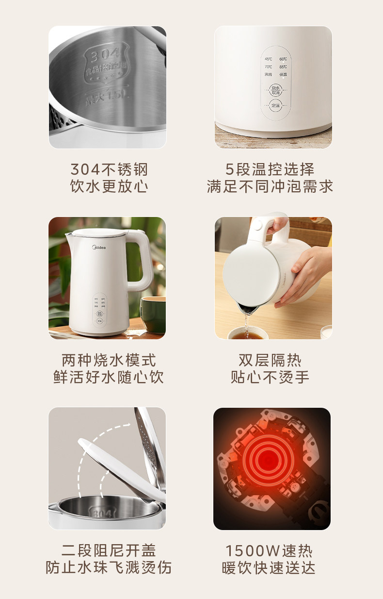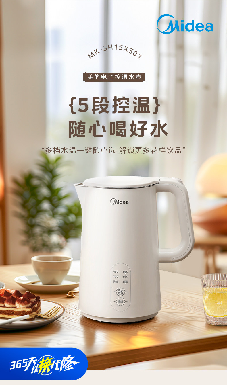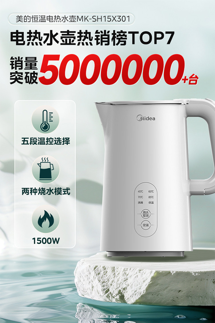 Midea Constant Temperature Electric Kettle for Home Use, Smart Kettle for Making Tea, Integrated Heating and Insulation, Fully Automatic Stainless Steel Kettle
