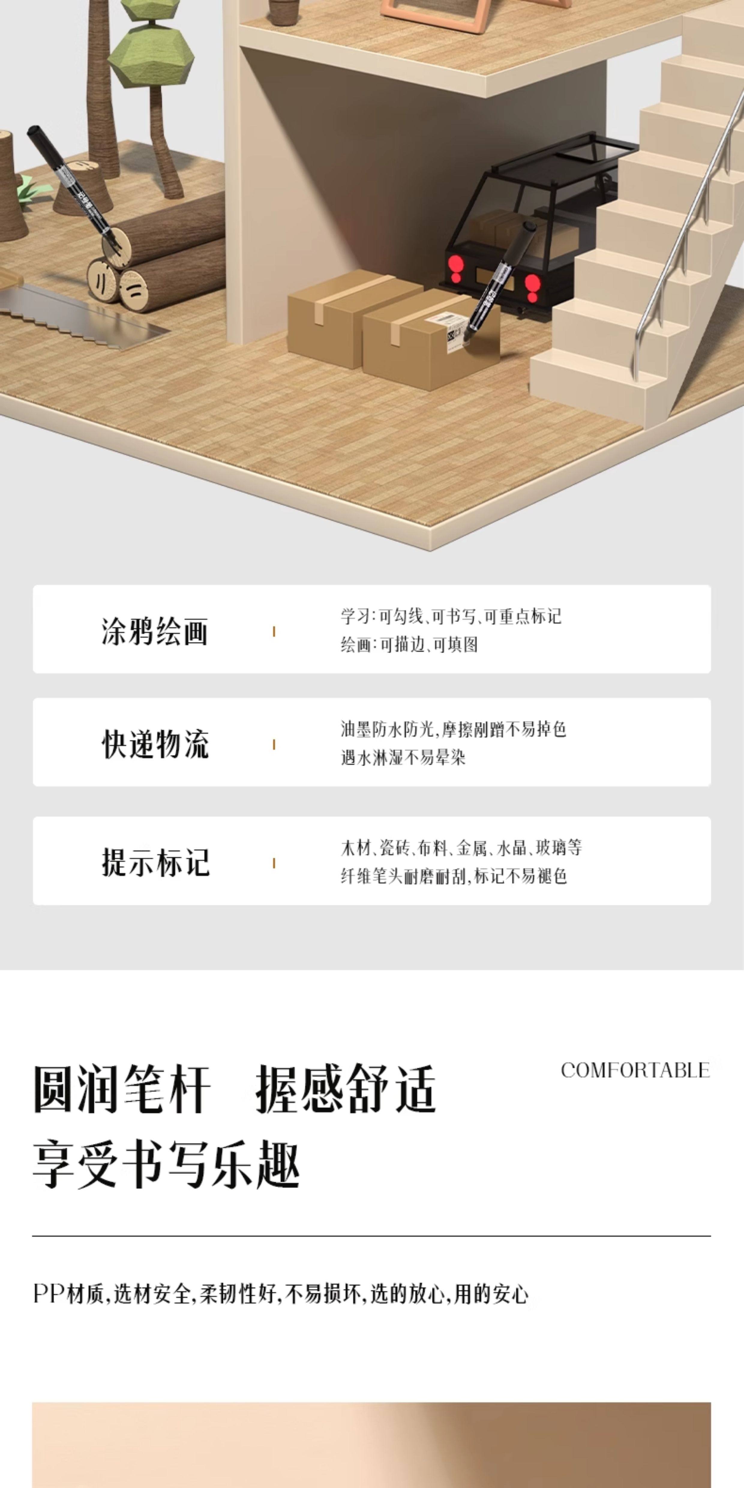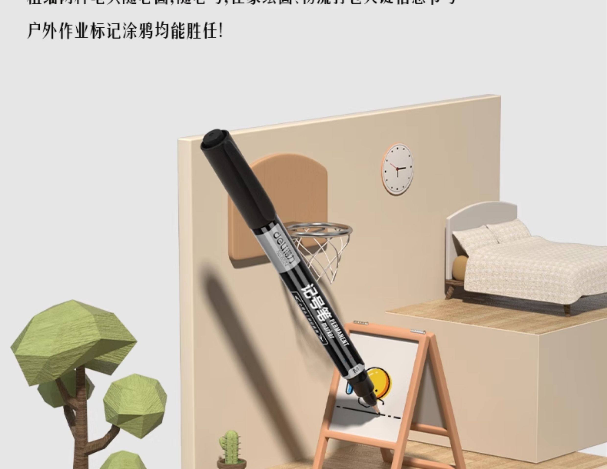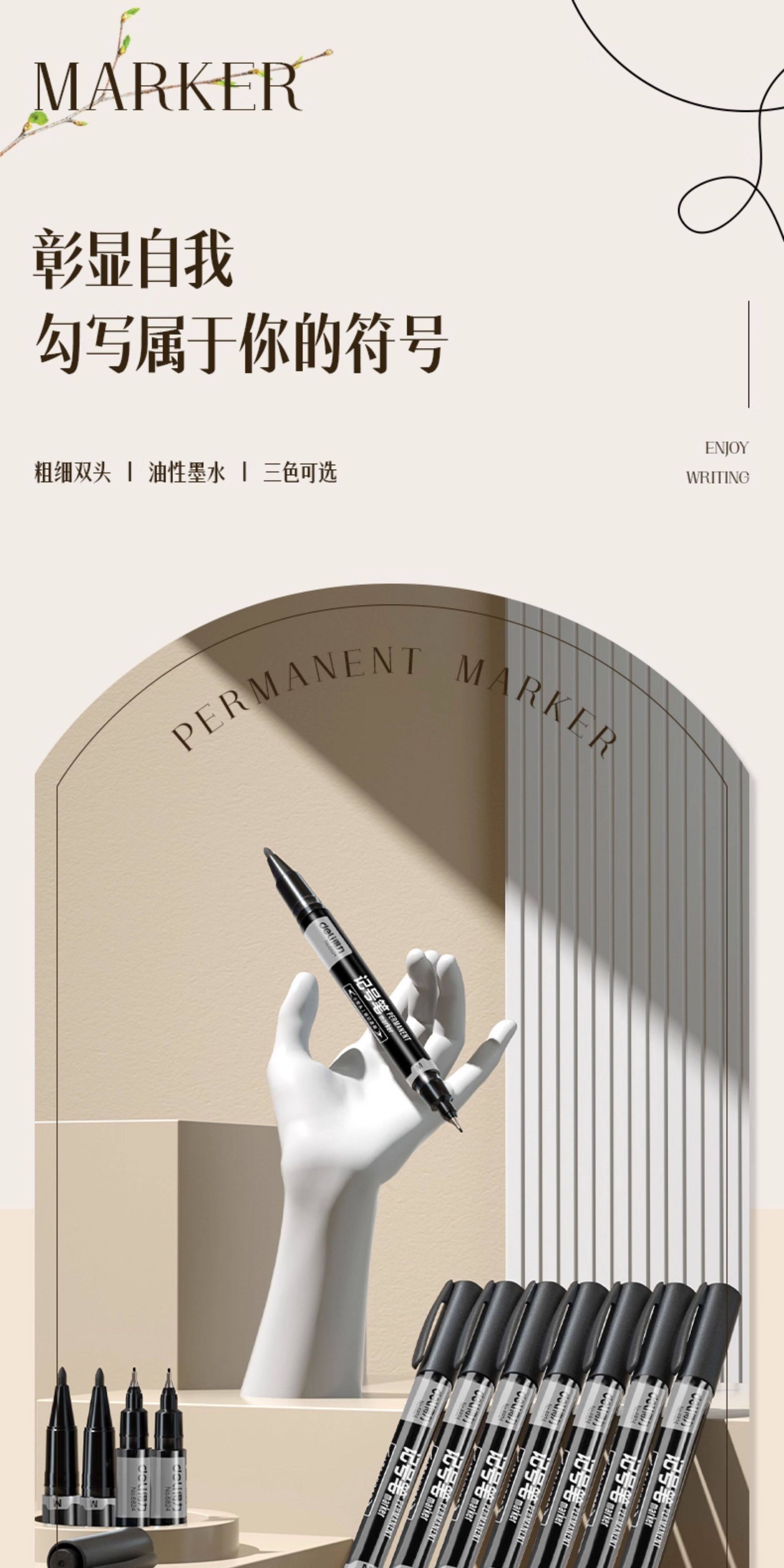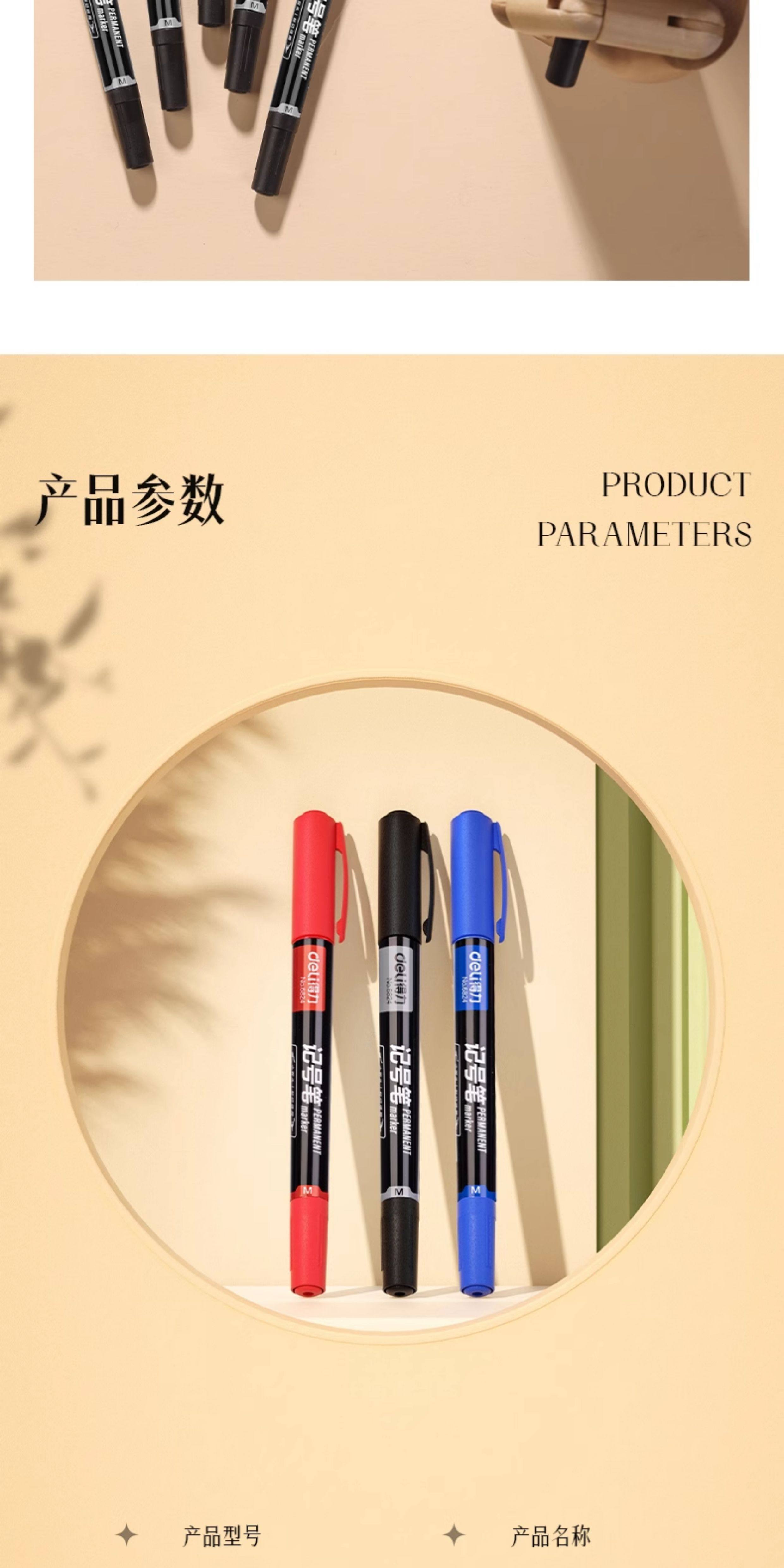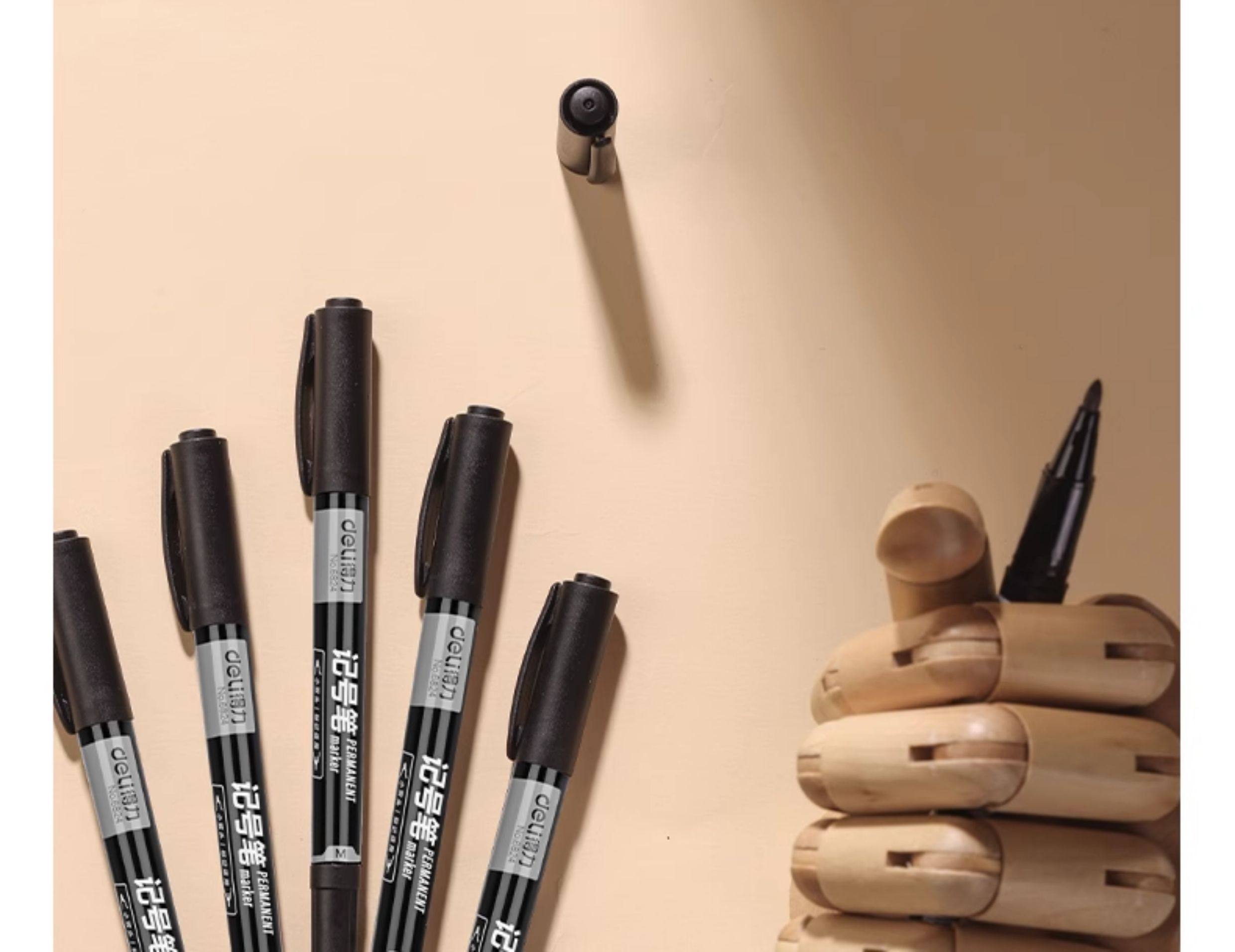 60 Deli Dual-Tip Markers, Black, Fade-Resistant, Waterproof for Construction Sites, Oil-Based, Thick and Thin Tips, Red Marker, Quick-Drying, Blue Marker, Graffiti Pen, Non-Erasable