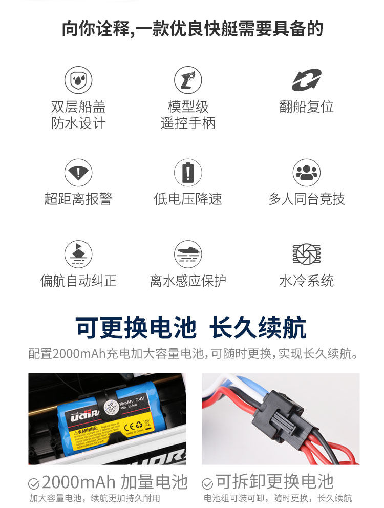 Udi Udi905 Double-Layer Waterproof Remote Control Boat Rechargeable Extra-Large Water High-Speed Speedboat Toy for Kidsren