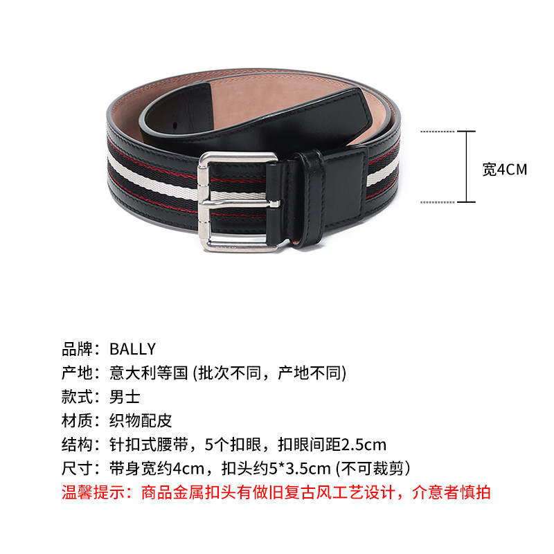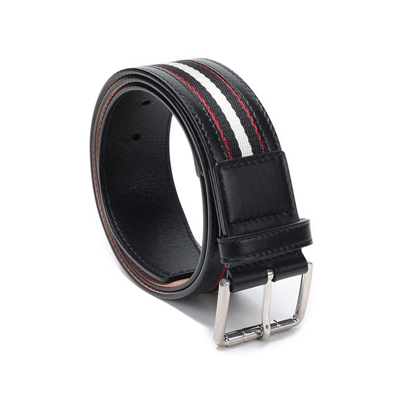 Bally Men's Striped Vintage Pin Buckle Casual Leather Belt Wilford 40 m