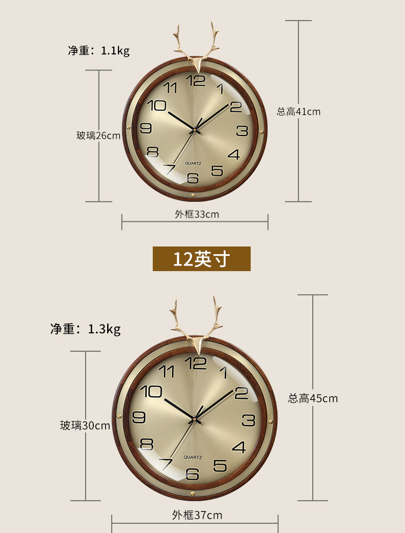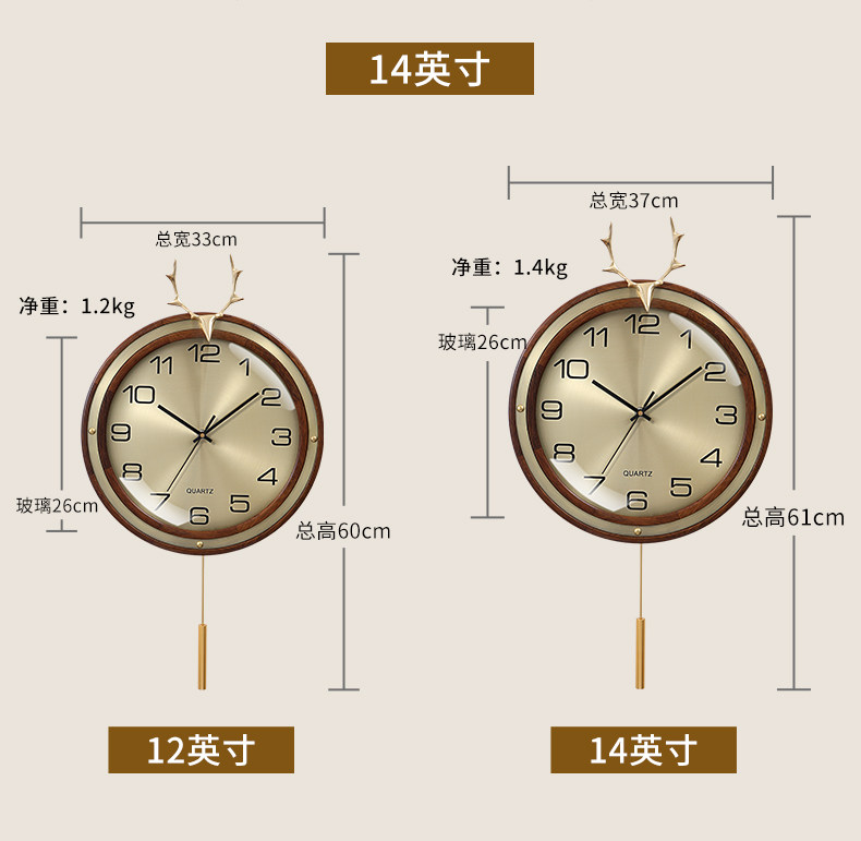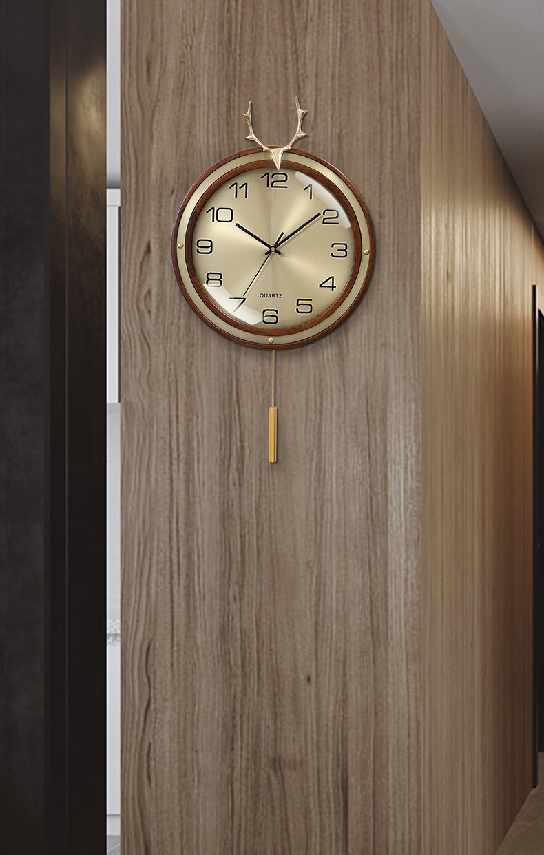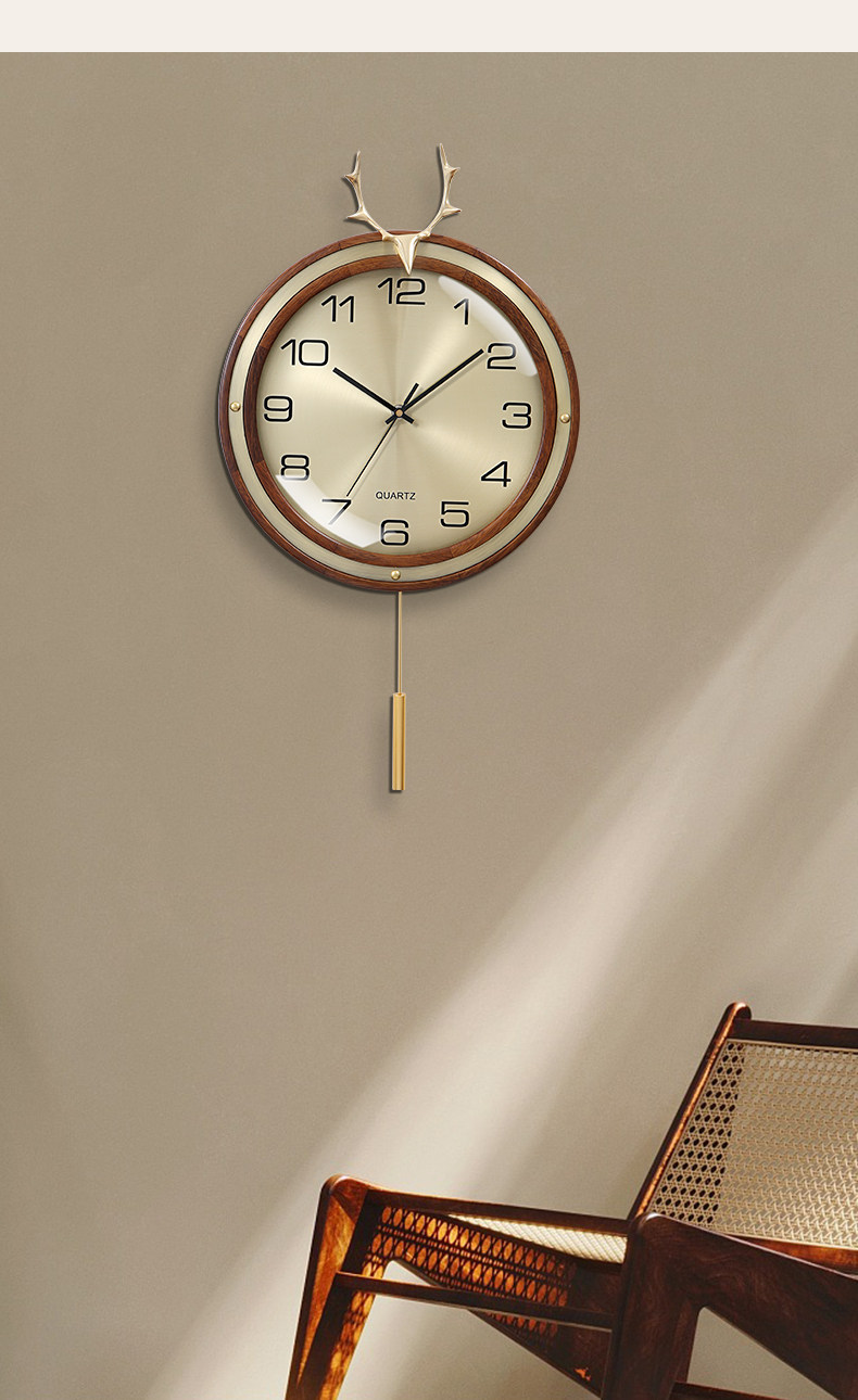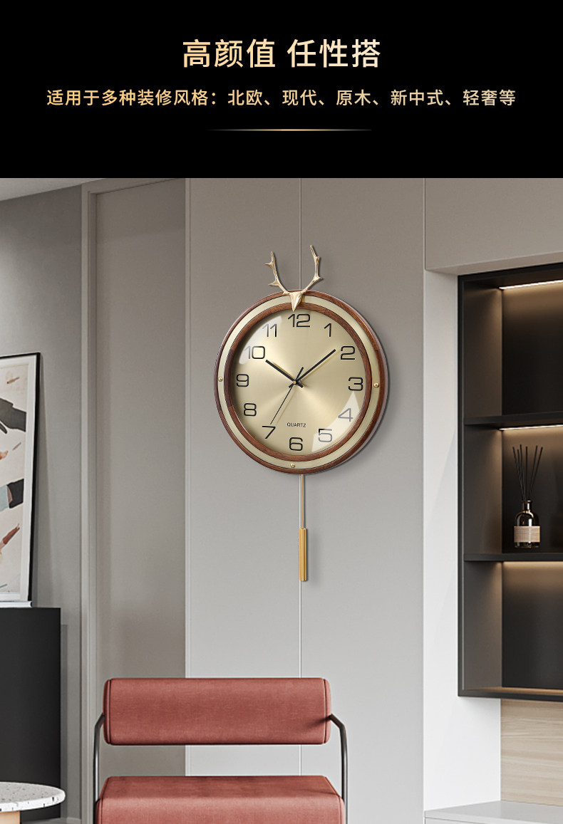 Timess Atmospheric Clock Wall Clock for Living Room Home Use, Stylish and Creative, Silent, Light Luxury, Deer Head Brass Wall Clock