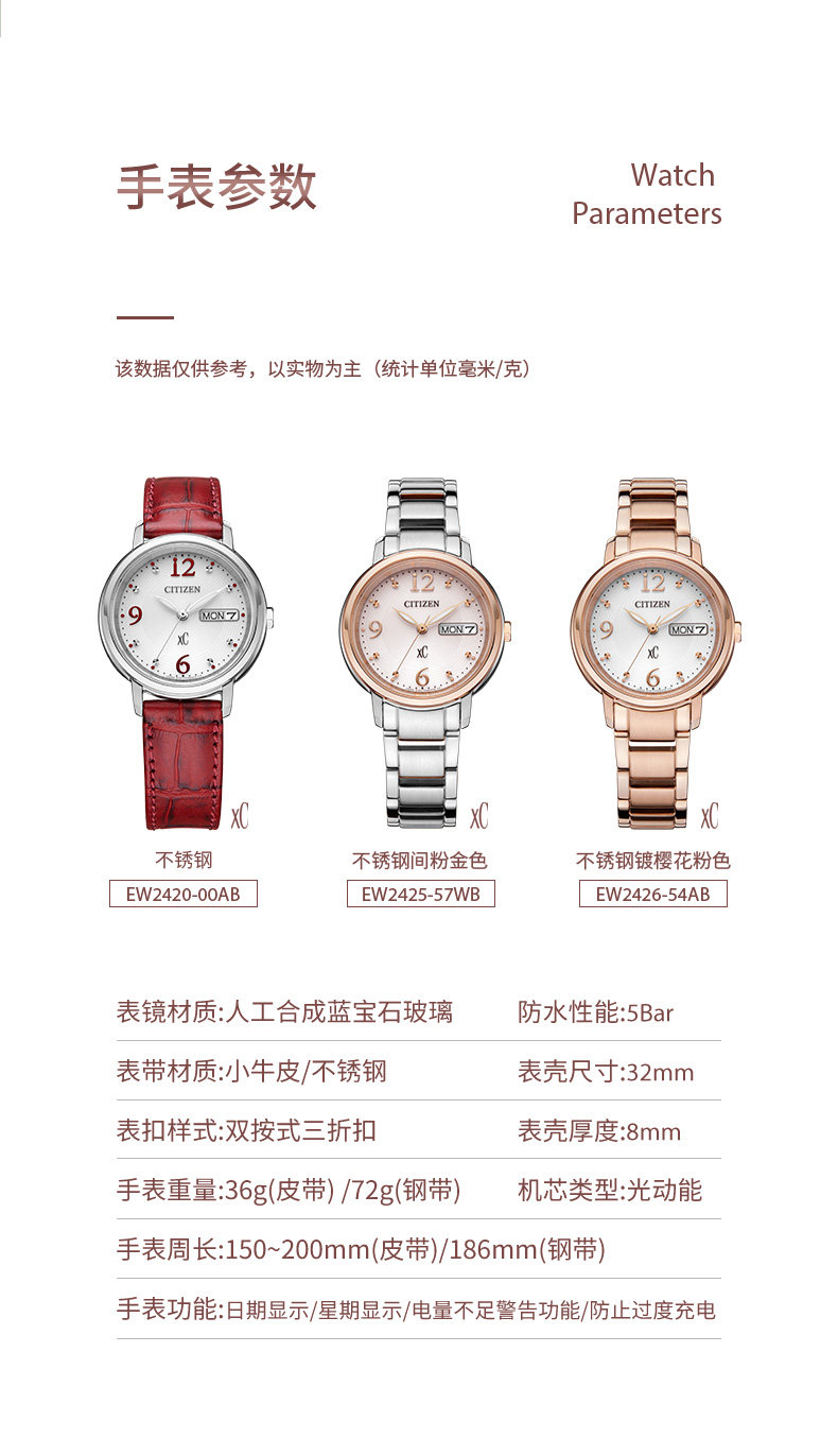 Citizen Flagship Store Official Website New Xc Series Exquisite Light Luxury Calfskin Kinetic Energy Watch for Women Ew2425