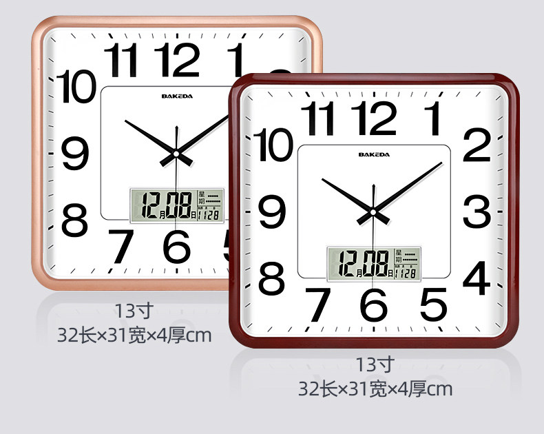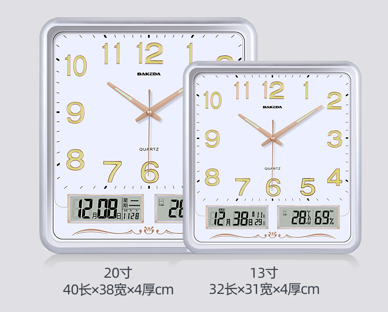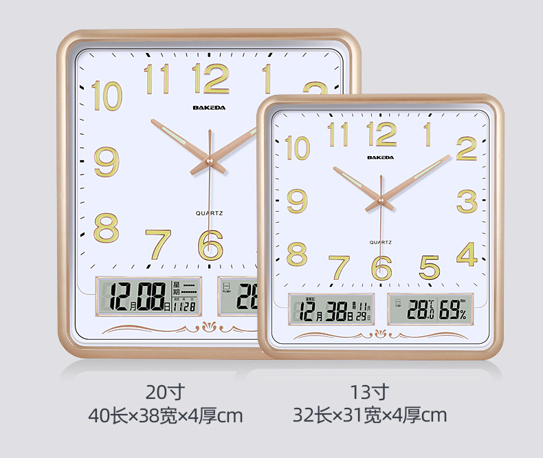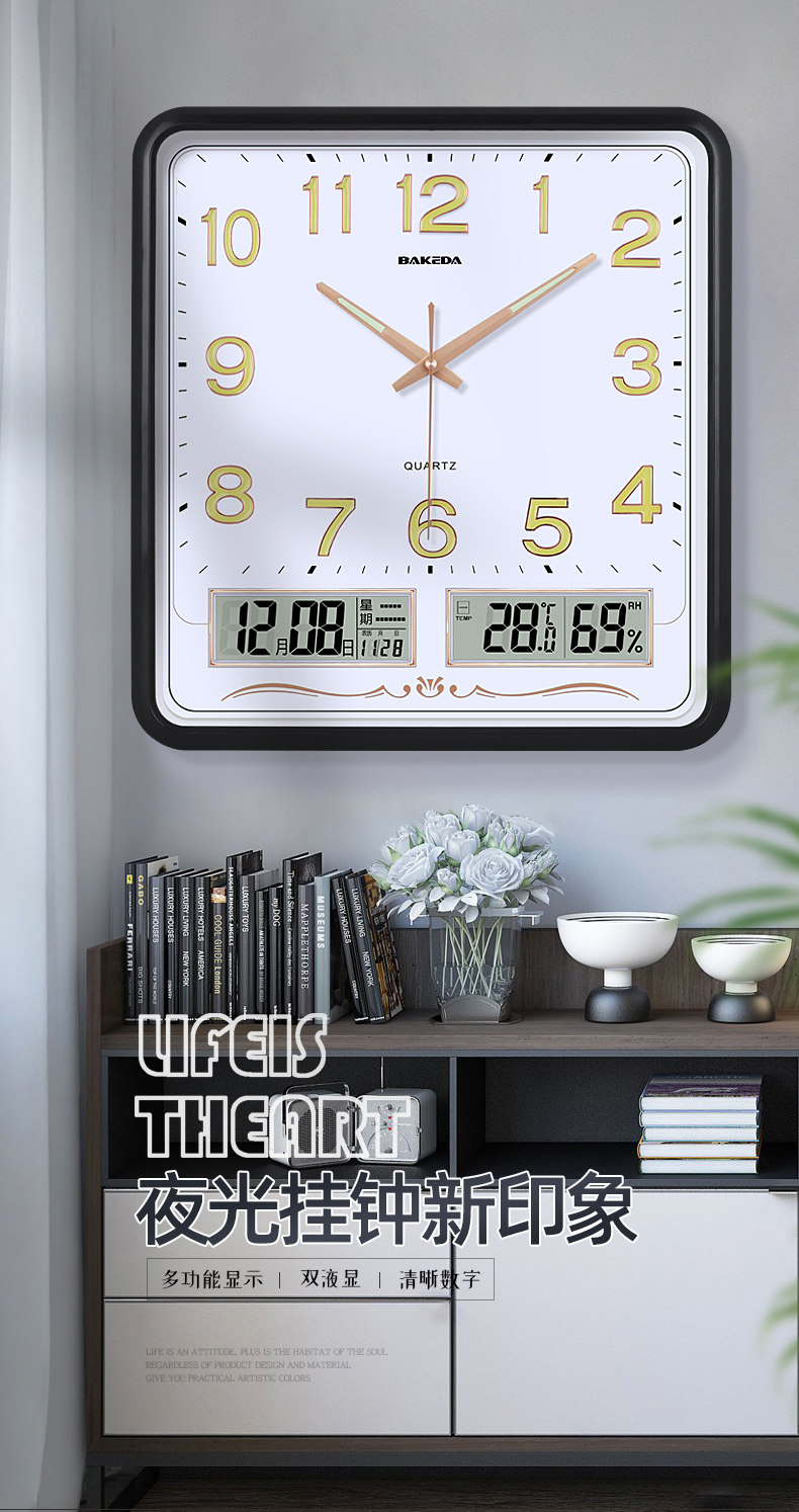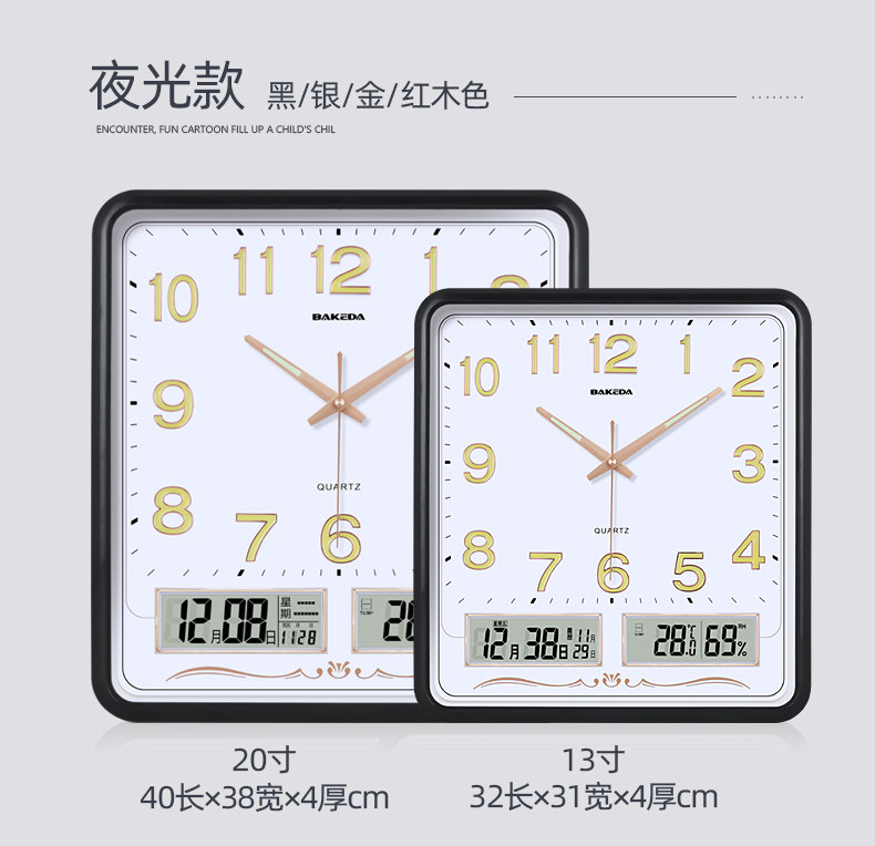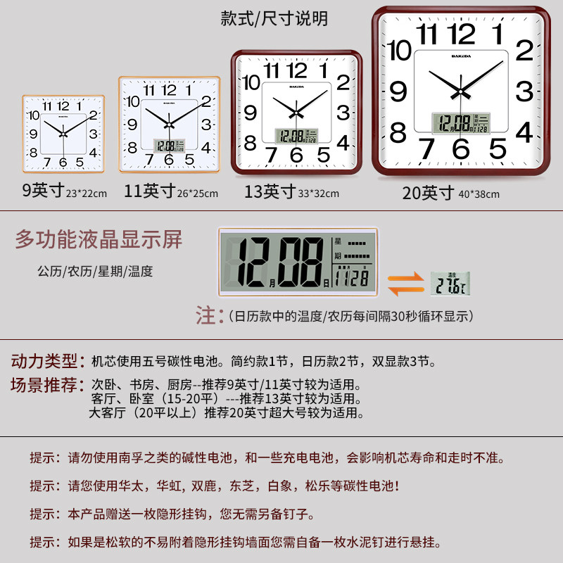 Household Square Wall Clock, Living Room Clock, Modern Clock, Wall-Mounted, Simple and Stylish, Electronic Calendar Wall Clock, Quartz Clock