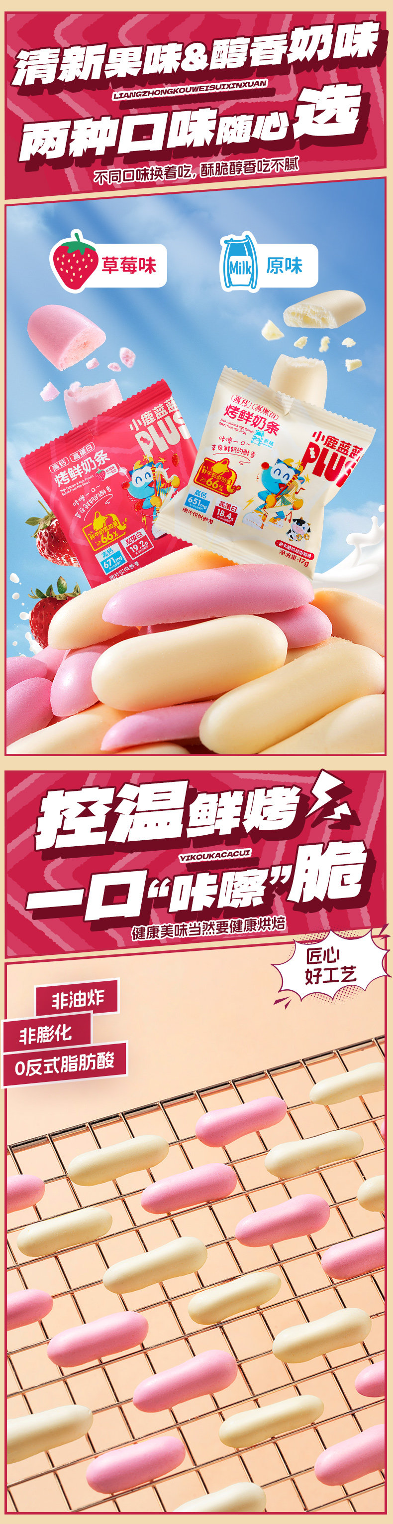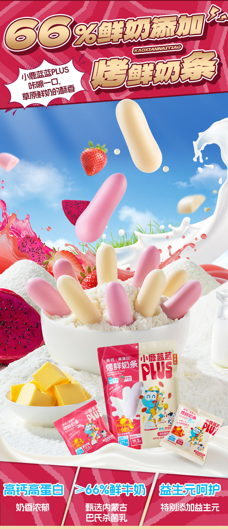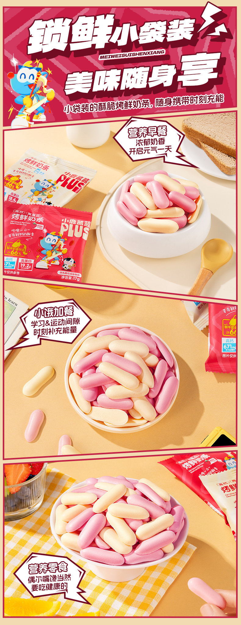 [Hot Sale Flash Deal] Little Deer Blue Blue Plus High Calcium High Protein Baked Fresh Milk Bars Children's Fresh Milk Snacks