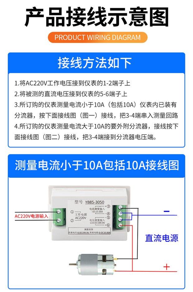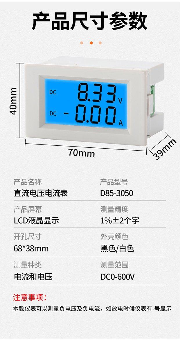 D85-3050 Dual Display Digital Dc Current and Voltage Meter Lcd Digital Detector