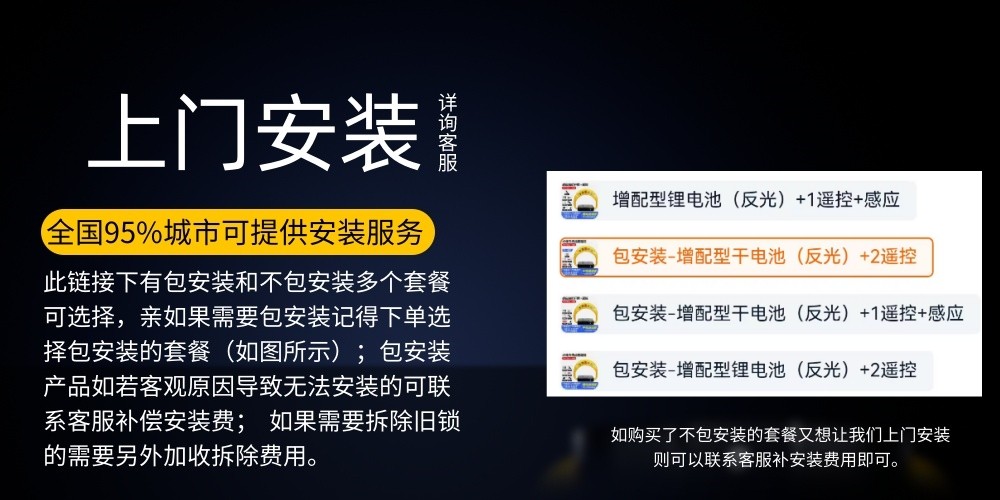 | Color Classification | Standard Lithium Battery + 1 Remote Control,Standard Lithium Battery + 2 Remote Controls,Standard Lithium Battery + 1 Remote Control + Sensor,Package Installation - Standard Lithium Battery + 1 Remote Control,Package Installation - Standard Lithium Battery + 2 Remote Controls,Package Installation - Standard Lithium Battery + 1 Remote Control + Sensor,Door Type Lithium Battery +1 Remote Control,Upgraded Dry Battery (Reflective) + 2 Remote Controls,Upgraded Dry Battery (Reflective) + 1 Remote Control + Sensor,Upgraded Lithium Battery (Reflective) + 2 Remote Controls,Upgraded Lithium Battery (Reflective) + 1 Remote Control + Sensor,Installation Included - Enhanced Dry Battery (Reflective) + 2 Remote Controls,Package Installation - Additional Dry Battery (Reflective) + 1 Remote Control + Sensor,Installation Included - Enhanced Lithium Battery (Reflective) + 2 Remotes,Installation Included - Enhanced Lithium Battery (Reflective) + 1 Remote Control + Sensor,Enhanced Dry Battery (Reflective) + 2 Remote Controls,Enhanced Dry Battery (Reflective) + 2 Remote Controls + Sensor,Enhanced Lithium Battery (Reflective) + 2 Remote Control,Enhanced Lithium Battery (Reflective) + 2 Remote Controls + Sensor,Installation Included - Enhanced Dry Battery (Reflective) + 2 Remotes,Installation Included - Enhanced Dry Battery (Reflective) + 2 Remotes + Sensor,Package Installation - Enhanced Lithium Battery (Reflective) + 2 Remote Controls,Installation Included - Enhanced Lithium Battery (Reflective) + 2 Remotes + Sensor,Reinforced Locking Dry Battery (Reflective) + 2 Remote Control,Enhanced Locking Dry Battery (Reflective) + 2 Remote Control + Sensor,Enhanced Lockable Lithium Battery (Reflective) + 2 Remote Controls,Enhanced Lockable Lithium Battery (Reflective) + 2 Remote Control + Sensor,Three-Pole Locking Dry Battery (Reflective) + 2 Remote Controls,Three-Pole Locking Dry Battery (Reflective) + 2 Remote Control + Sensor,Three-Pole Locking Dry Battery (Reflective + 2 Remote Control + Applet,Three-Pole Locking Dry Battery (Reflective) + 2 Remote Controls + Sensor + Applet,Three-Pole Locking Lithium Battery (Reflective) + 2 Remote Controls,Three-Pole Locking Lithium Battery (Reflective) + 2 Remote Control + Sensor,Three-Pole Locking Lithium Battery (Reflective) + 2 Remote Controls + Applet,Three-Pole Locking Lithium Battery (Reflective) + 2 Remote Controls + Sensor + Applet,Luxury D-Type Dry Cell Battery + 2 Remote Controls,Premium D-Cell Battery + 2 Remotes + Motion Sensor,Luxury D-Type Battery + 2 Remotes + Mini Program,Luxury D-Type Battery + 2 Remotes + Sensor + Mini Program,Luxury D-Type Lithium Battery + 2 Remote Controls,Luxury D-Type Lithium Battery + 2 Remote Control + Sensor,Luxury D-Type Lithium Battery + 2 Remote Controls + Mini Program,Luxury D-Type Lithium Battery + 2 Remotes + Sensor + Mini Program |
