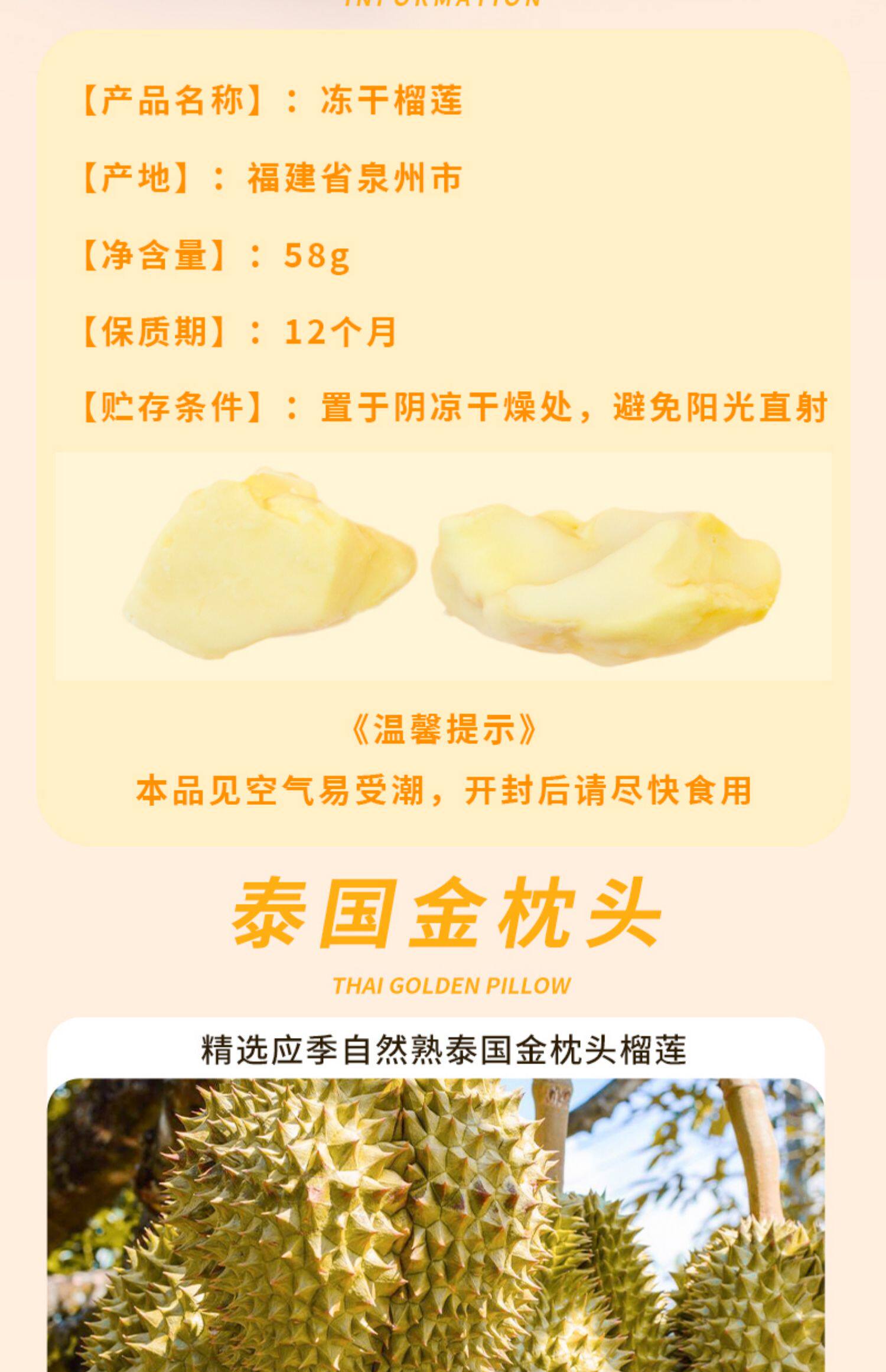 Freeze-Dried Durian Snacks, Individually Packaged Dried Fruit, Authentic Golden Pillow Durian, Thai-Style Fruit Snacks
