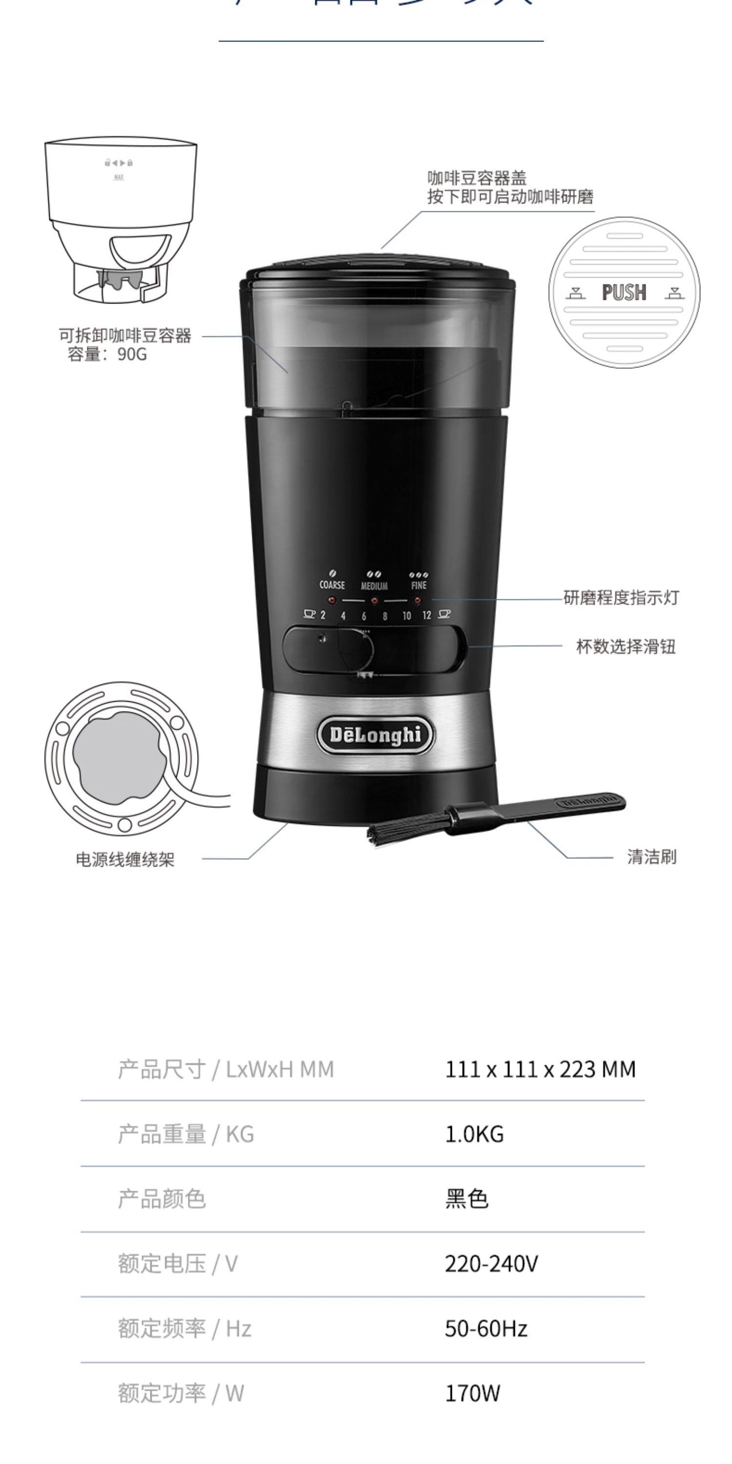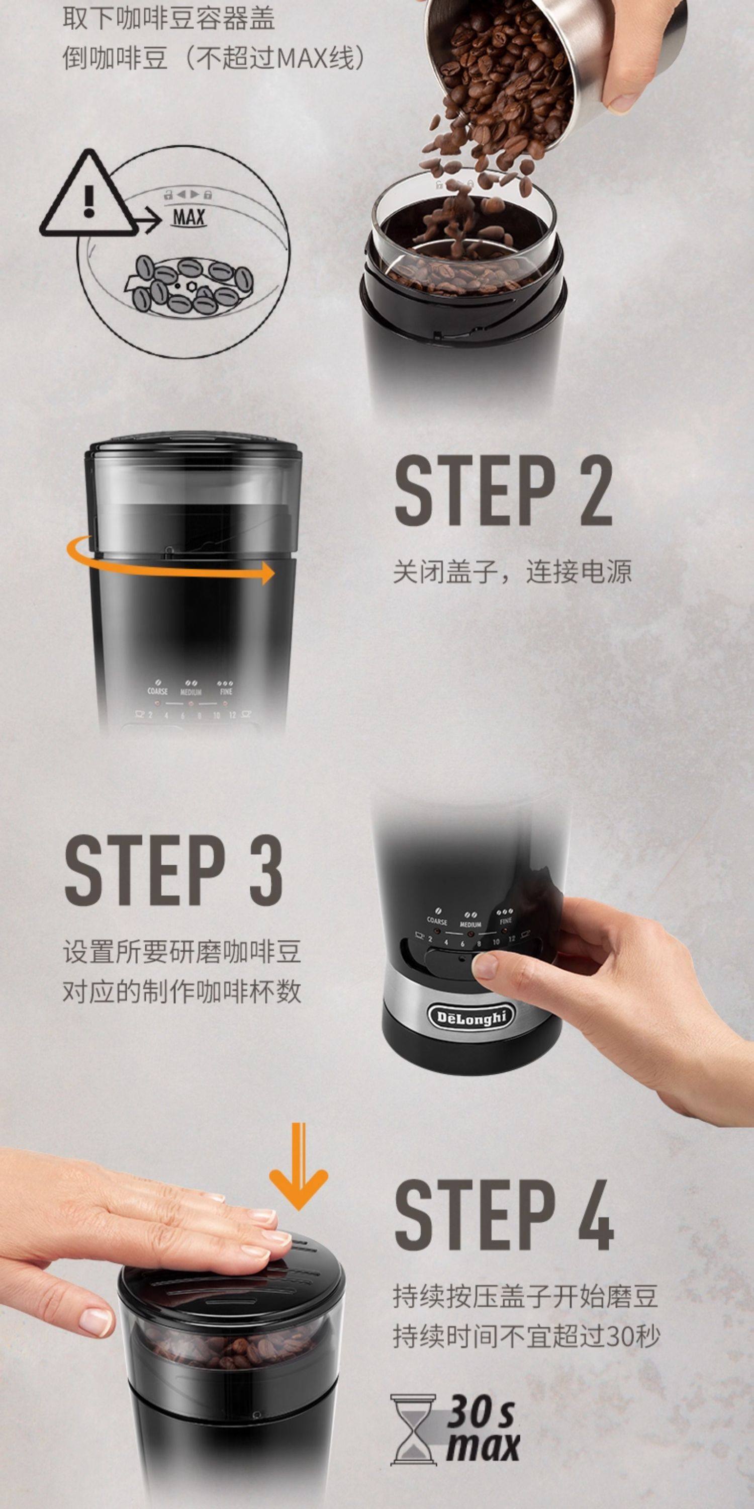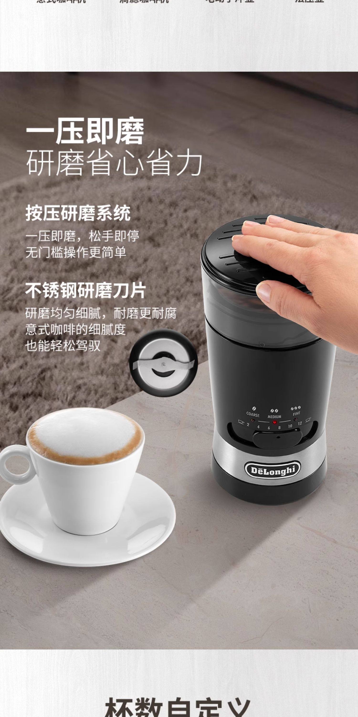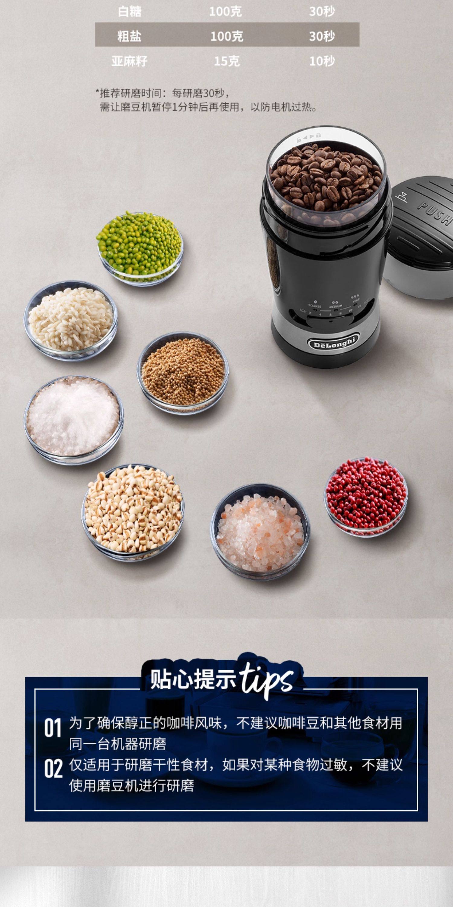 Delonghi Kg210 Household Electric Press-Type Coffee Bean Grinder Small Size