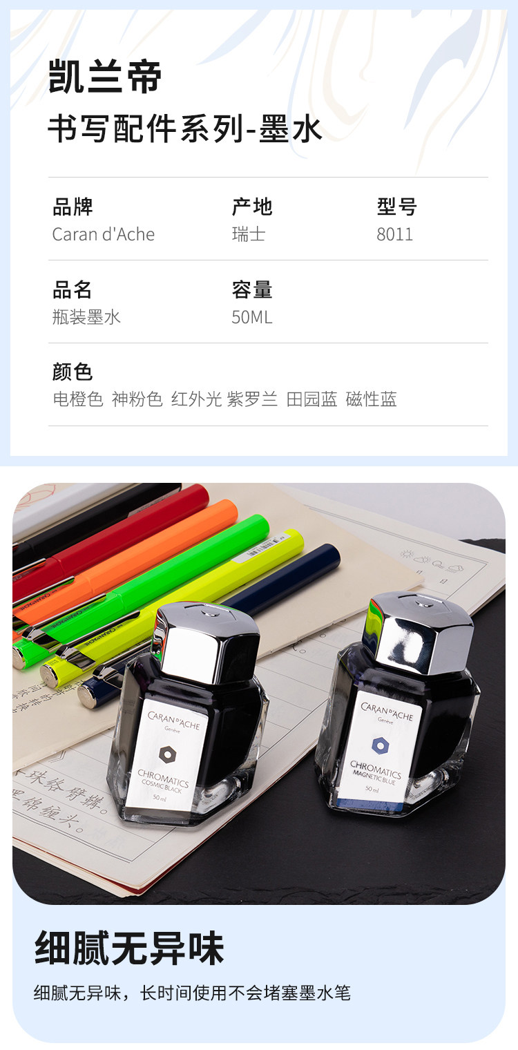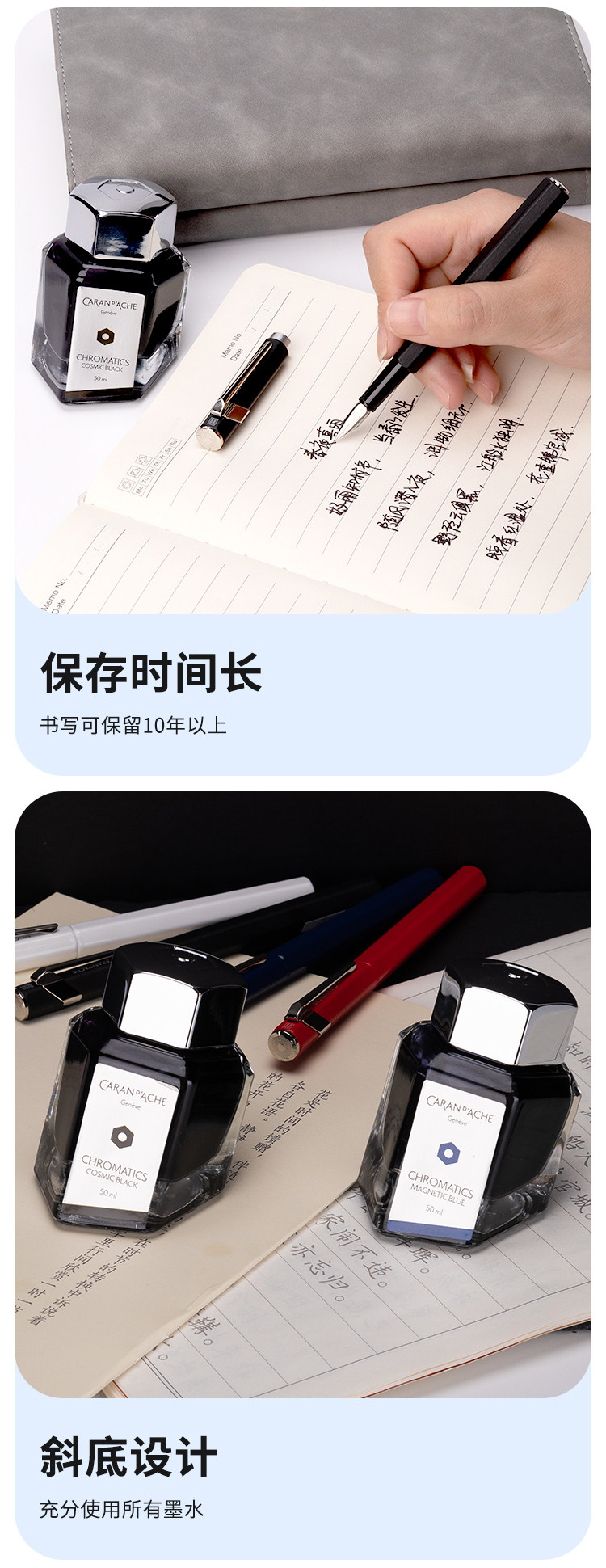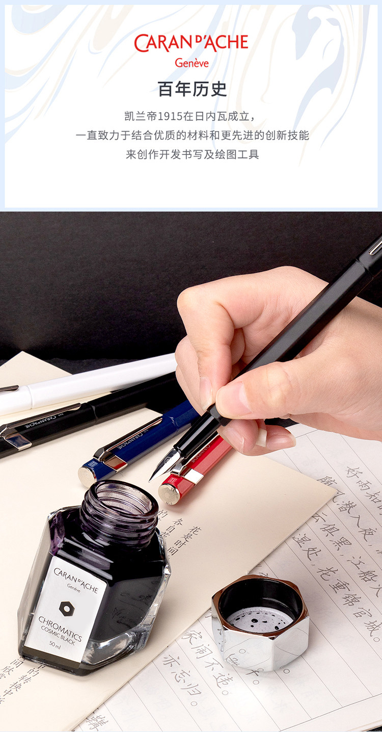 Caran D'Ache Kailandi Kada Swiss Imported Fountain Pen Ink Pen Pure Black Pure Blue-Green Original Official Flagship Genuine Ink 50ml Non-Carbon Non-Clogging Ink Refill