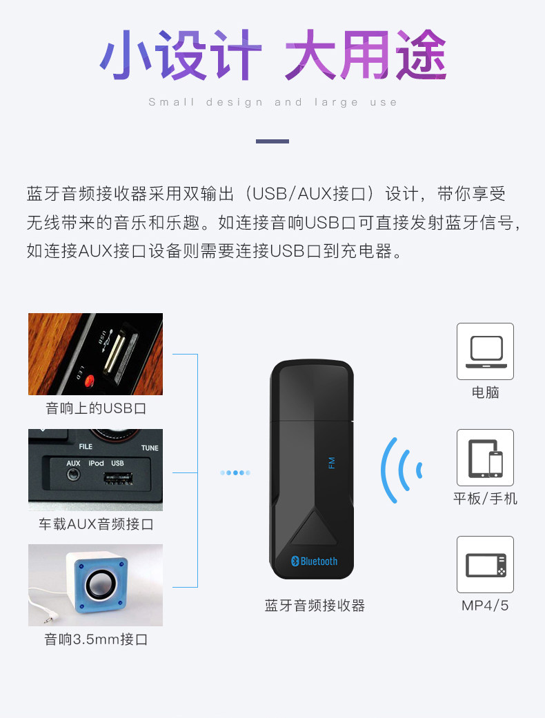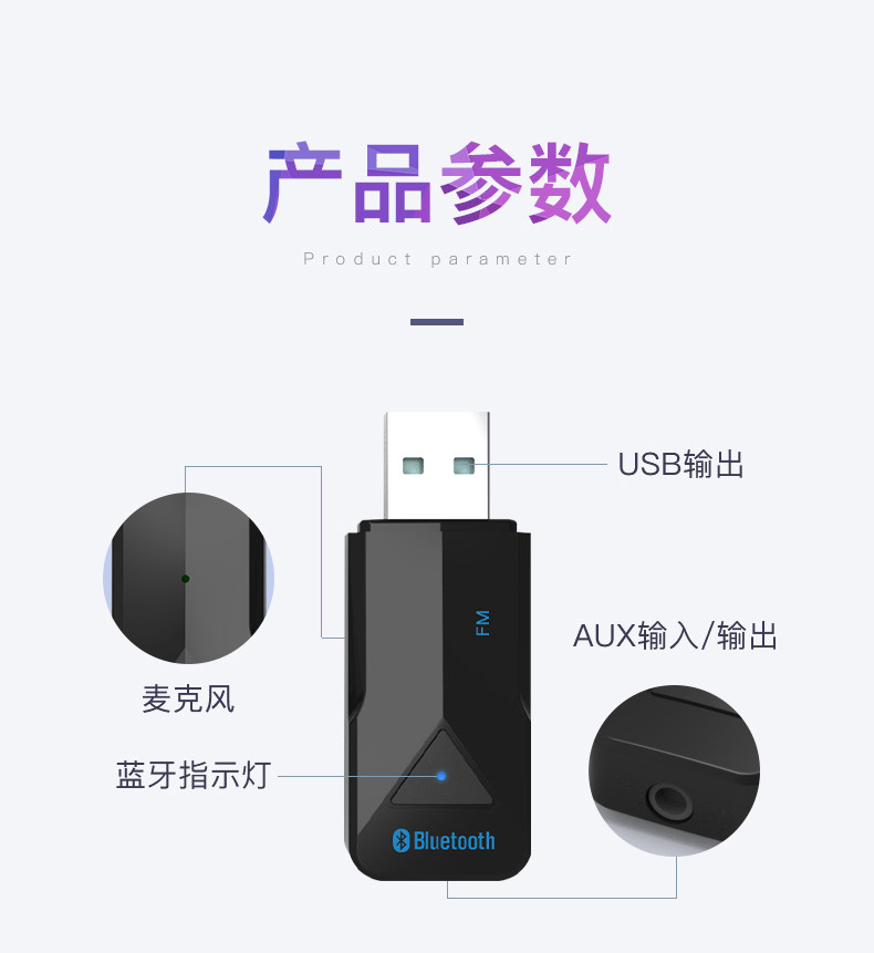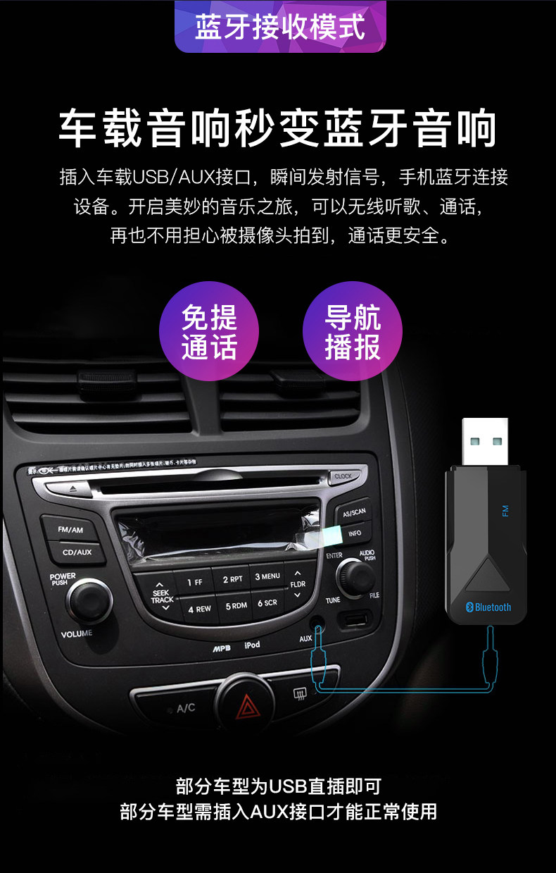 Car Bluetooth Adapter 5.0 Audio Receiver to Speaker 3.5 Aux Car Mp3 USB Bluetooth Stick Converts Wired to Wireless Headphones Audio Amplifier Radio Fm Audio Receiver