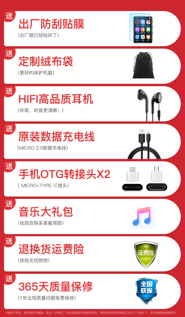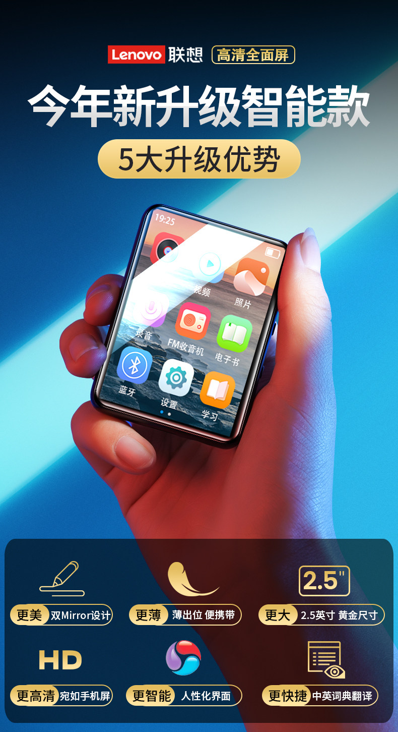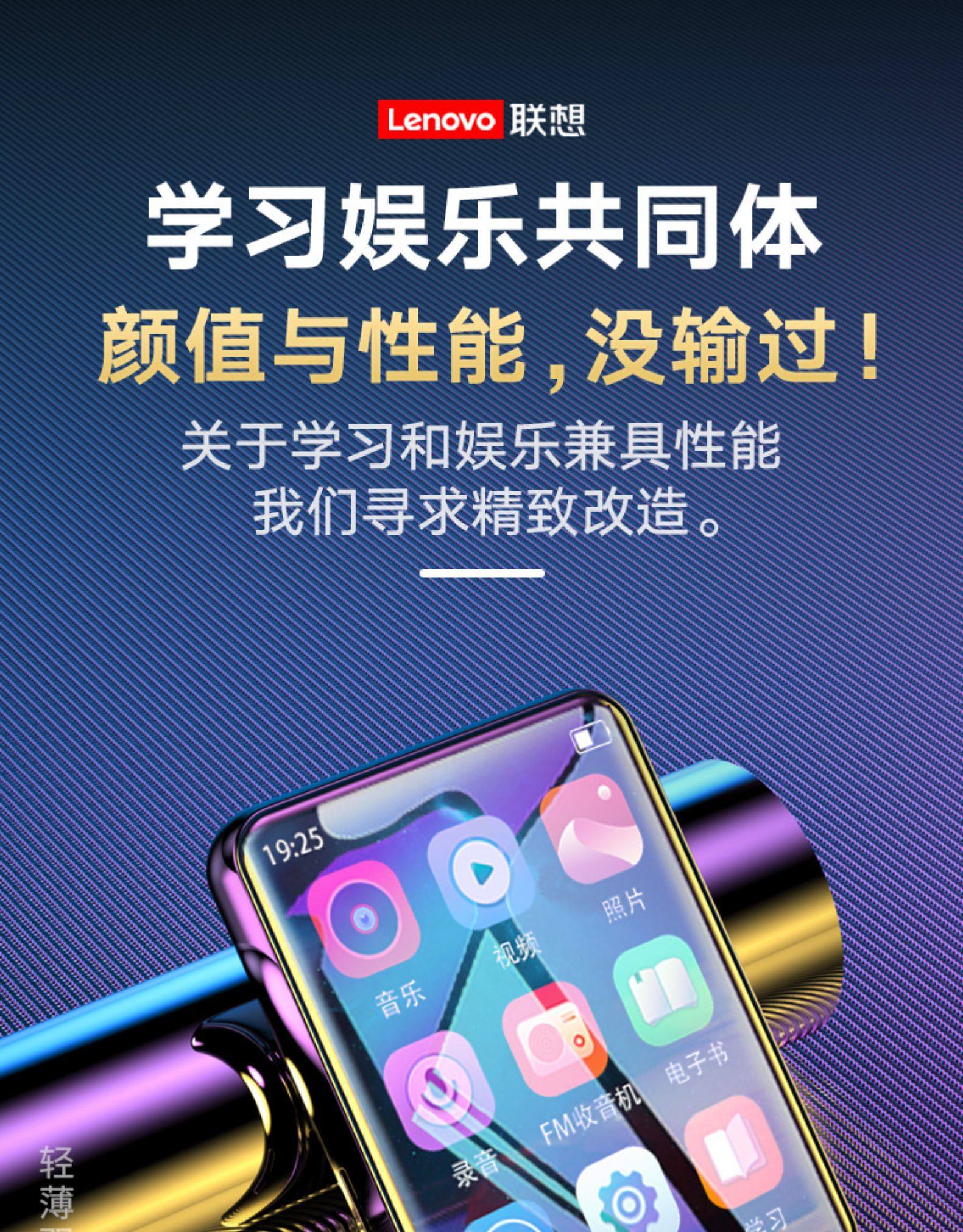 Lenovo Full-Screen Mp3 Player for Reading Novels, Portable Music Player, Student Version, Bluetooth Music Player, Mp4 Recorder