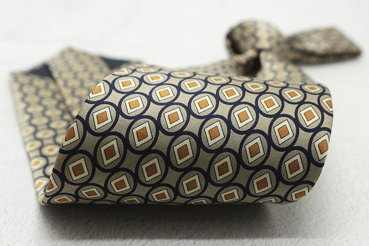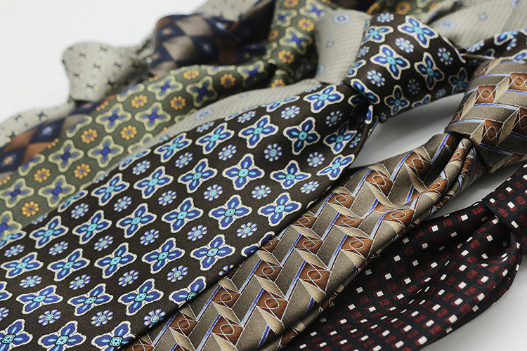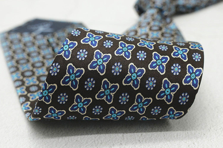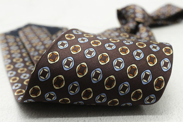10cm Men's Silk Printed Tie Mulberry Silk Vintage British Style Tie Italian Style Coffee Color Pattern