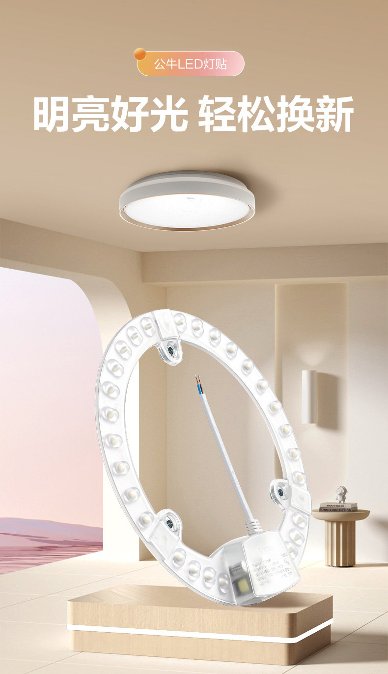 Bull Led Ceiling Light Replacement Lamp Core Lamp Panel Magnetic Bulb Light Strip Bedroom Renovation Energy-Saving Lamp Sticker Light Board Piece