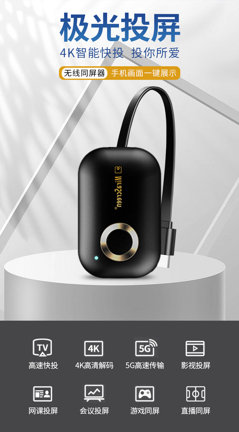 Screen Mirroring Device Tv Projector Computer Wireless Screen Mirroring Device Huawei Apple Phone Screen Mirroring Display Car Transmission Projection Connection Tv Home Use Suitable for Apple Android Huawei Universal