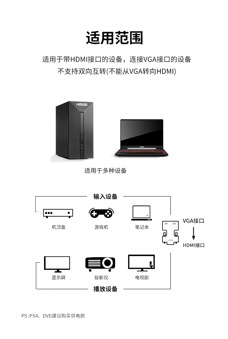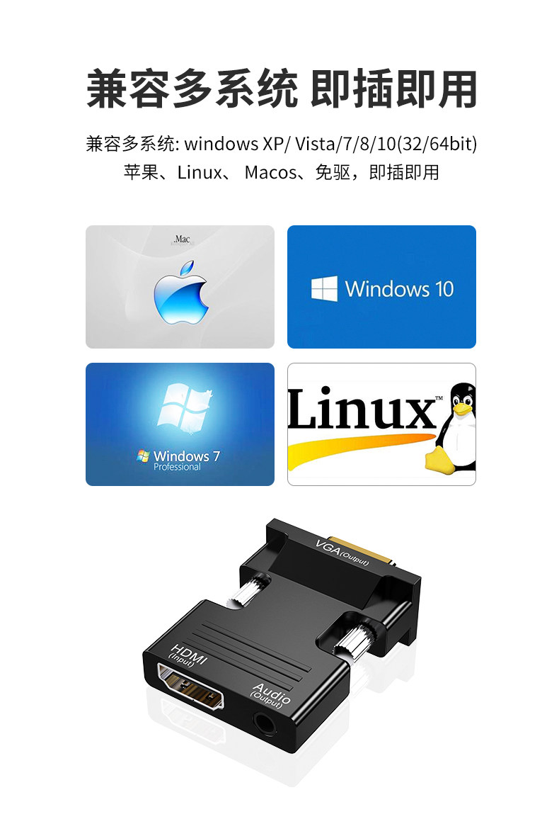 Youpuseng HDMI to Vga Converter High-Definition to Vda Connector Hami Male-Female Adapter Vja Cable Vga Set-Top Box Laptop Connection to Tv Projector Monitor with Audio