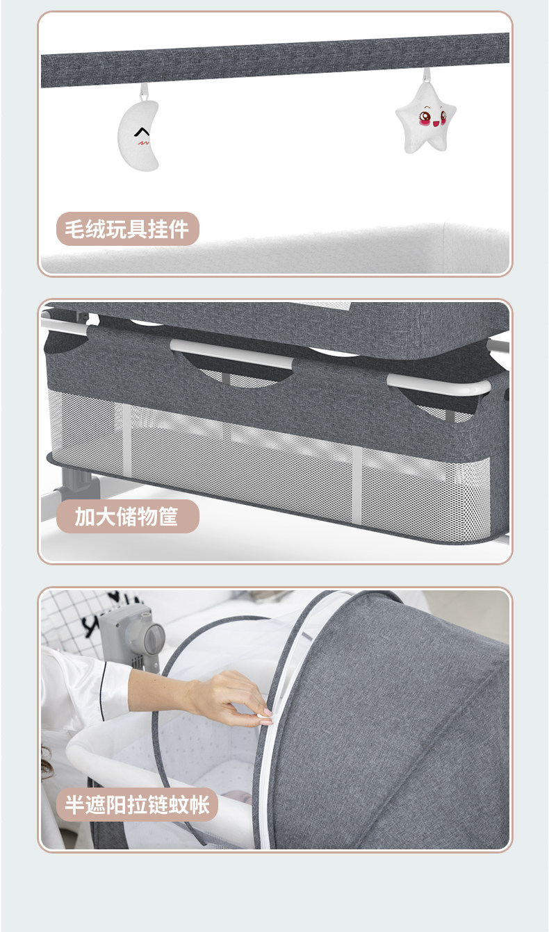 | Color Classification | Electric Cradle Bed - Khaki - Mosquito Net + Storage Basket + Storage Bag,Electric Cradle Bed + Dark Gray - Mosquito Net + Storage Basket + Storage Bag,Electric Cradle Bed + Lotus Green Mosquito Net + Storage Basket + Storage Bag,Electric Cradle Bed-Pink + Mosquito Net + Storage Basket + Storage Bag,Electric Cradle Bed + Khaki + Mosquito Net + Storage Basket,Electric Cradle Bed + Dark Gray + Mosquito Net + Storage Basket,Electric Cradle Bed + Lotus Green + Mosquito Net + Storage Basket,Electric Cradle Bed + Pink + Mosquito Net + Storage Basket,Electric Cradle-Khaki + Mosquito Net,Electric Cradle Bed-Dark Gray + Mosquito Net,Electric Cradle Bed - Lotus Green + Mosquito Net,Electric Cradle Bed-Pink + Mosquito Net,Electric Cradle Bed - Khaki,Electric Cradle Bed-Dark Gray,Electric Cradle Bed - Lotus Green,Electric Cradle Bed-Pink,Manual Version of Baby Crib - Peach Powder + Mosquito Net (Non-Electric Version),Manual Version of Baby Crib - Hemp Gray + Mosquito Net (Non-Electric Version),Manual Version of Baby Crib - Graffiti + Mosquito Net (Non-Electric Version) |