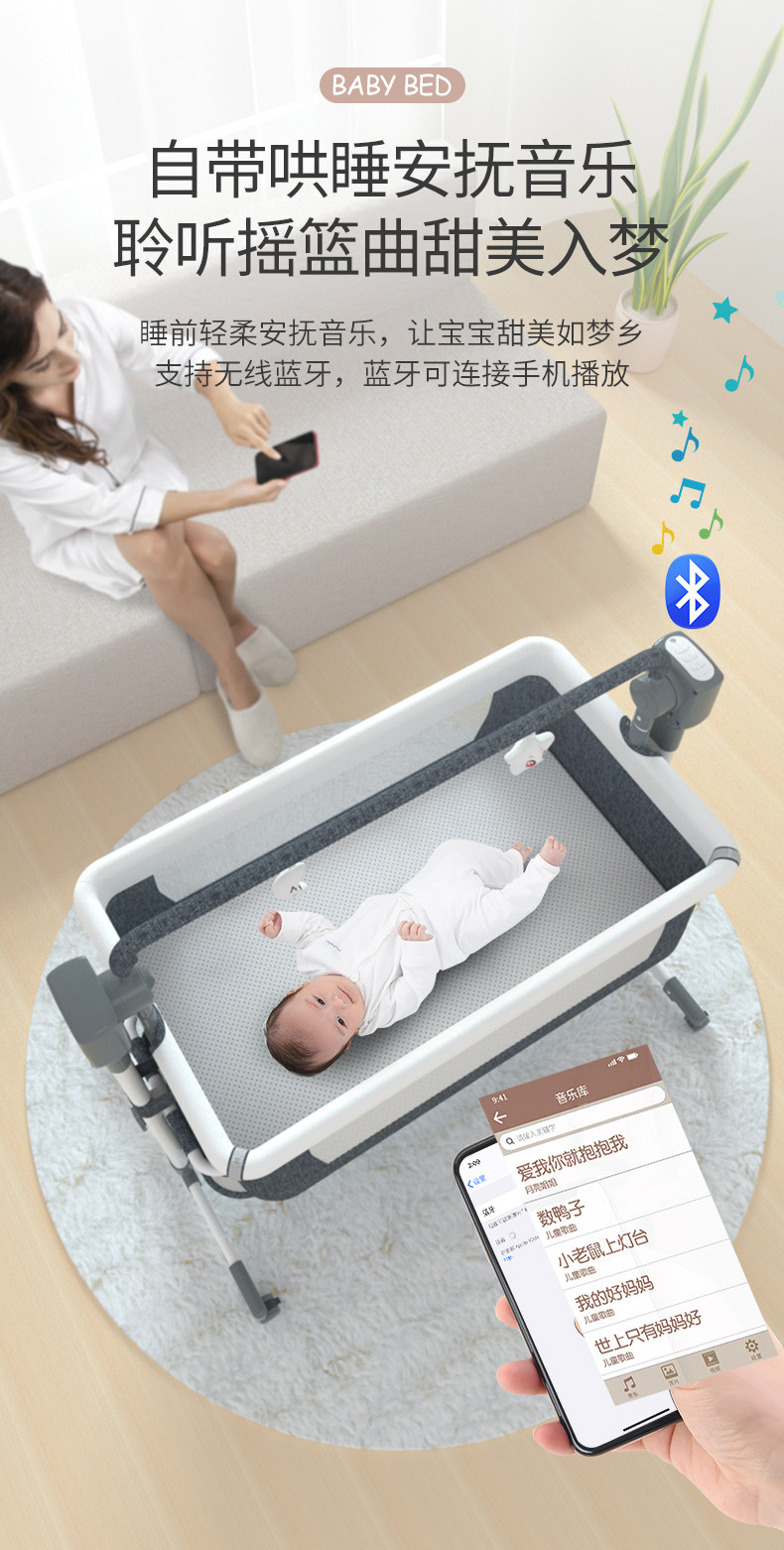 Baby Electric Cradle Bed, Fully Automatic, Foldable, Soothing and Coaxing Device for Babies to Sleep, Newborn Splicing Large Bed