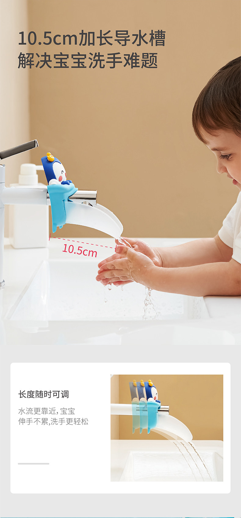 Baby Silicone Faucet Extender, Children's Extension Spout for Washbasin, Cartoon Handwashing Extender, Anti-Splash Device