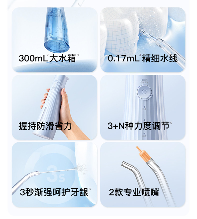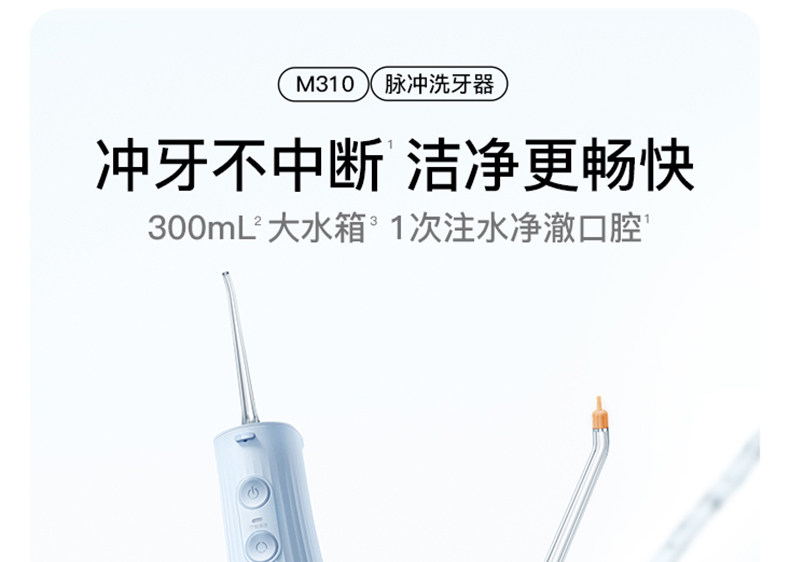 | Color Classification | New [Limited Gift Box] M310 Sea Salt Blue Deluxe Edition - 4 Nozzles + 250ml Mouthwash,New M310 Sea Salt Blue - Early Adopter Edition: 4 Nozzles + 50 Floss Picks,New M310 Sea Salt Blue Standard Edition-2 Nozzles,M4 Lake Baikal Blue [4 Nozzles + Mouthwash] - Deluxe Edition,M4 Baikal Blue [4 Nozzles + 50 Floss Picks] - Value Pack,M4 Lake Baikal Blue [2 Nozzles]-Standard Edition,M4 Standard Version 2 Nozzles,M4 Deluxe Edition 4 Nozzles + Mouthwash 250ml,M4 Welfare Version 4 Nozzles + 50 Dental Floss Sticks,Standard 2 Nozzle -M4,Deluxe Version 4 Nozzles + 250ml Mouthwash-M4,Welfare Version 4 Nozzles + 50 Nozzles - M4 |
