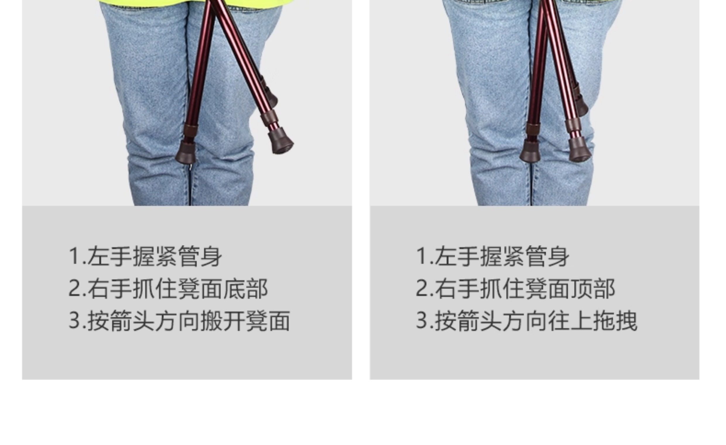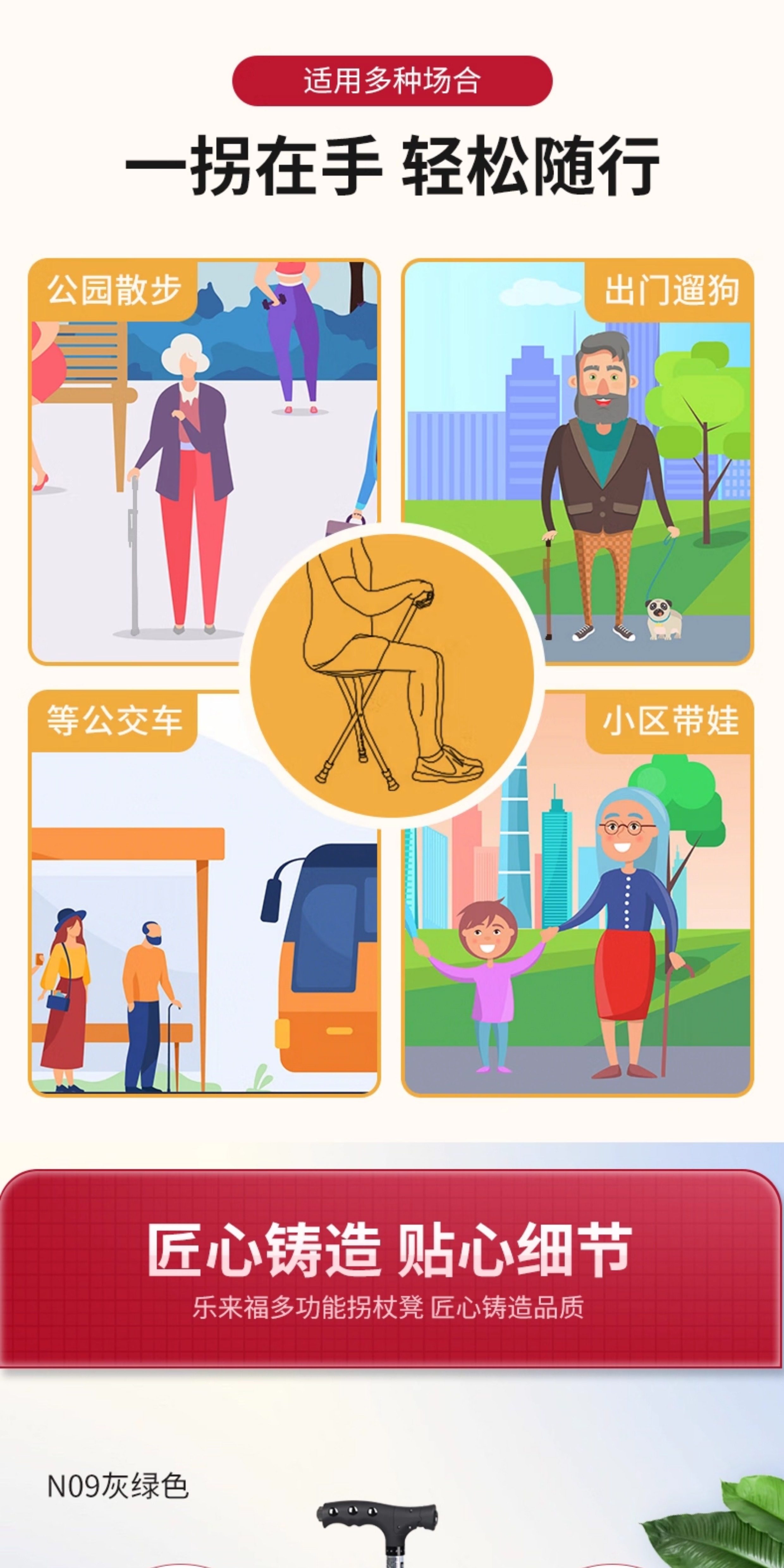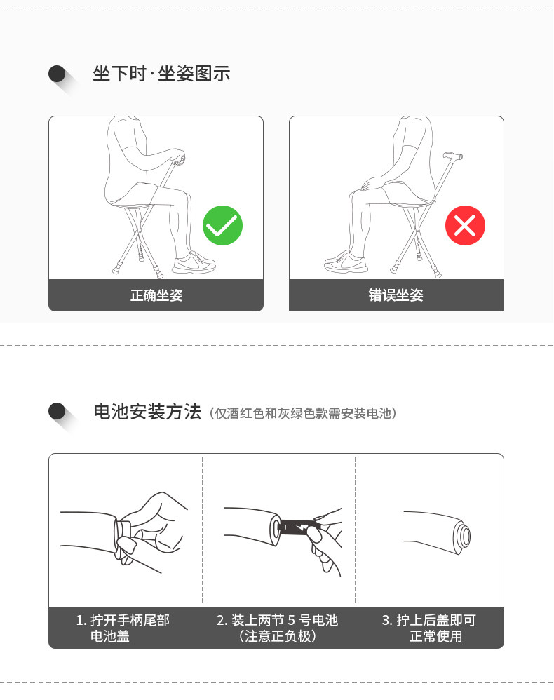 Le Laifu Folding Telescopic Crutch Stool with Light, Multifunctional Three-Legged Crutch Chair, Elderly Walking Stick, Non-Slip and Stable Walking Stick