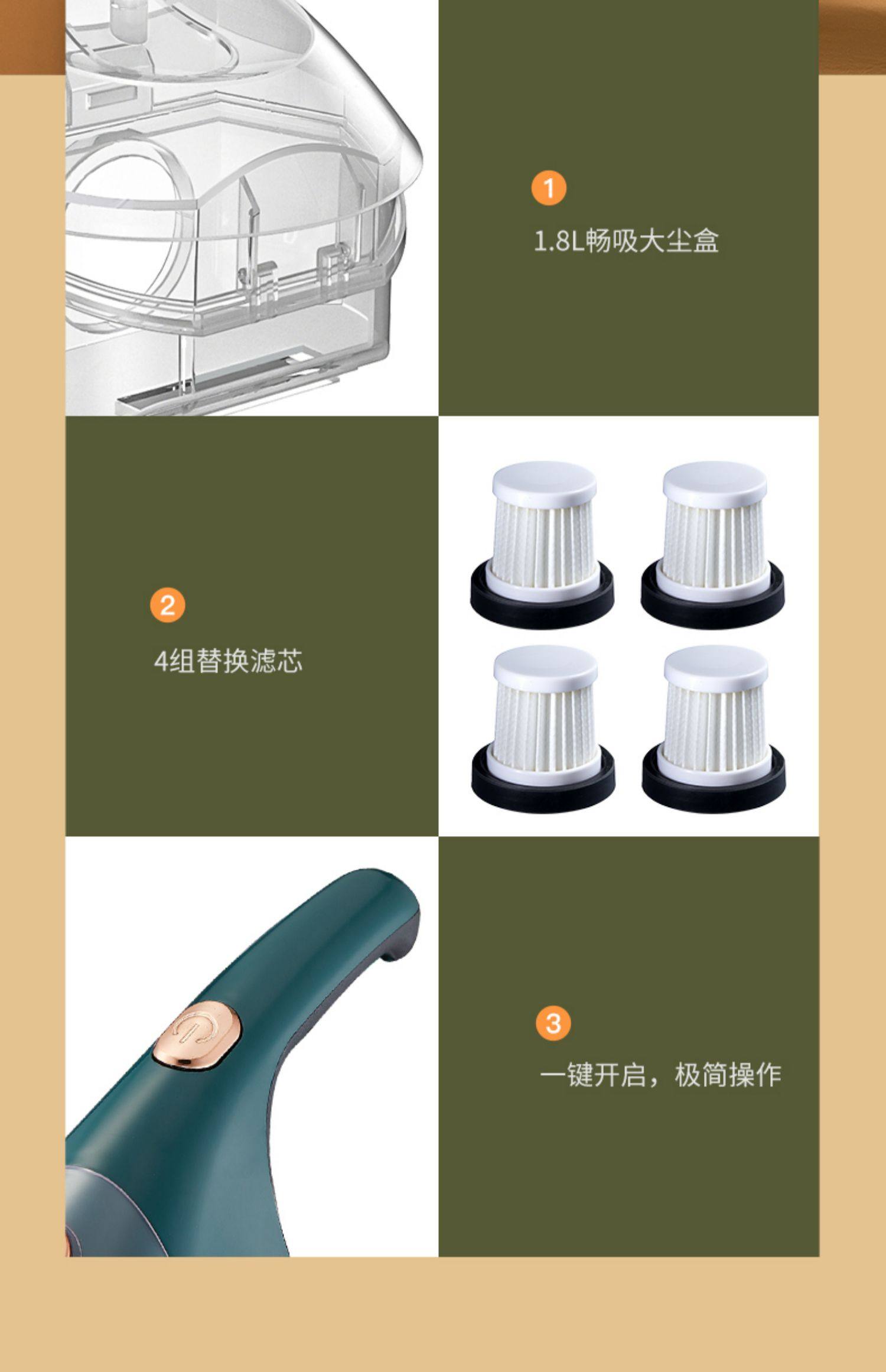 | Color Classification | "Upgraded Model" Emerald + 6 Spare Filters,"Upgraded Model" Emerald + 3 Spare Filters,Dark Green[Upgraded Model]+3 Spare Filter Elements,Top Model + 3 Filters[Double Dust Cup + Smart Screen Display + Hot Air Drying],Local Gold + 3 Spare Filter Elements,"Basic Model" Local Gold,[Add to Favorites + Cart]Fast Shipping +3 Years ,[30 Days Free Trial]If You Are Not Satisfied with the Mite Removal Effect, You Can Return It for Free,[Upgraded High Suction Power]10Kpa Hurricane Suction★Eliminate Mites,Sold Out, Please Do Not Take Pictures,- |