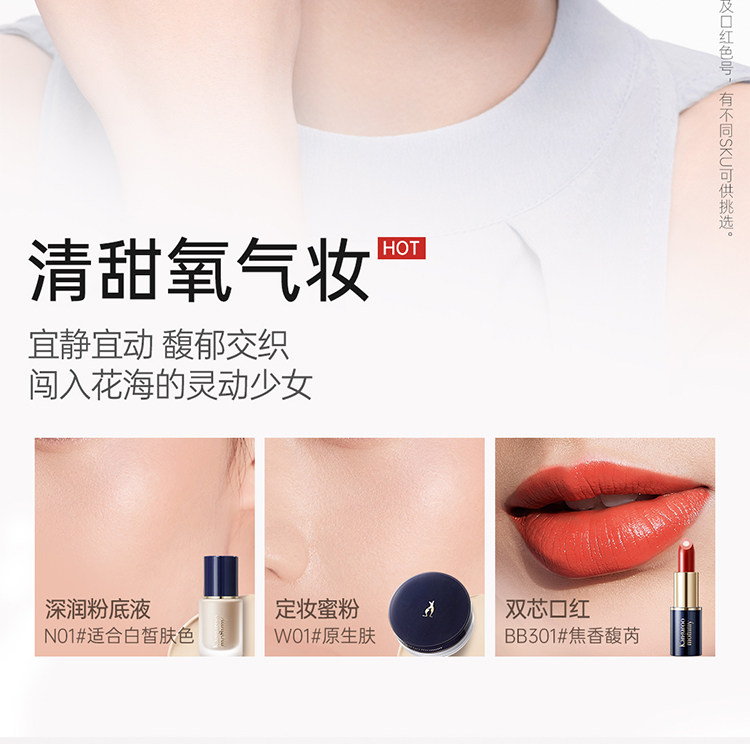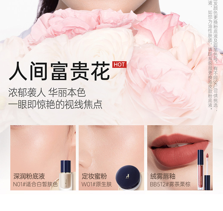 | Color Classification | Liquid Foundation Velvet Version N01 + Powder + Lipstick Rd303,Liquid Foundation Velvet Version N02 + Powder + Lipstick Rd303,Liquid Foundation Velvet Version N01 + Powder + Lipstick Bb301,Liquid Foundation Velvet Version N02 + Powder + Lipstick Bb301,Liquid Foundation Velvet Version N01 + Powder + Lipstick Pk303,Liquid Foundation Velvet Version N02 + Powder + Lipstick Pk303,Liquid Foundation Velvet Version N01 + Powder + Lip Glaze Bb512,Liquid Foundation Velvet Version N02 + Powder + Lip Glaze Bb512,Liquid Foundation Velvet Version N01 + Powder + Lip Glaze Rd508,Liquid Foundation Velvet Version N02 + Powder + Lip Glaze Rd508,Liquid Foundation Velvet Version N01 + Powder + Lip Glaze Or505,Liquid Foundation Velvet Version N02 + Powder + Lip Glaze Or505 |