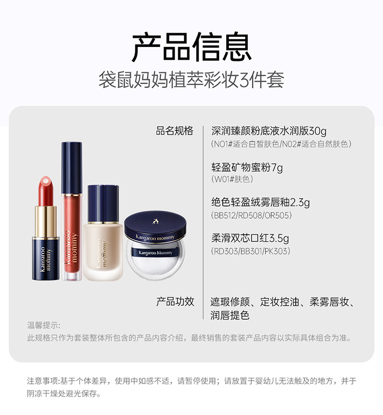 Kangaroo Mom Pregnant Women's Makeup Set Complete Set Lip Glaze Foundation Special Setting Powder Loose Powder Lipstick Available