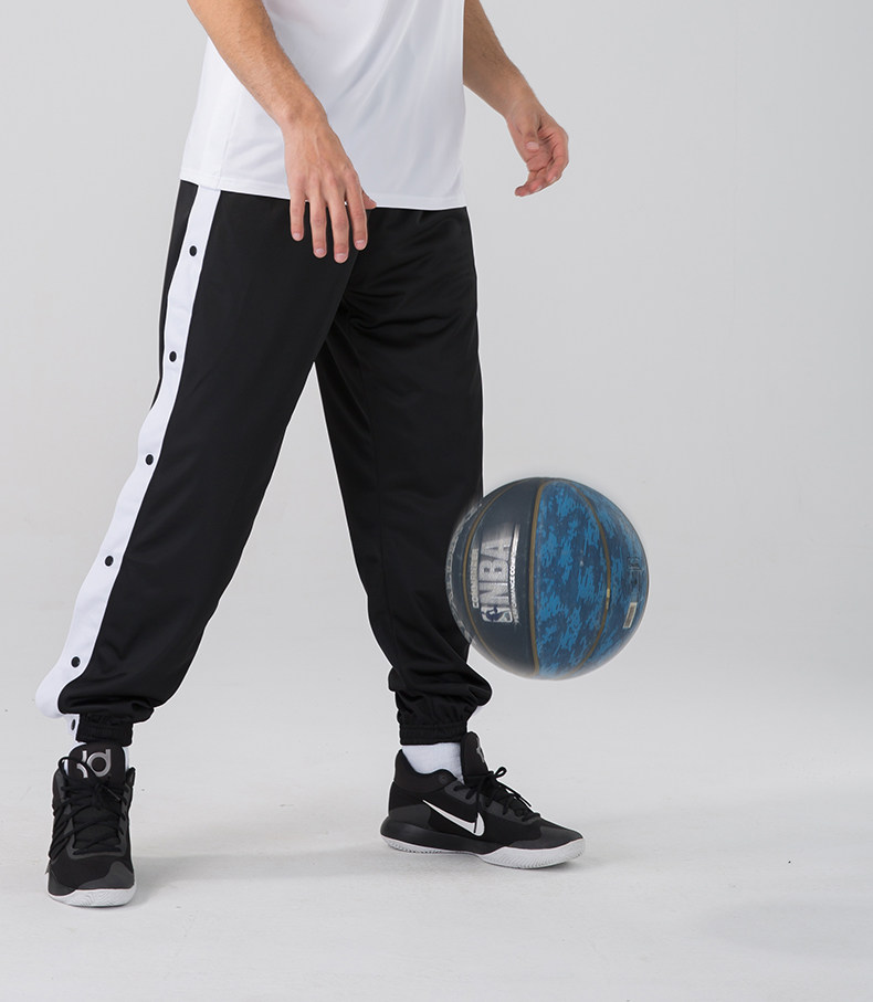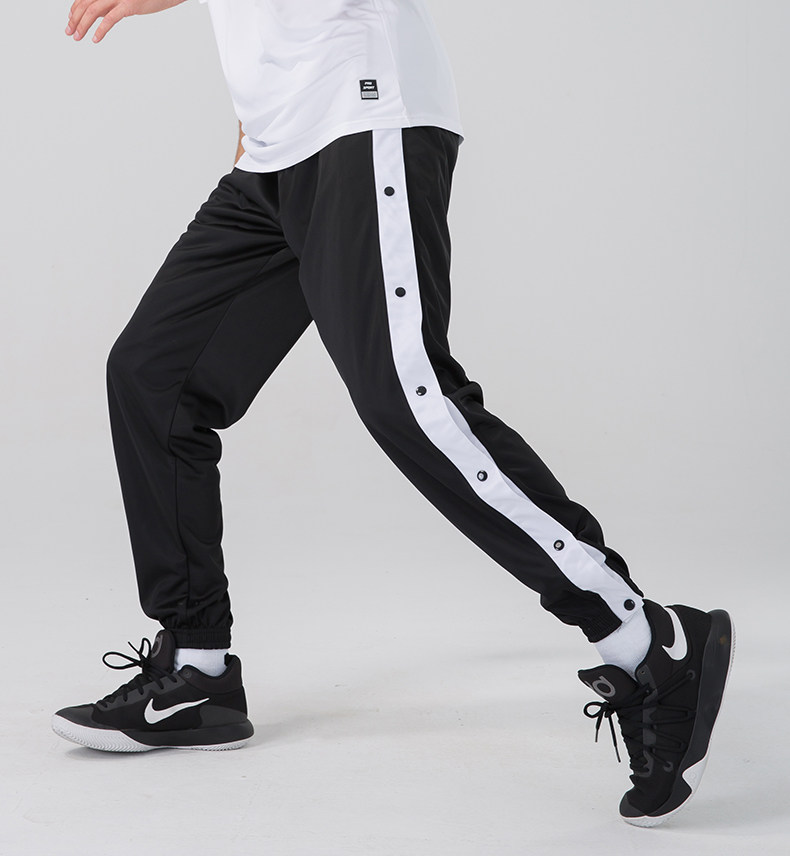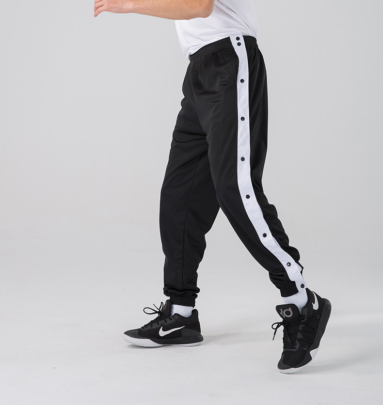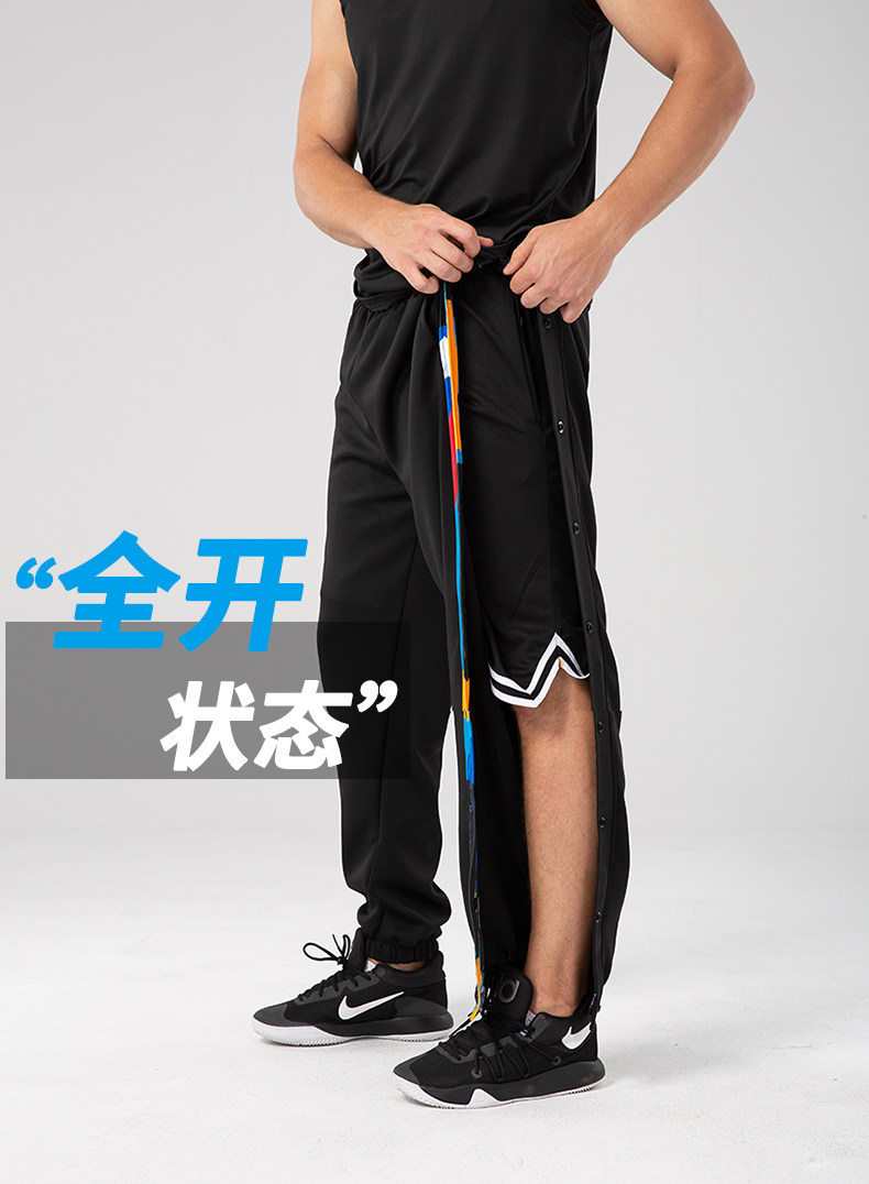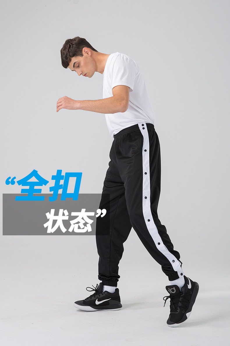 American-Style Basketball Side-Button Pants, Fully Unbuttoned for Quick Release, Basketball Court Appearance Sweatpants, Sports Training Long Pants, Men's Loose Fit with Cuffed Ankles